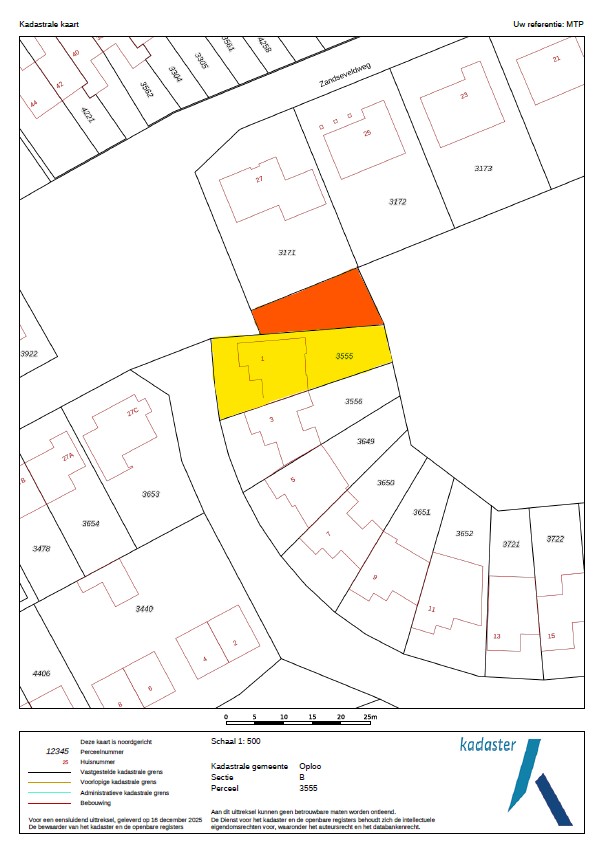 Een deel van de zij- en achtertuin is in bruikleen (middels een bruikleenovereenkomst) van de gemeente (zie oranje gearceerde gedeelte kadastrale kaart).