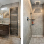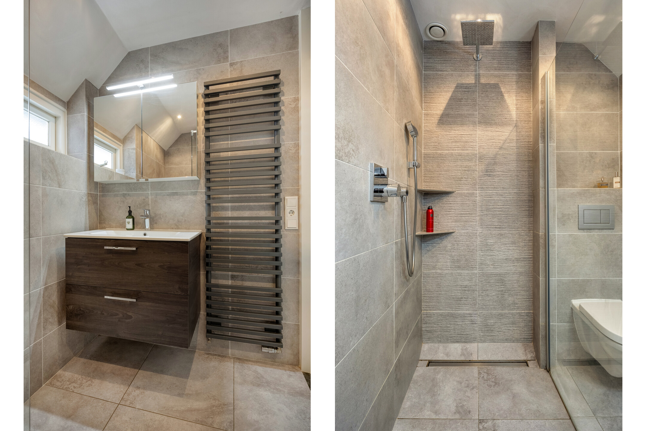 1e verdieping: overloop, 3 slaapkamers, een luxe badkamer (2019) voorzien van een inloopdouche, wastafel met meubel en wandcloset.