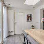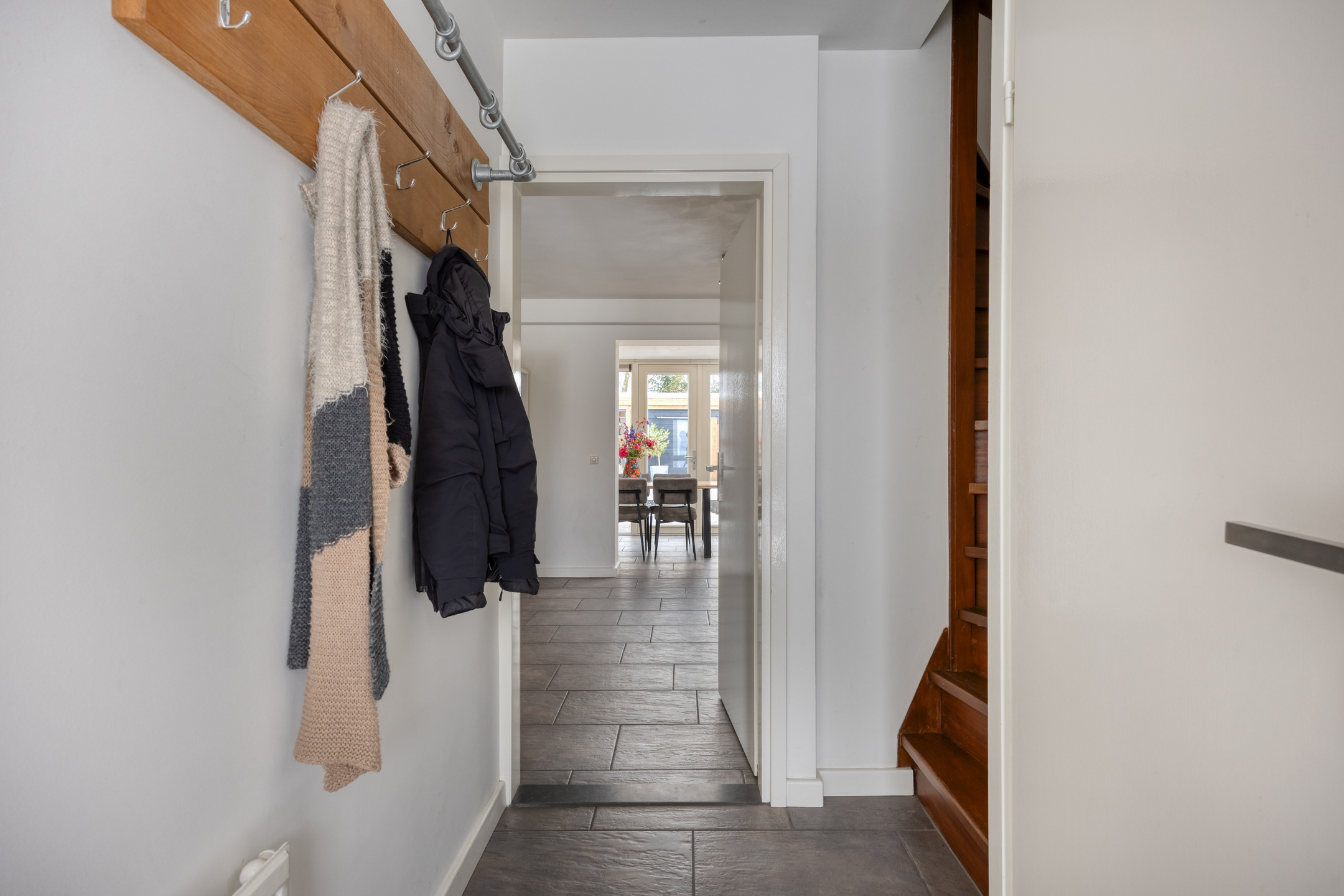 Begane grond: hal met vernieuwde meterkast en toilet met fonteintje. De speels ingedeelde woonkamer met een erker en houtkachel is aan de achterzijde uitgebouwd en voorzien van openslaande tuindeuren. De keuken staat in halfopen verbinding met deze woonkamer. Praktische bijkeuken met witgoedaansluitingen en aansluitend de…