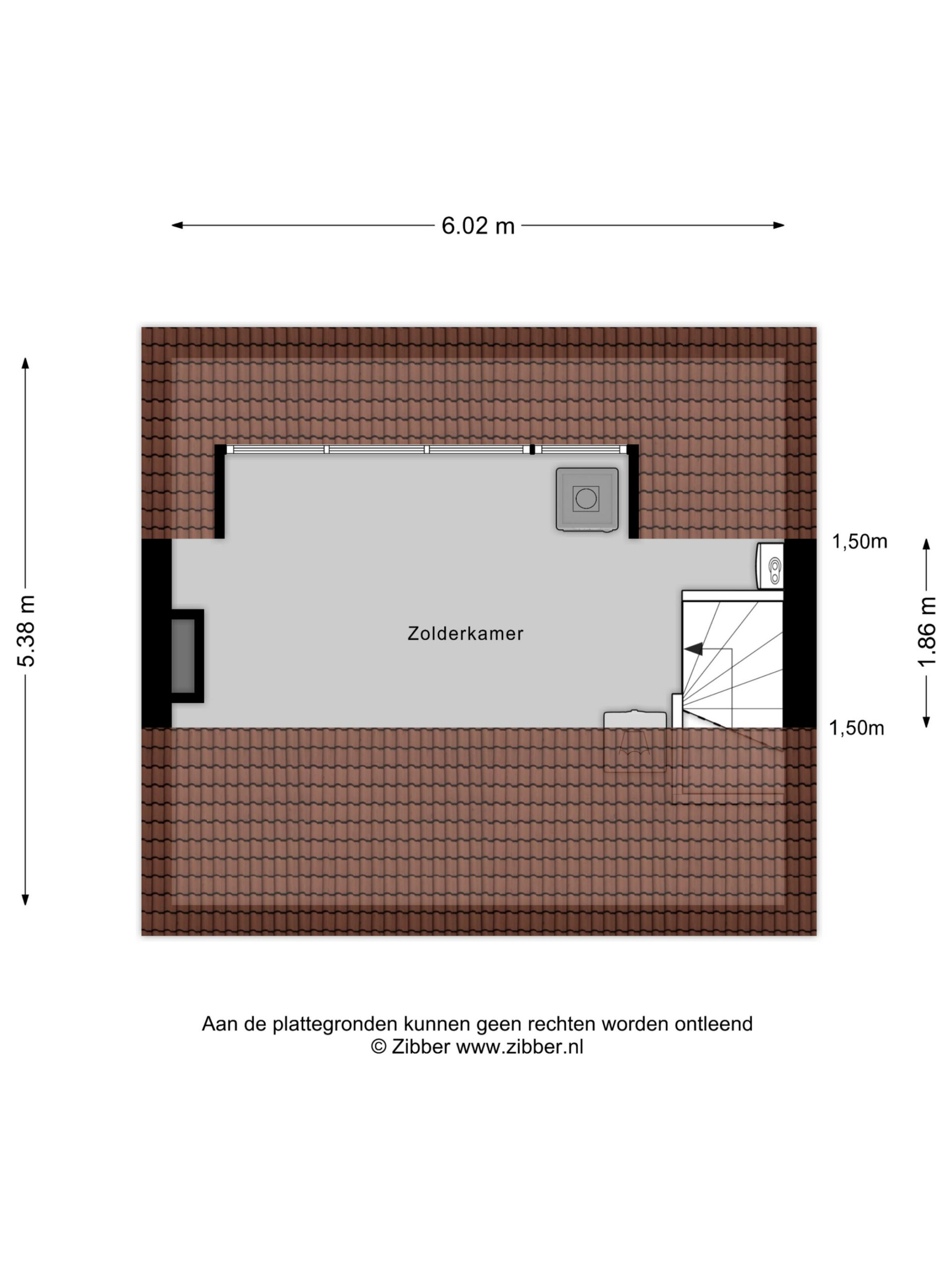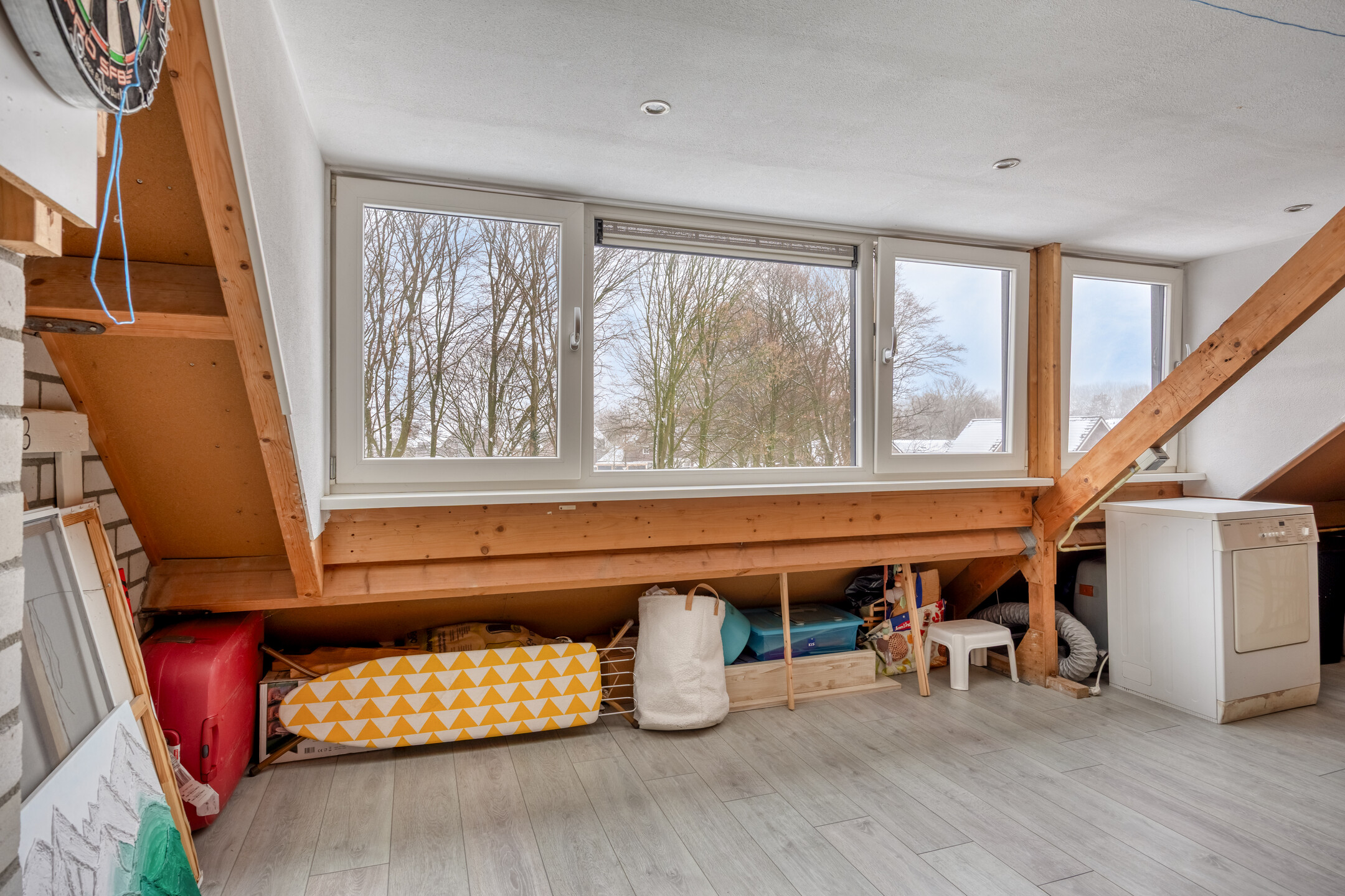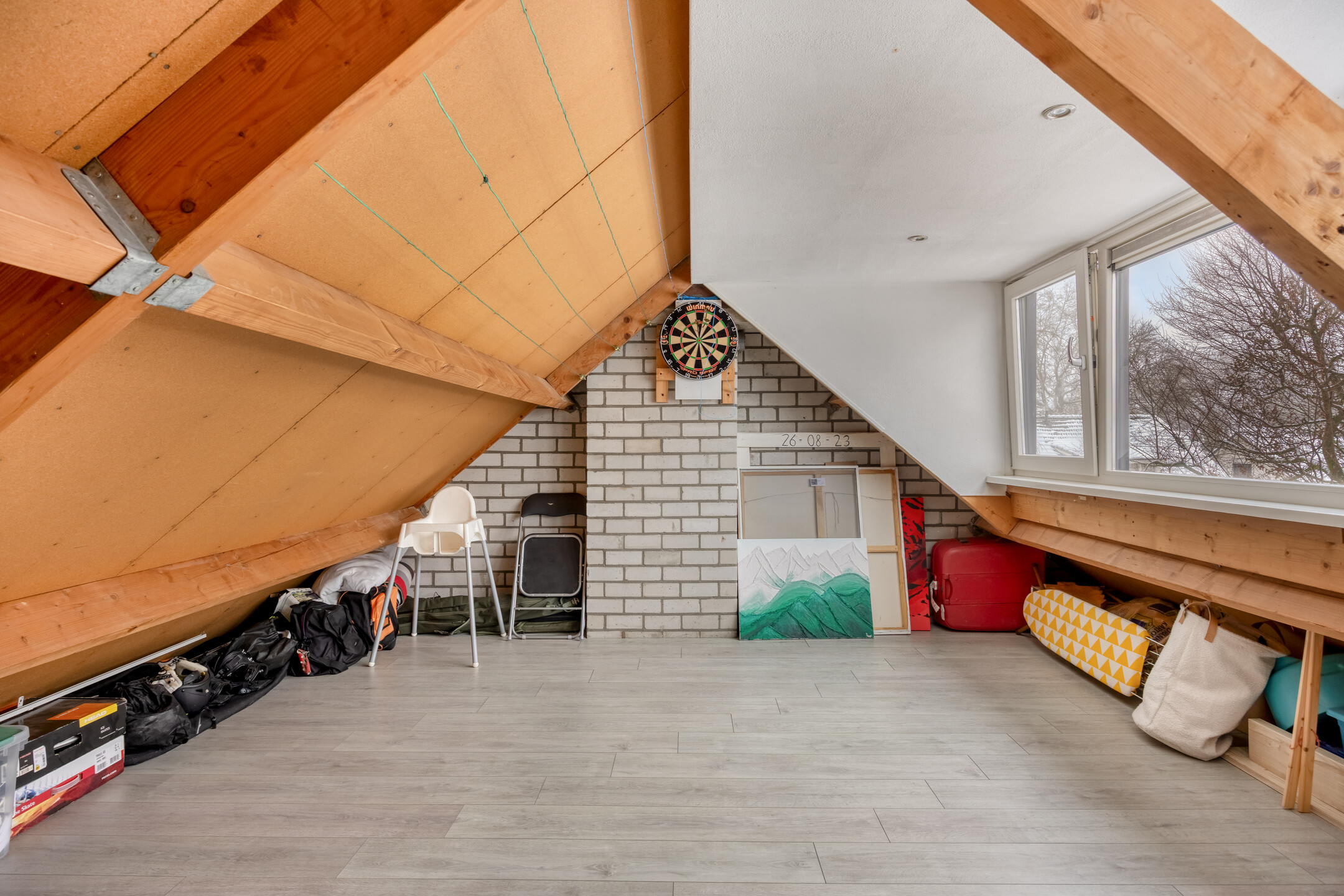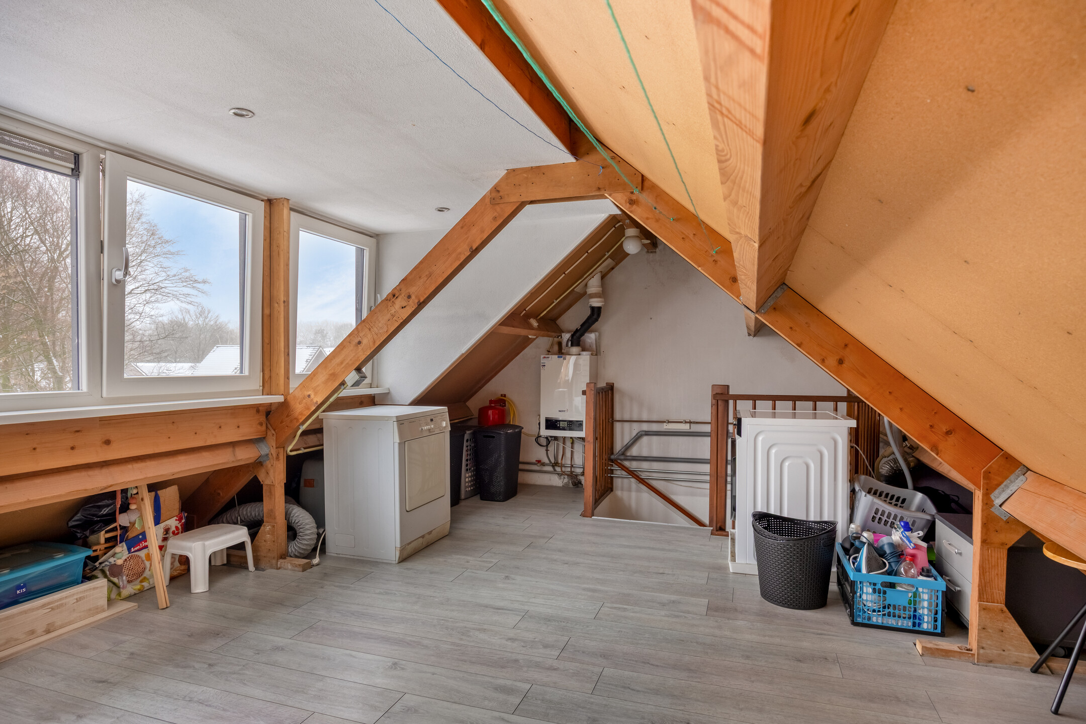 2e verdieping: via een vaste trap bereikbare zolder met over de gehele achterzijde een dakkapel, verder de opstelling van de cv-ketel en de aansluitingen t.b.v. het witgoed.