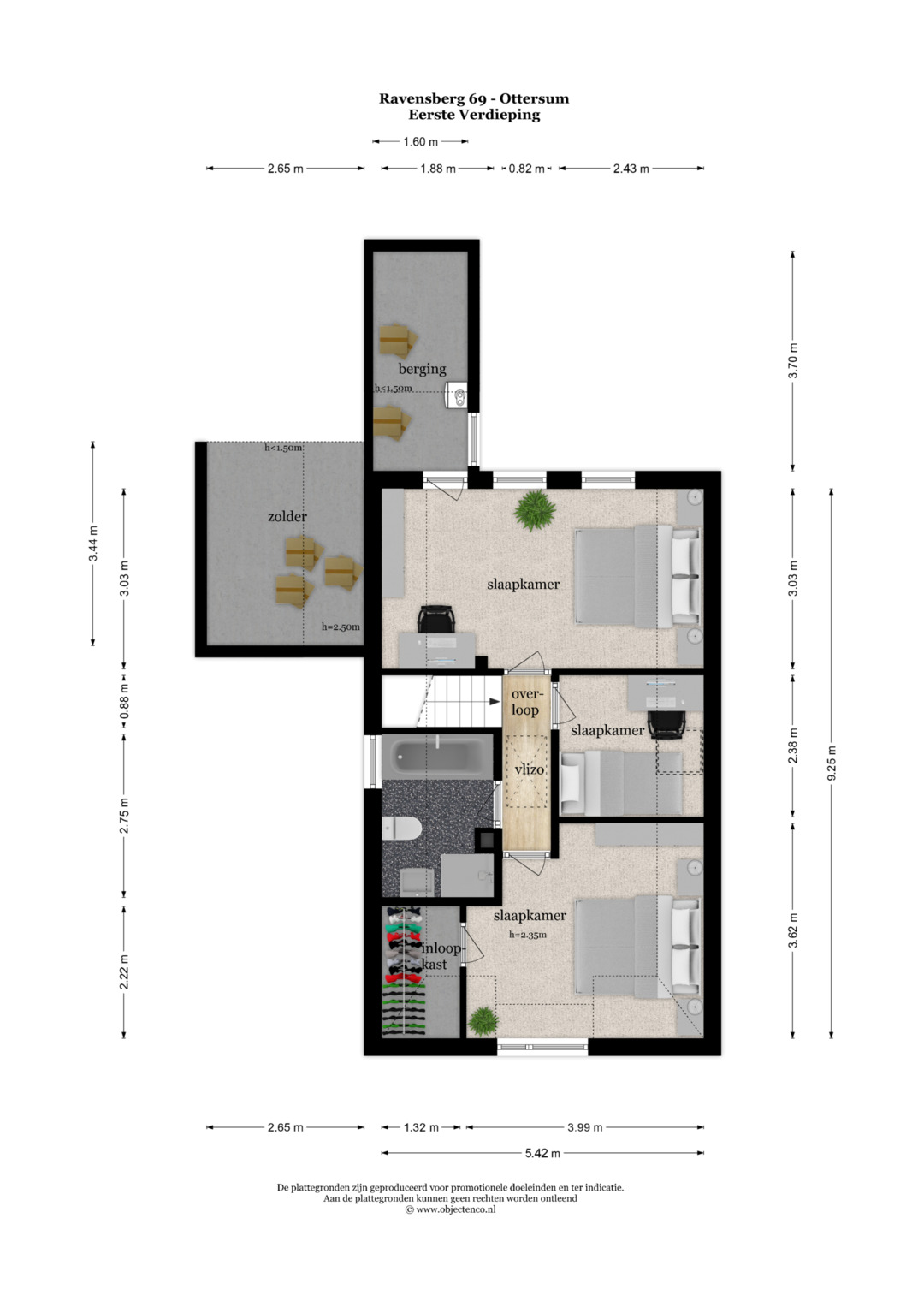De overloop en drie slaapkamers zijn voorzien van laminaat.