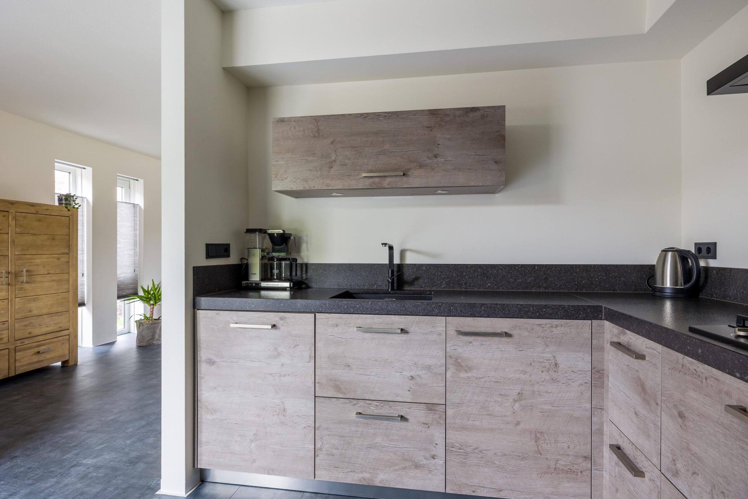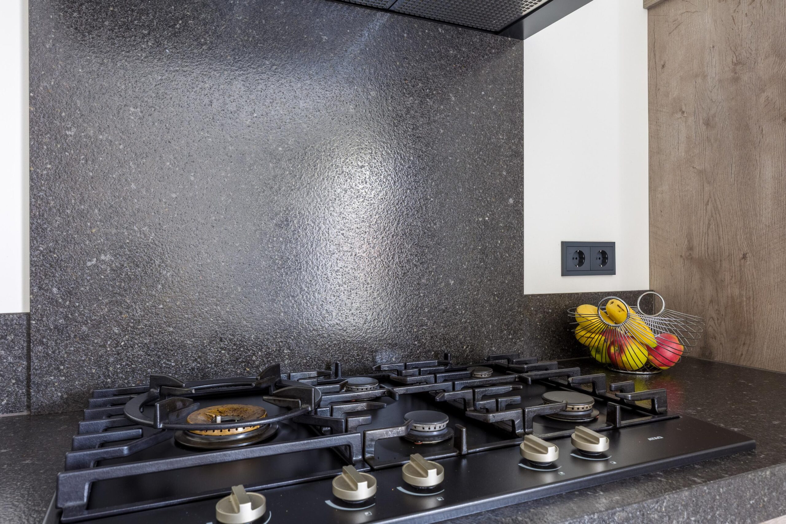 De keukenopstelling (2016) is voorzien van de volgende inbouwapparatuur: koelkast, 5-pits gaskookplaat, afzuigkap, oven en vaatwasser.