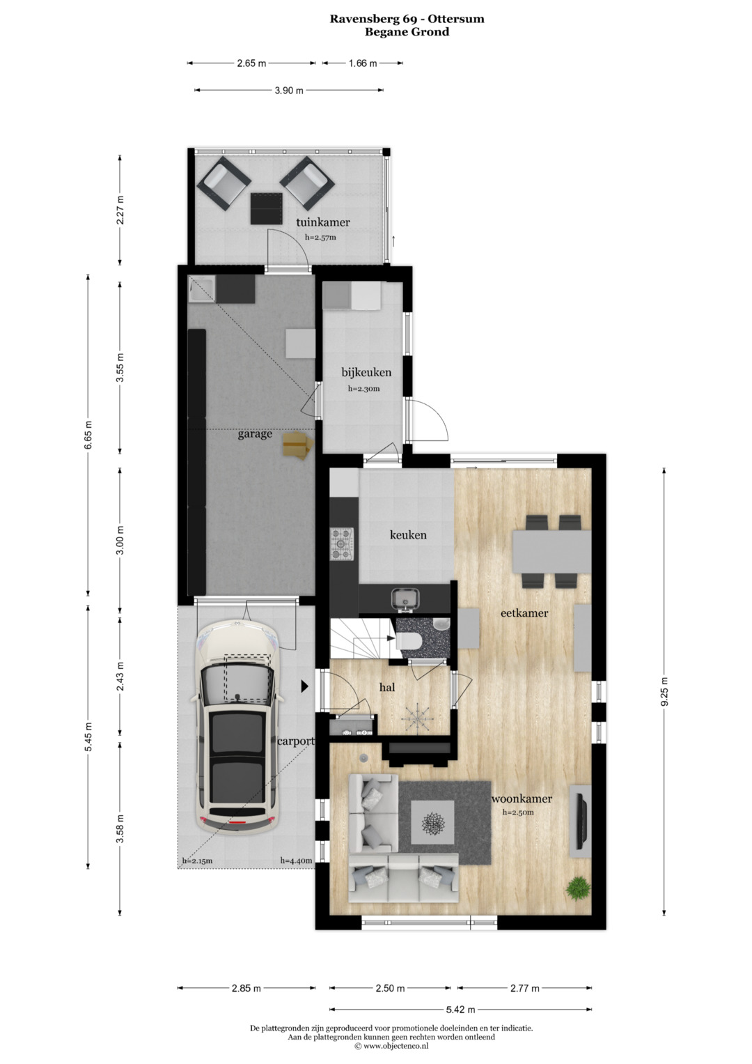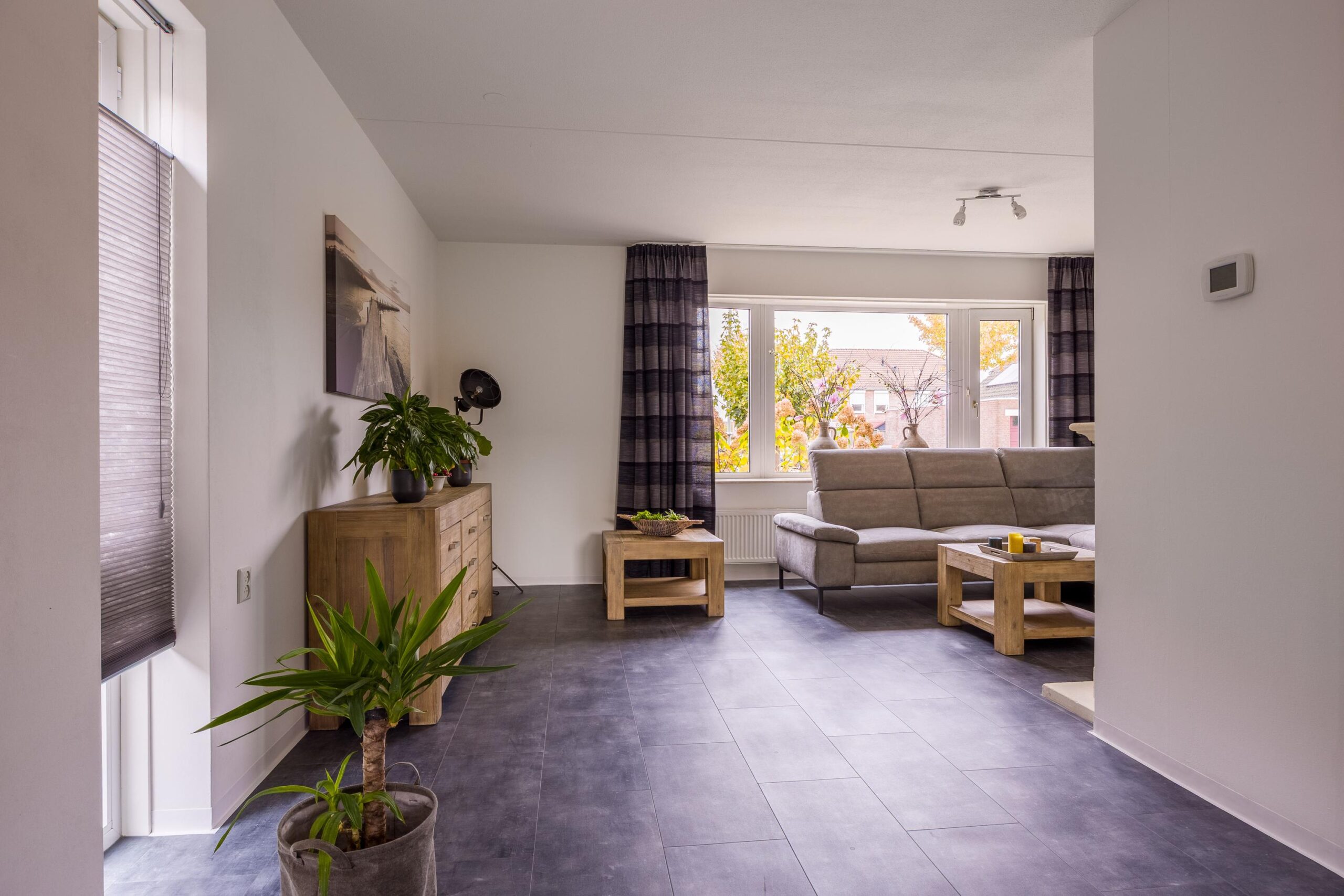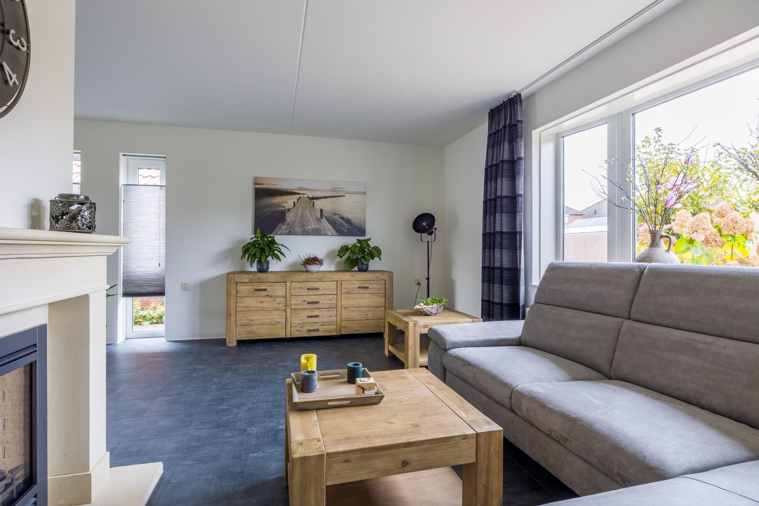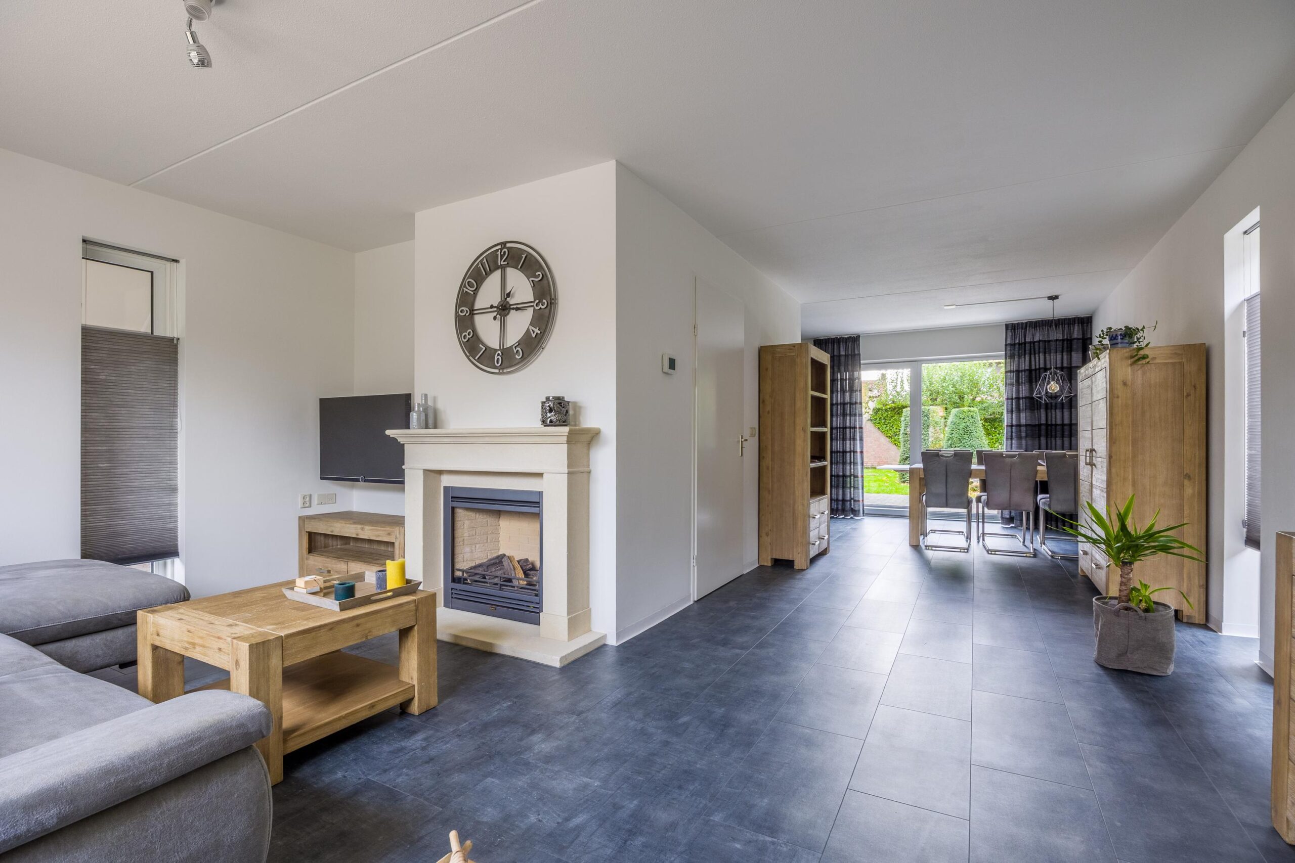 Begane grond: hal, toilet, L-vormige living voorzien van een zandstenen schouw met gashaard en met directe toegang via de schuifpui tot de achtertuin met zonneterras, open keuken met een in lichte kleuren afgewerkte keukenopstelling voorzien van inbouwapparatuur, bijkeuken met witgoedaansluitingen en met toegang tot de garage/ berging met bergzolder, aangebouwde tuinkamer. 1e verdieping: overloop, 3 slaapkamers, waarvan één voorzien is van een inloopkledingkast en één met een aangrenzende bergruimte, een geheel betegelde nette complete badkamer voorzien van een ligbad, toilet, vaste wastafel en inloopdouche. 2e verdieping: bereikbaar via een vlizotrap, vliering.