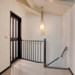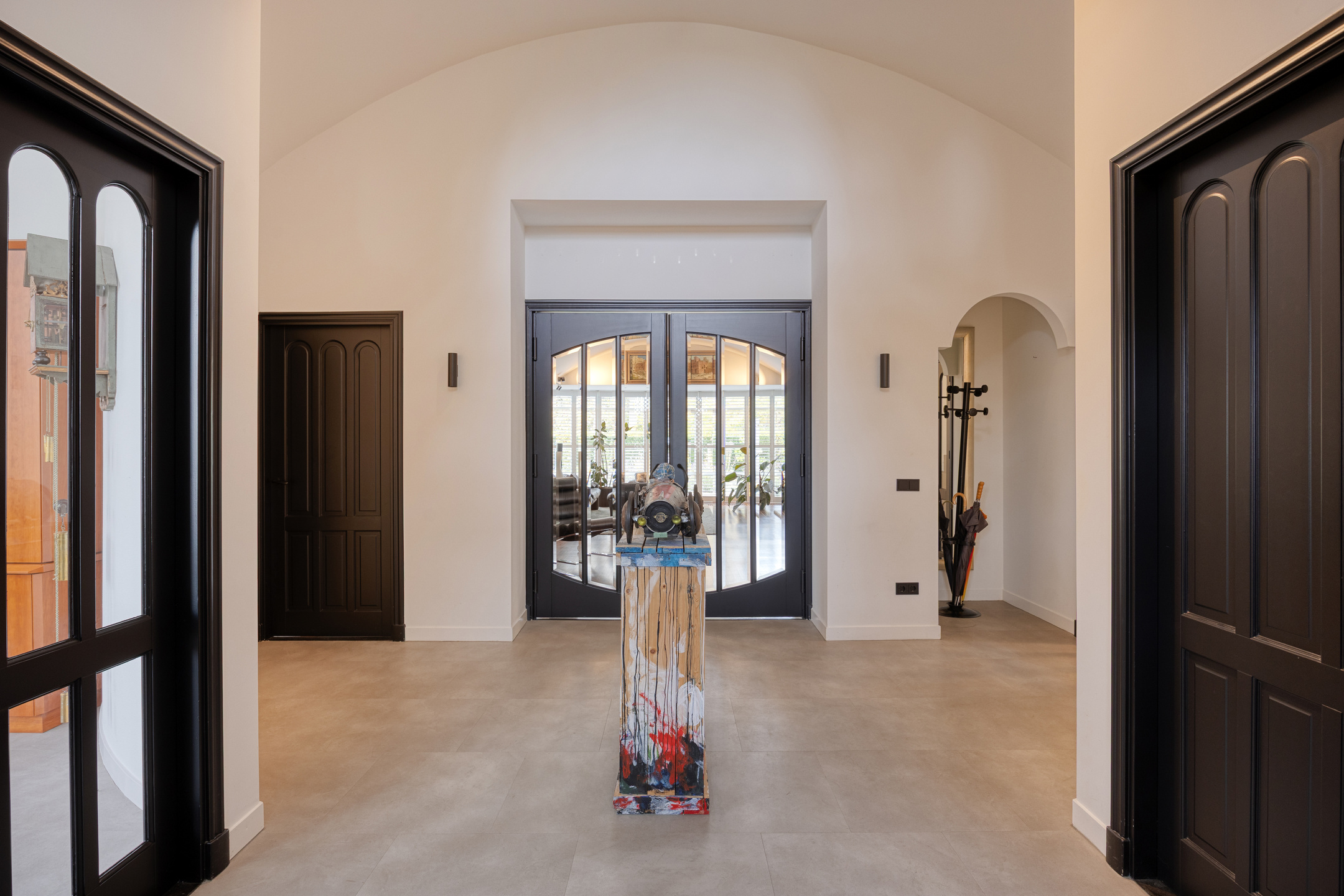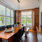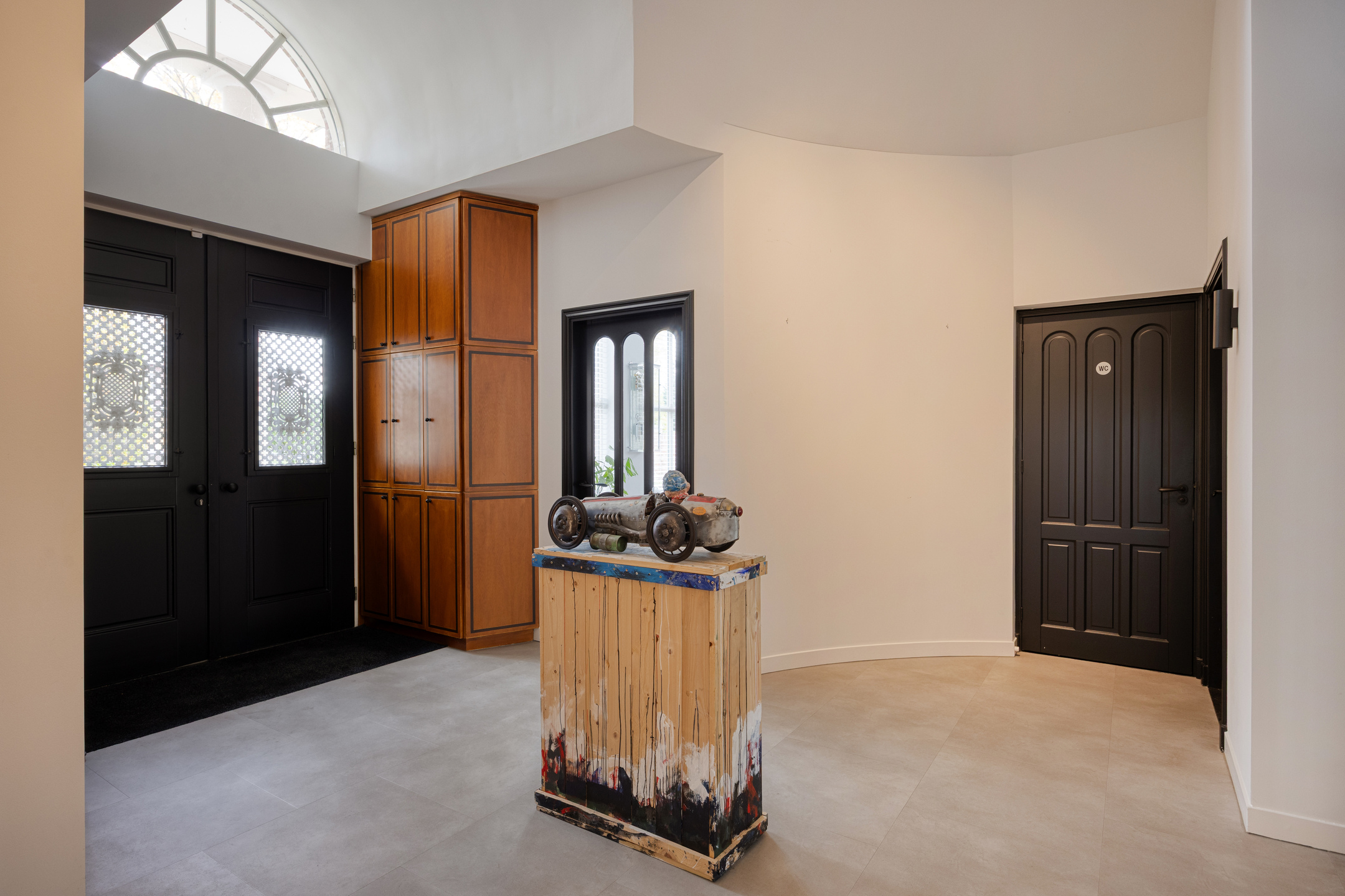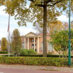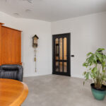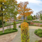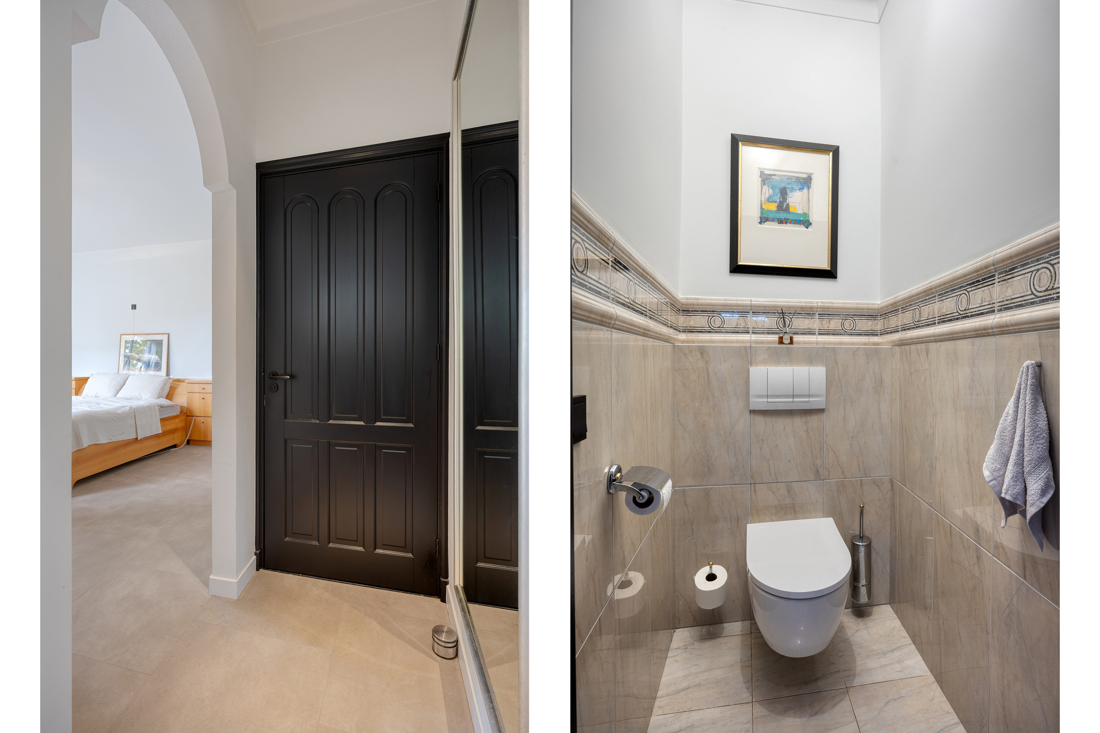Begane grond: ruime ontvangsthal met diverse inbouwkasten, garderobenis en meterkast. De toiletruimte is voorzien van een wandcloset en fonteintje. Via dubbel openslaande deuren wordt de royale woonkamer bereikt. Deze is voorzien van een sfeervolle gashaard, een gewelfd plafond en een uitzicht op de achtertuin middels een grote raampartij – een ‘view’ die nooit verveelt. Grenzend aan de woonkamer is een knusse eethoek met inbouwkasten. De dichte moderne keuken, die in 2021 is geplaatst, is voorzien van luxe inrichting zoals een combi-oven, stoomoven, bordenwarmer en een grote koelkast. Vanuit de keuken kan ook de pantry worden bereikt. Twee slaapkamers en een ruim kantoor zijn vanuit de ontvangsthal bereikbaar. Wie in de van airconditioning voorziene master bedroom ontwaakt, heeft uitzicht op de achtertuin. In die slaapkamer is ook een toilet aanwezig en een in 2021 gerealiseerde badkamer en suite, voorzien van een halfronde inloopdouche en dubbele wastafel. De andere slaapkamer is ook uitgerust met een wastafel en douchecabine en geeft toegang tot de veranda. Het met airconditioning uitgeruste kantoor, aan de voorzijde van de villa, is ruim van opzet en – zoals dat geldt voor alle ruimtes op de begane grond – voorzien van volop natuurlijke lichtinval.