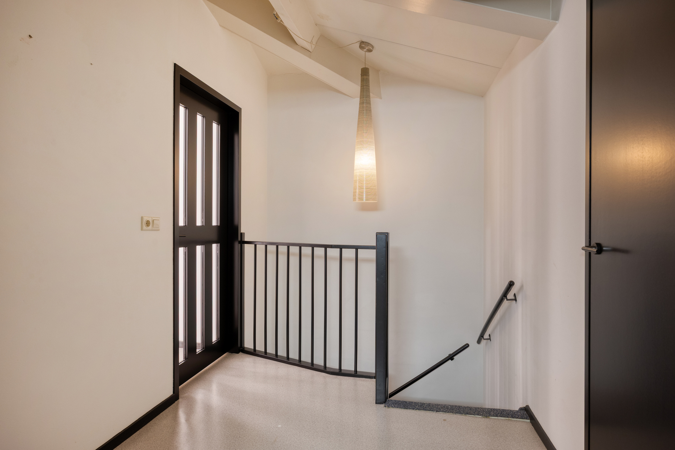 1e verdieping: middels vaste trap te bereiken etage, opgedeeld in meerdere vertrekken waaronder een bergruimte met de opstelling van de cv-ketel en een bergruimte met de witgoedaansluitingen en wasbak. Op de eerste verdieping zijn nog enkele andere ruime vertrekken, die door relatief kleine aanpassingen middels het plaatsen van dakvensters kunnen worden omgeturnd tot bijvoorbeeld slaapkamers.