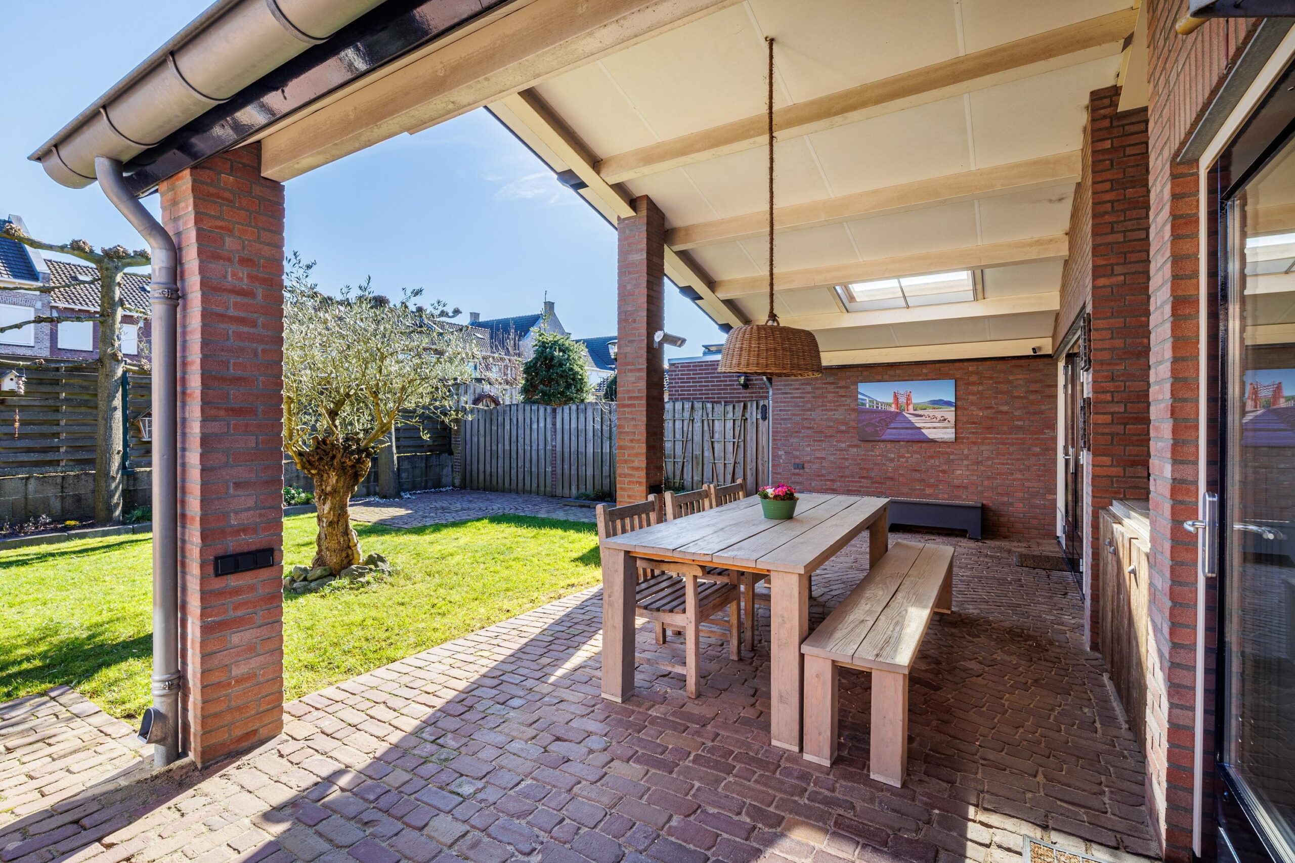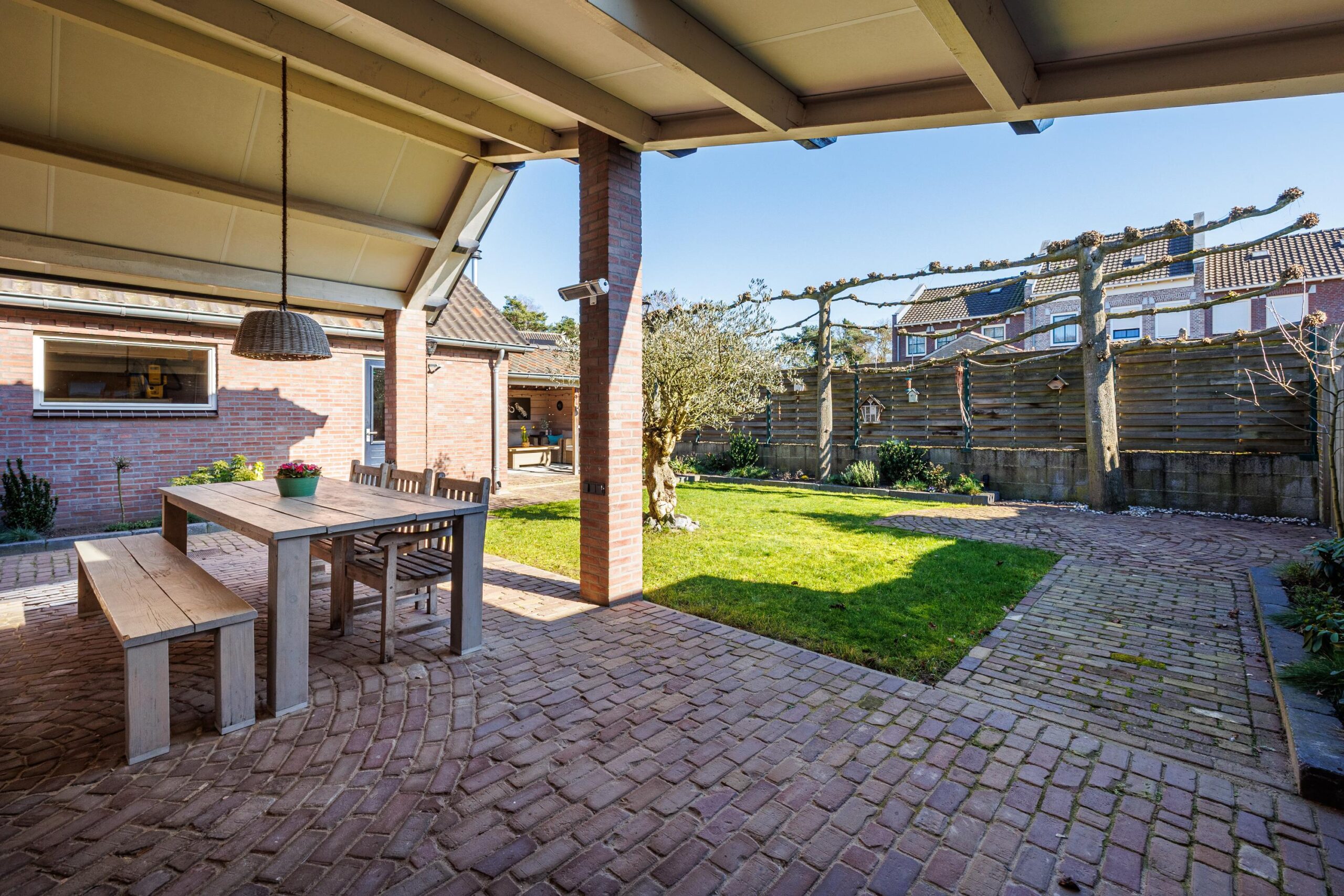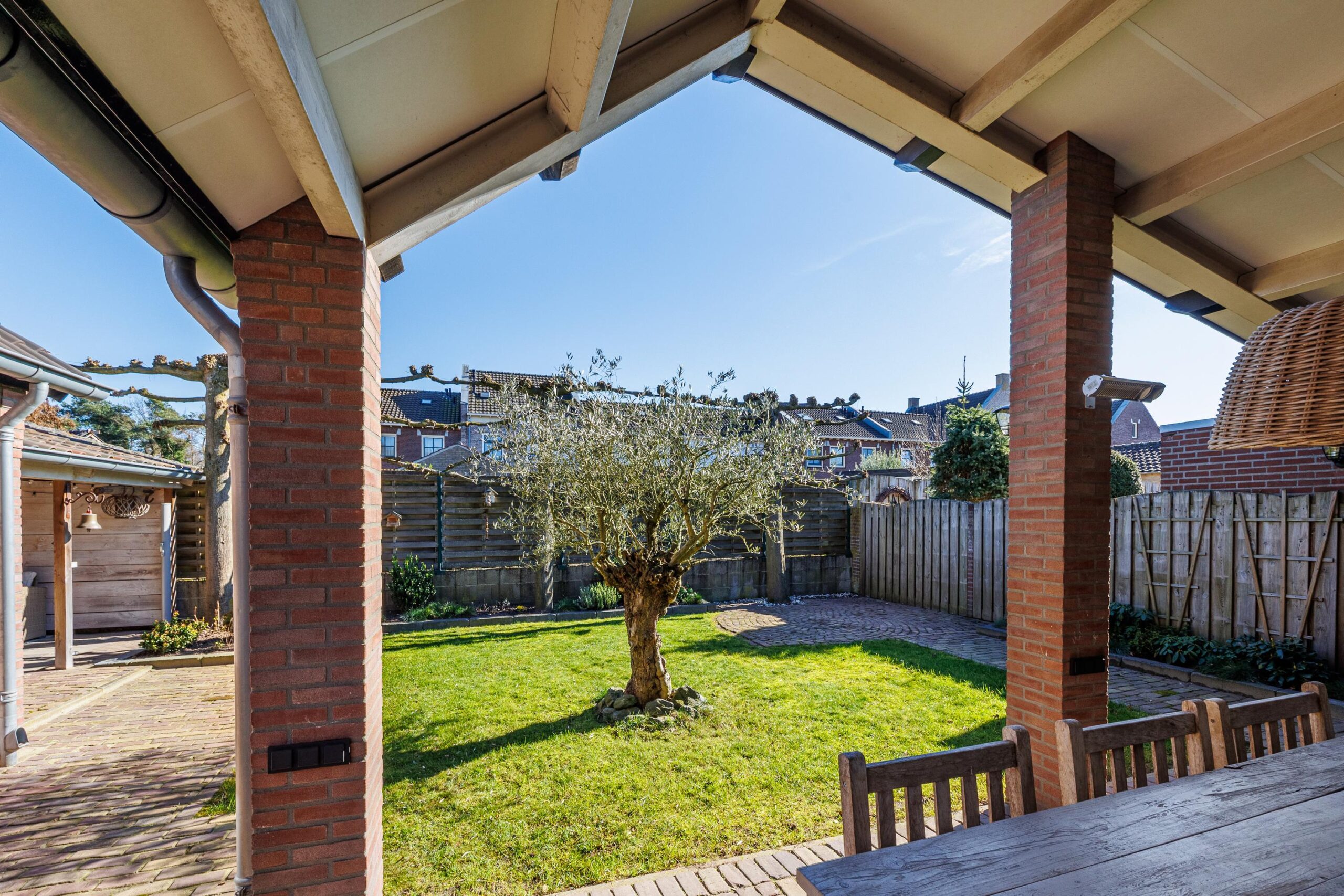 Gezien de bouwkundige voorziening van de aangebouwde overkapping is het eenvoudig om de overkapping bij de woning te betrekken.