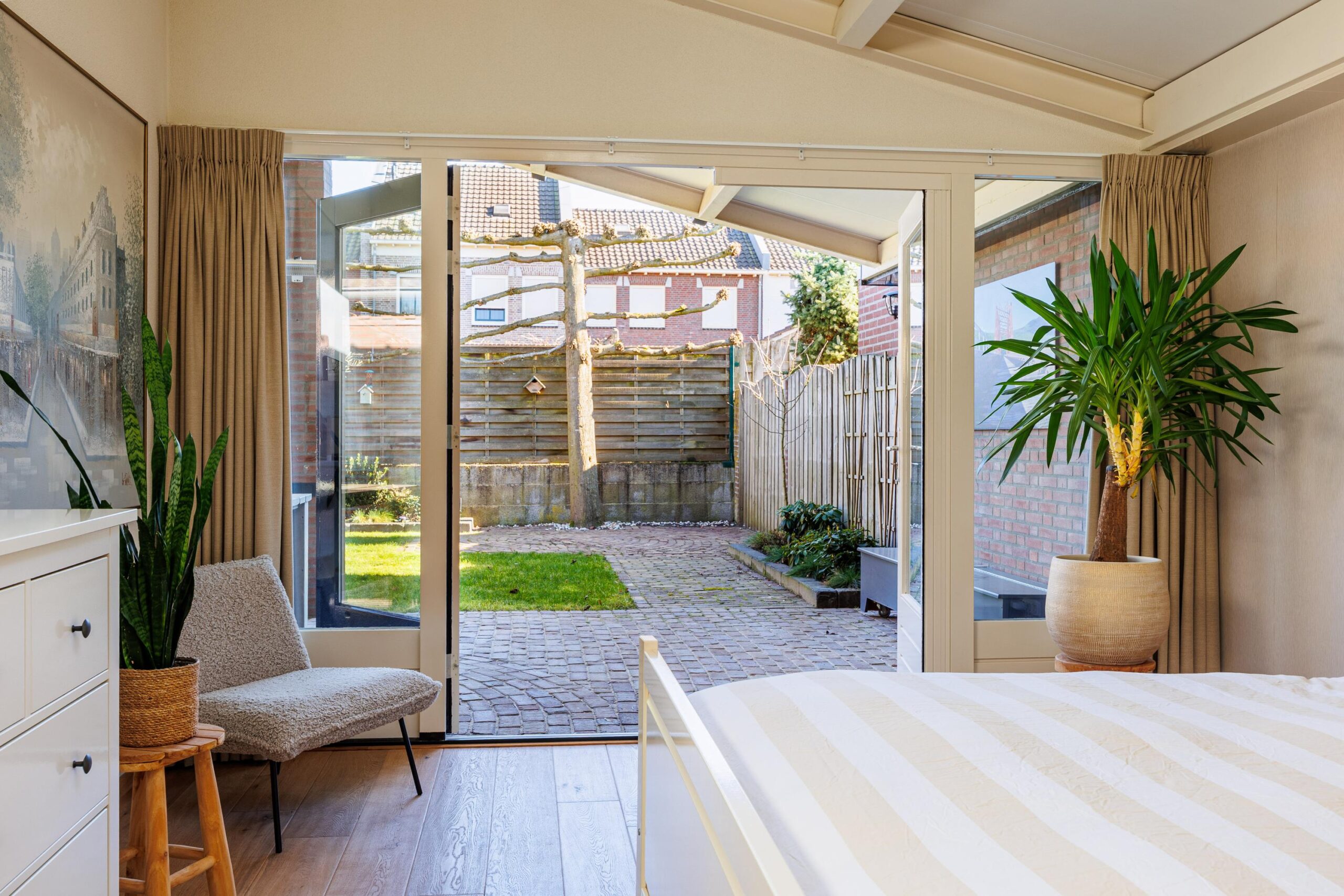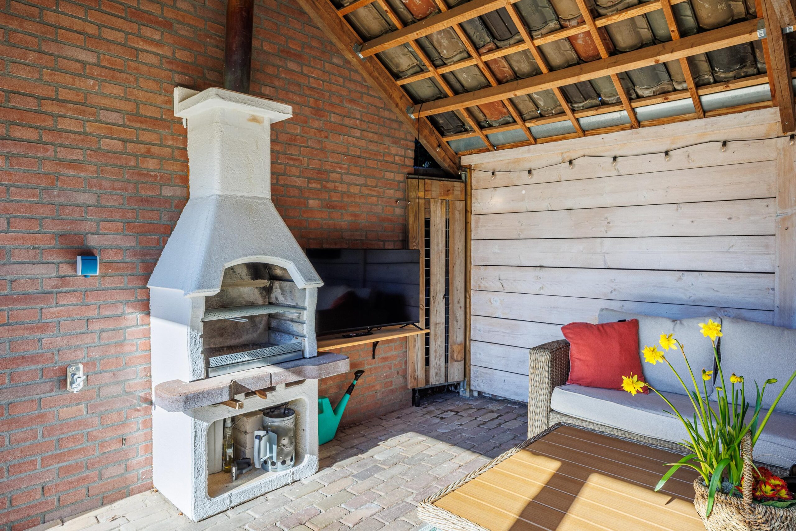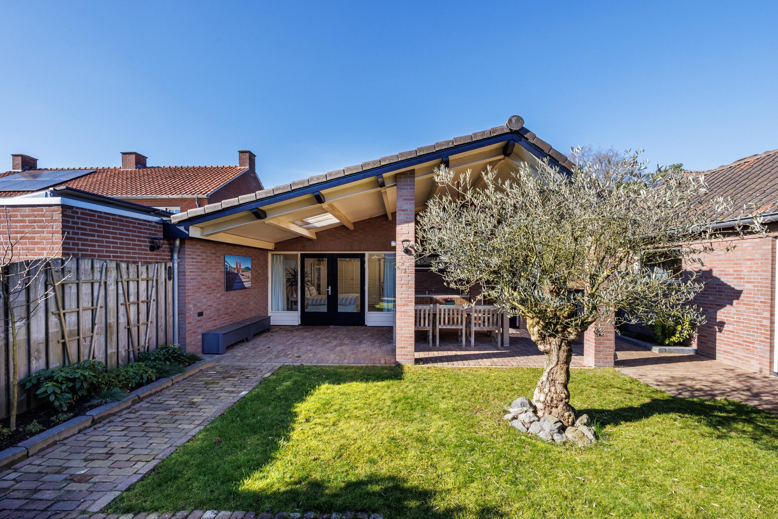 Gezien de bouwkundige voorziening van de aangebouwde overkapping is het eenvoudig om de overkapping bij de woning te betrekken.