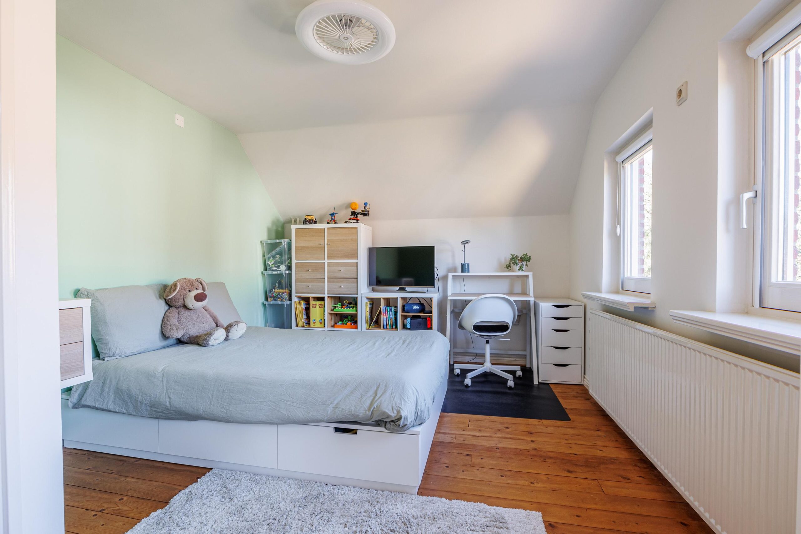 De woning verkeert in perfecte staat van onderhoud en biedt een verrassend ruime en praktische indeling. Dankzij de aanwezigheid van voorzieningen op de begane grond bestaat de mogelijkheid om volledig gelijkvloers te wonen, ideaal voor wie levensloopbestendig wil wonen of voorbereid wil zijn op de toekomst.