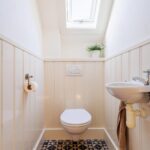 1e verdieping: overloop, toiletruimte met een vrijhangend toilet en fontein, 3 slaapkamers waarvan één met een bergkast.