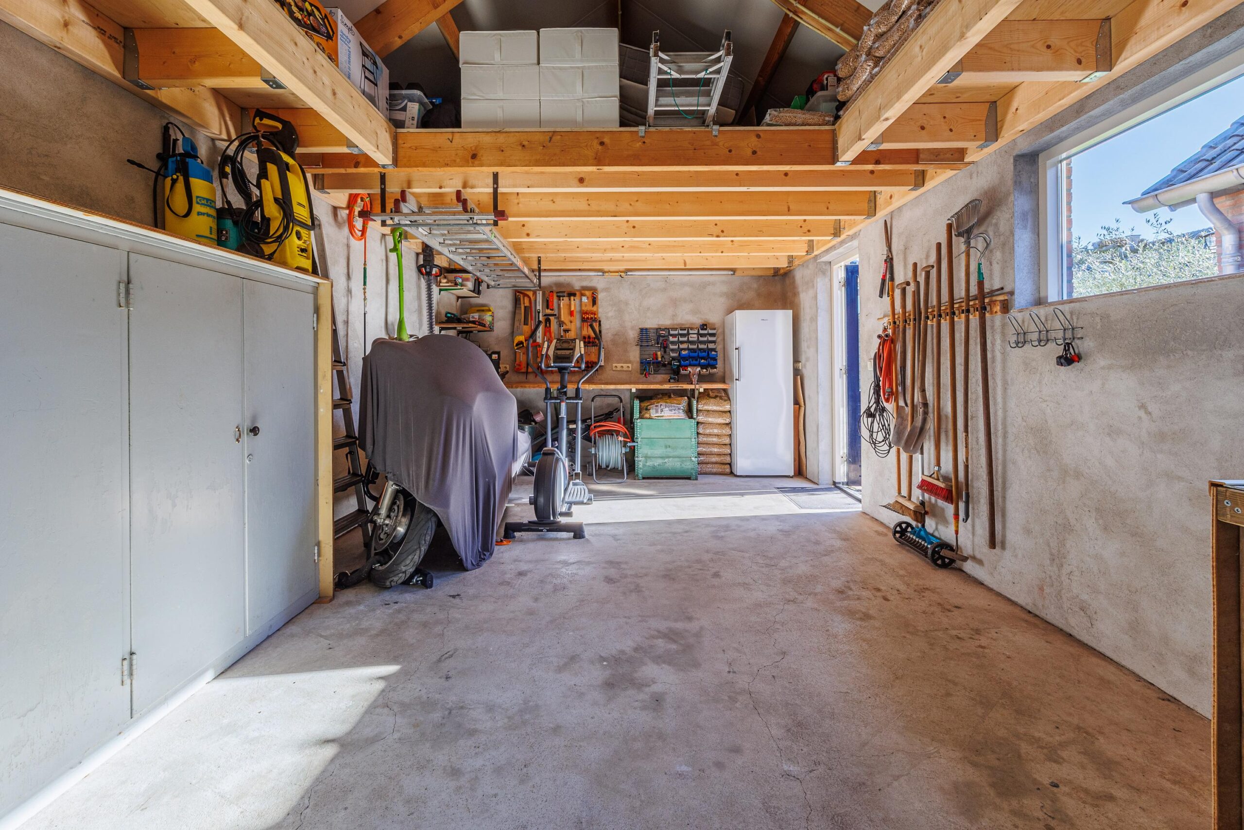 De in spouwmuren opgetrokken garage is voorzien van dak- en spouwisolatie en van dubbel glas, er is in de garage een extra bergzolder aanwezig.