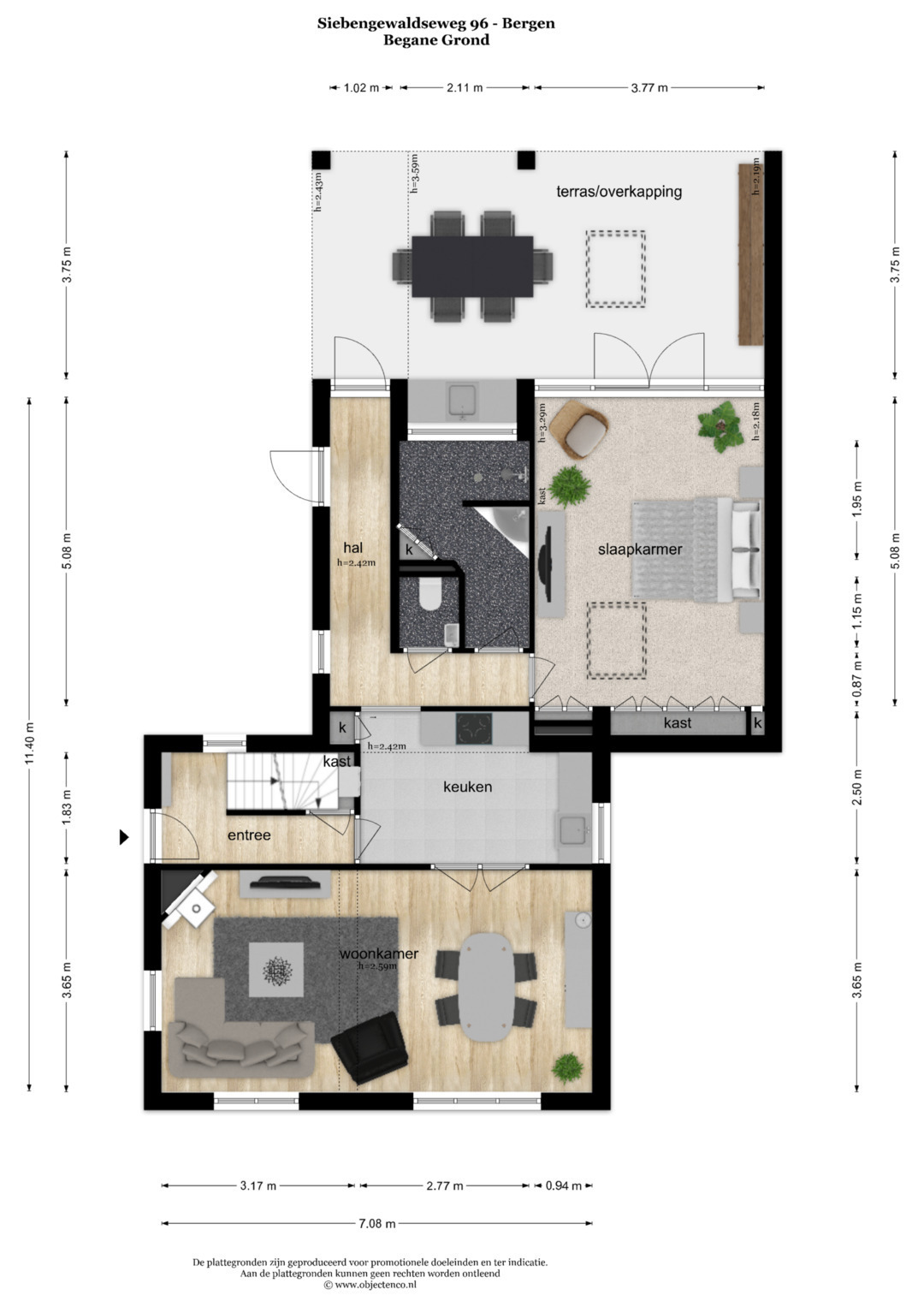 De gehele begane grond m.u.v. de hal en woonkamer is voorzien van vloerverwarming.