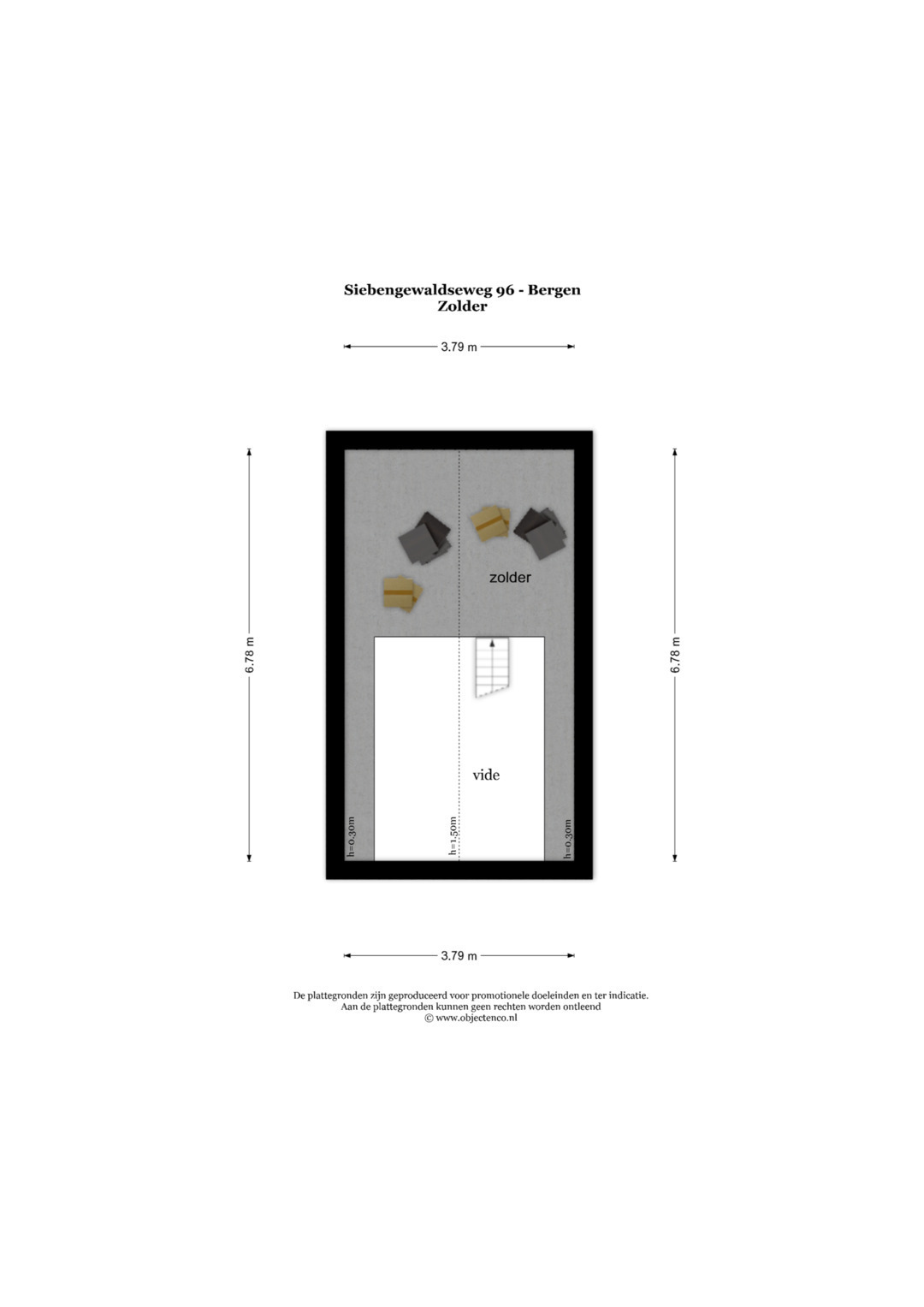 2e verdieping: bereikbaar via een vlizotrap, vliering.