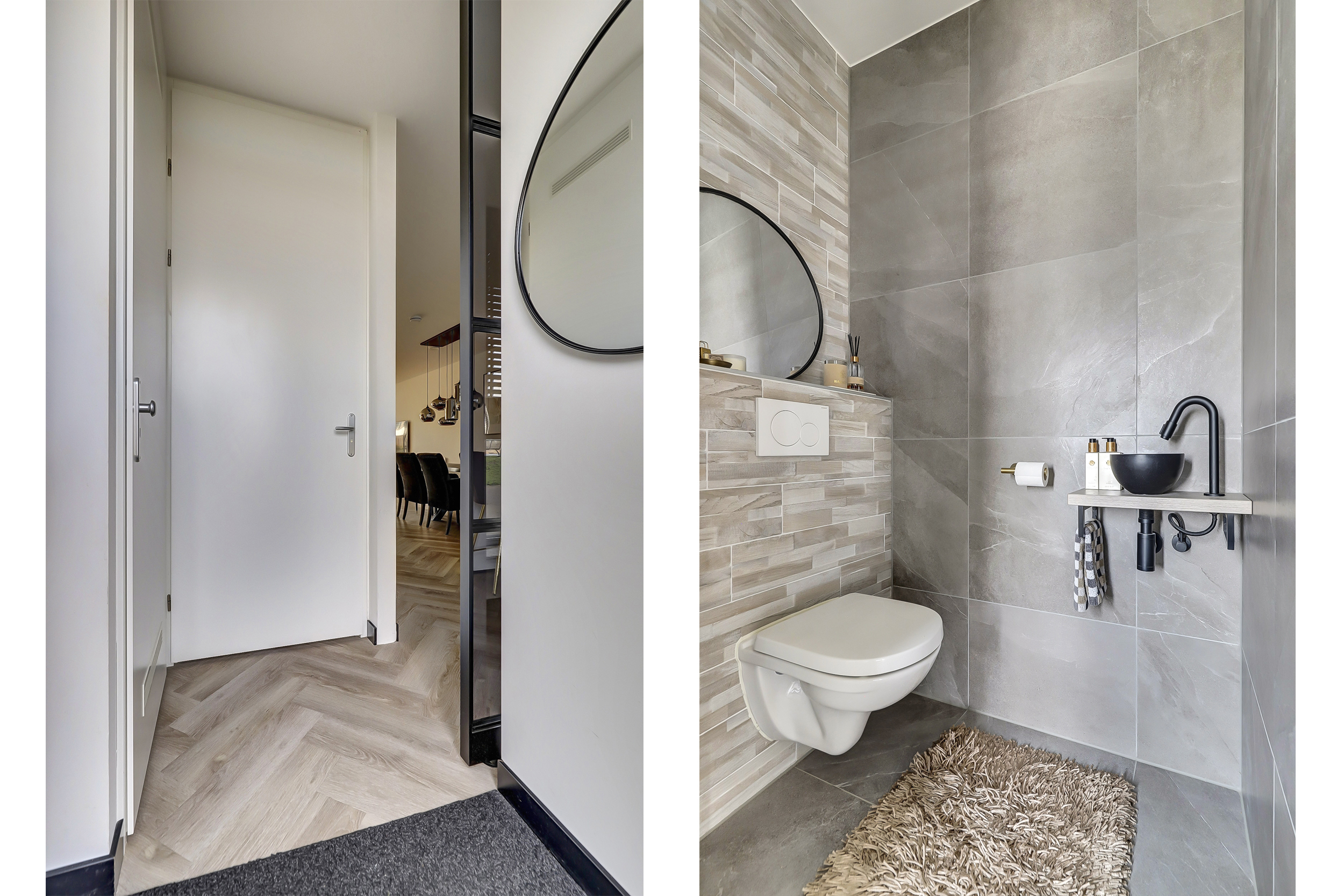 Begane grond: hal met meterkast, trapkast en toilet met wandcloset en fonteintje. Woonkamer met een uitbouw en…