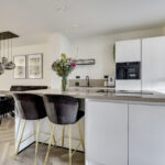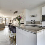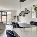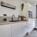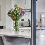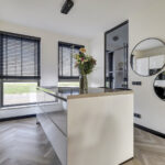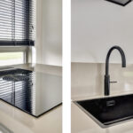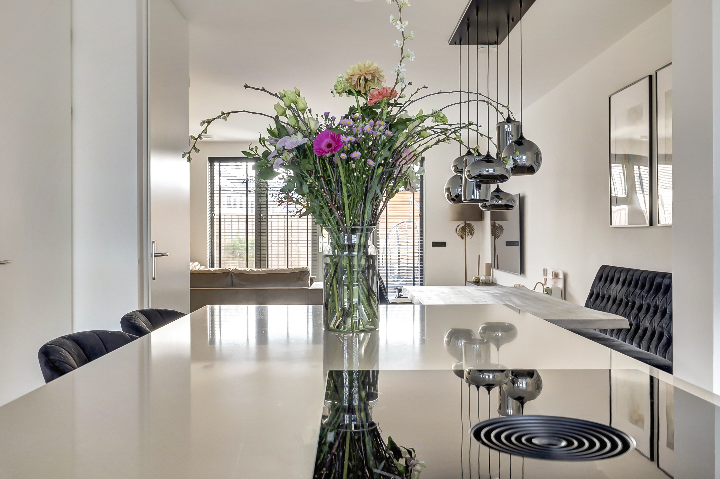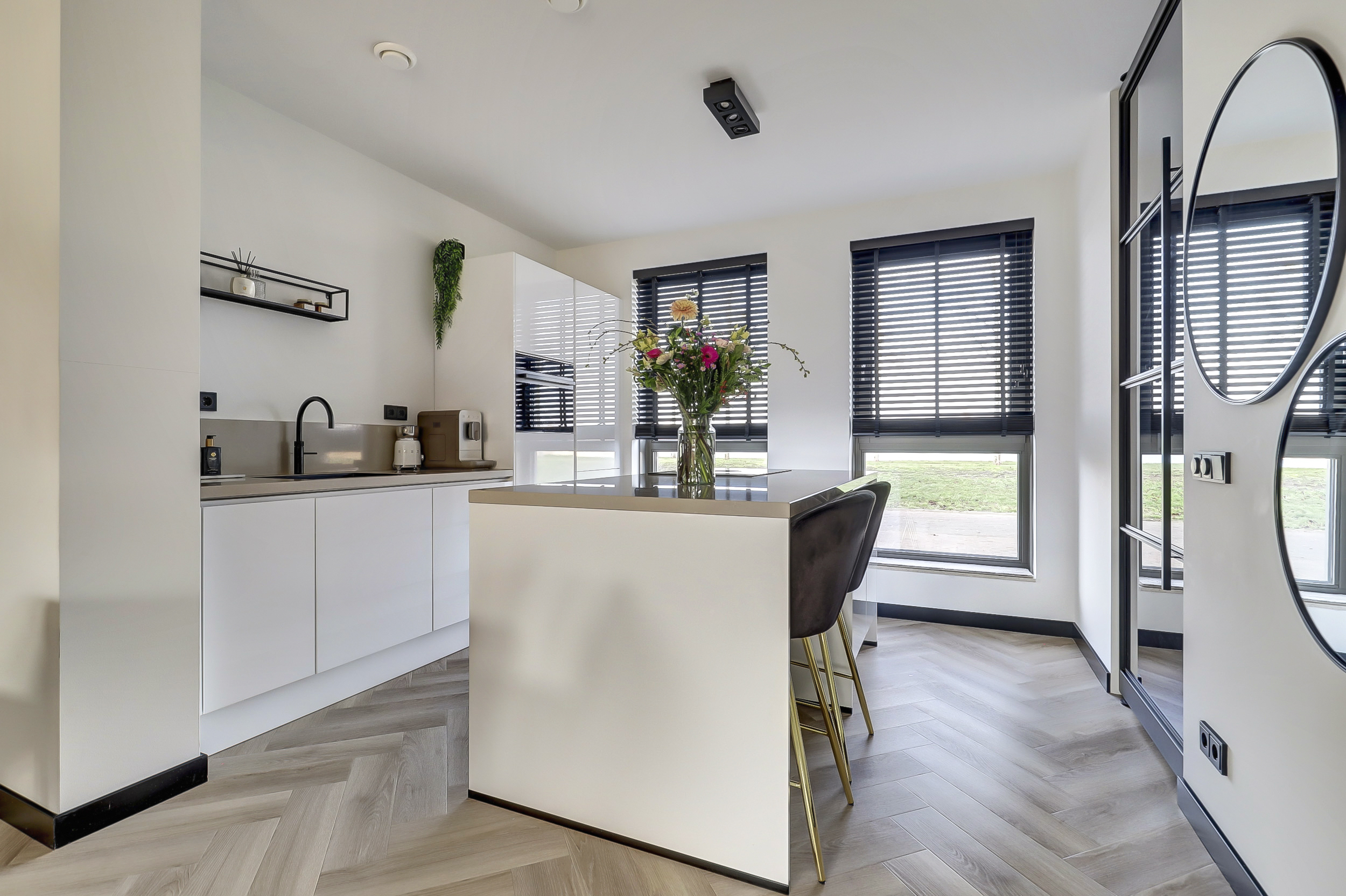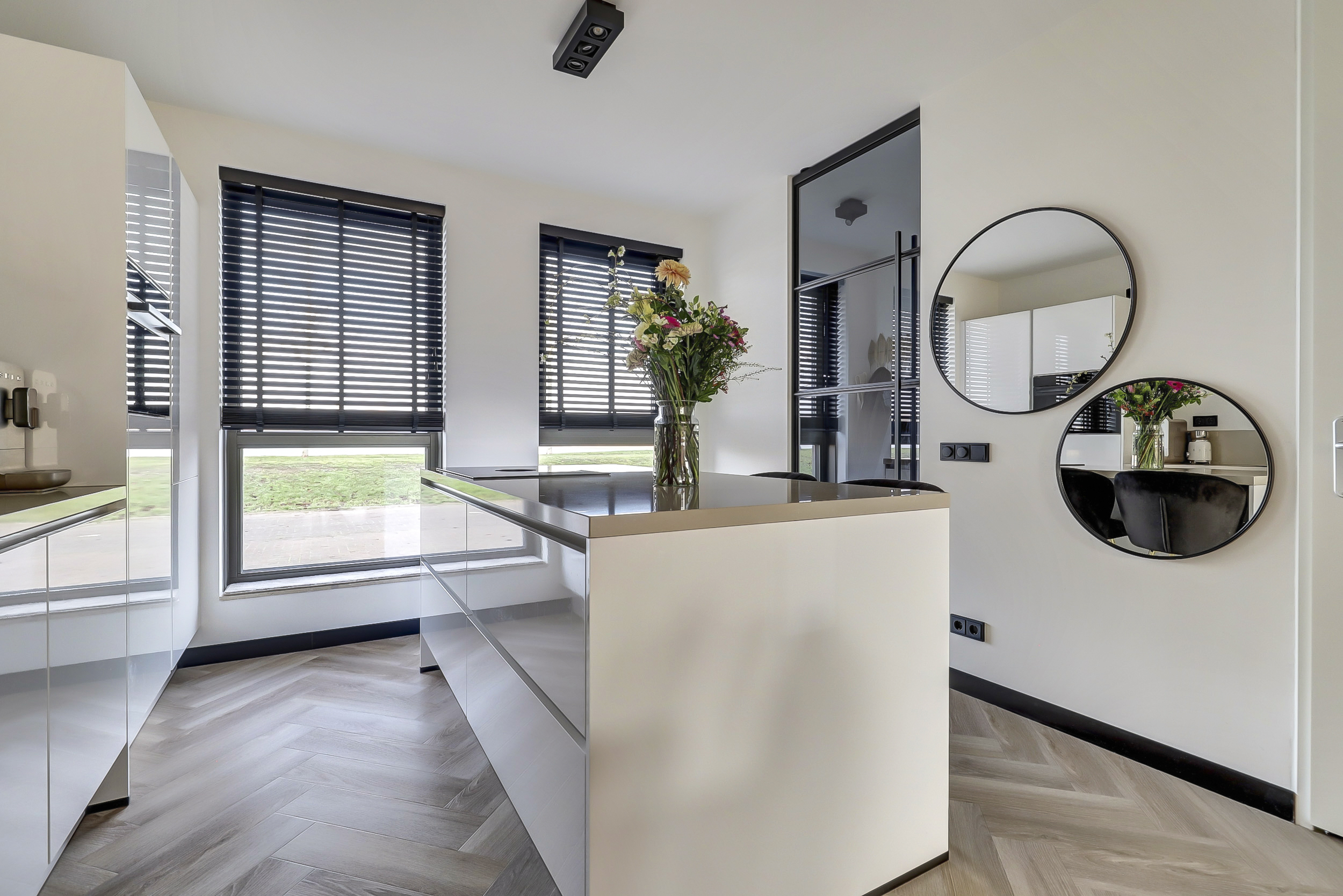 De keukenopstelling is voorzien van een Bora inductiekookplaat, combioven, vaatwasser, koelkast en Quooker.