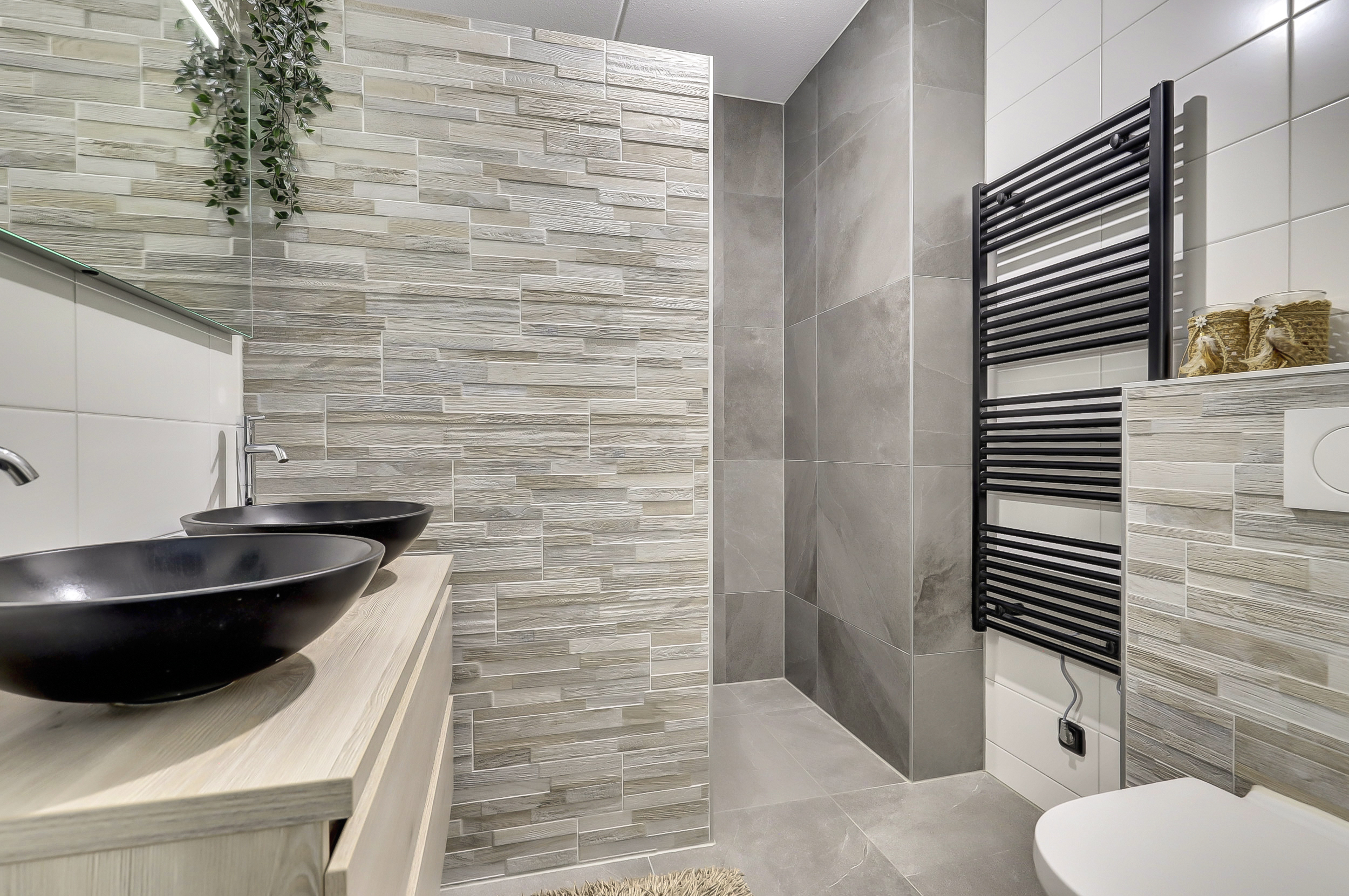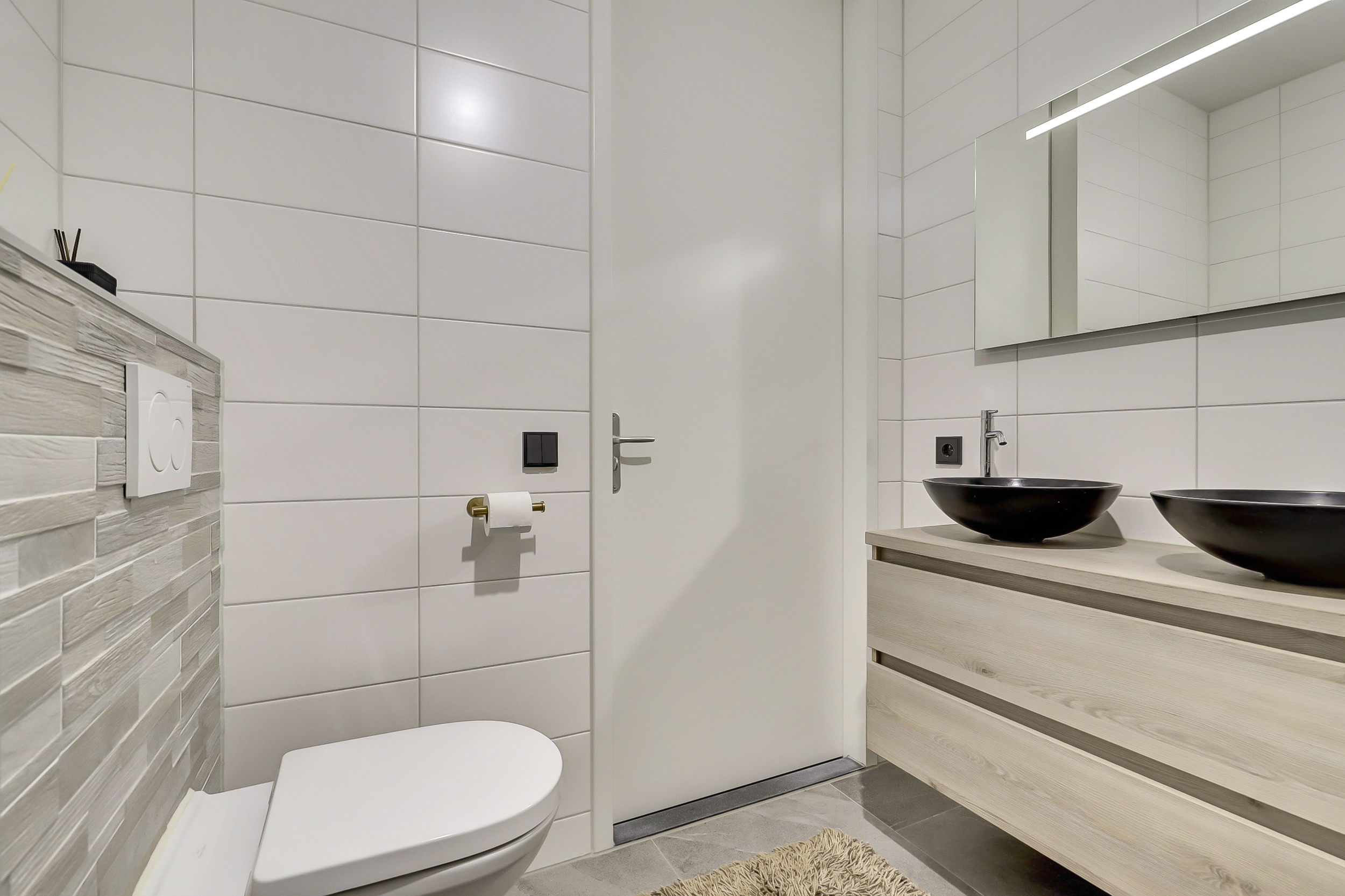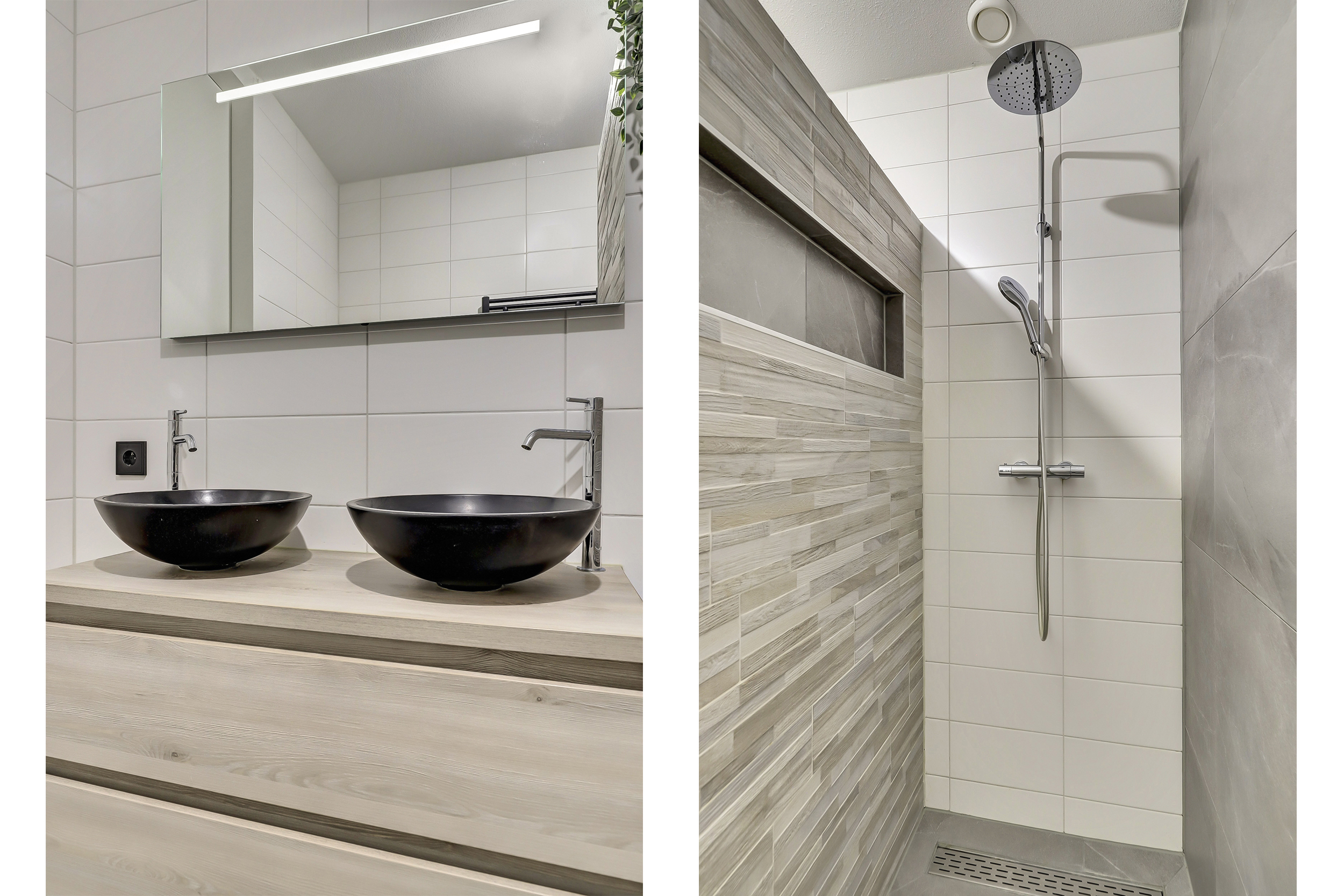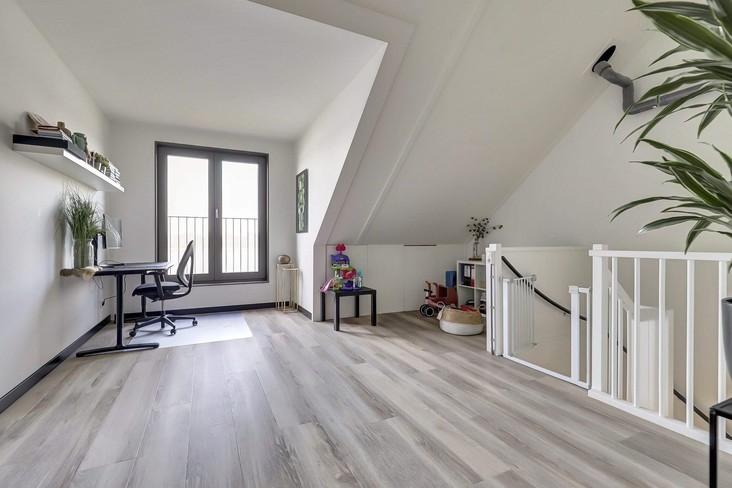 1e verdieping: overloop, 3 slaapkamers voorzien van een pvc-vloer, badkamer voorzien van een dubbele wastafel met meubel, wandcloset, inloopdouche en designradiator.
