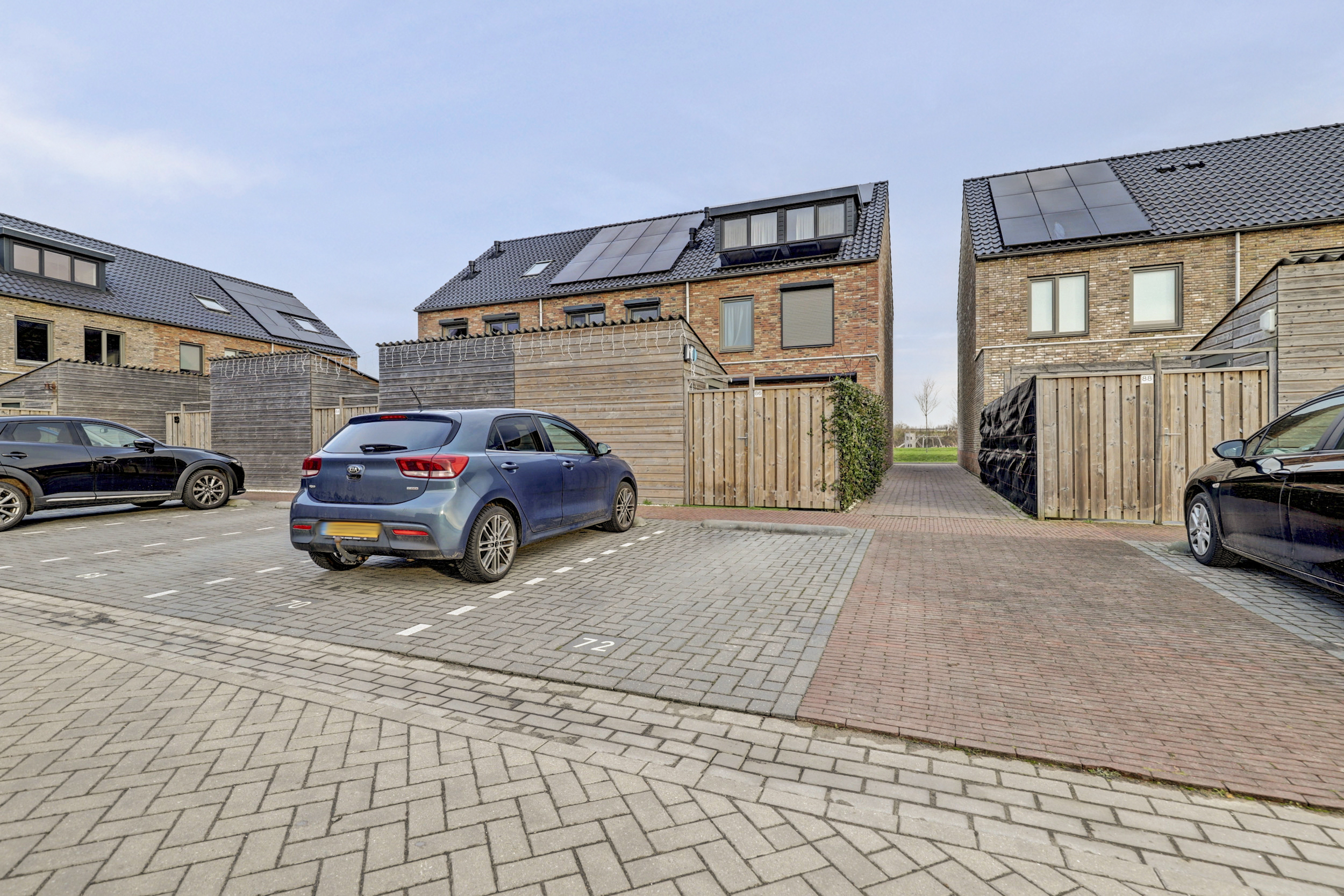 Er is 1 eigen parkeerplek (met huisnummer) op het gezamenlijke binnenterrein.