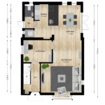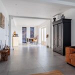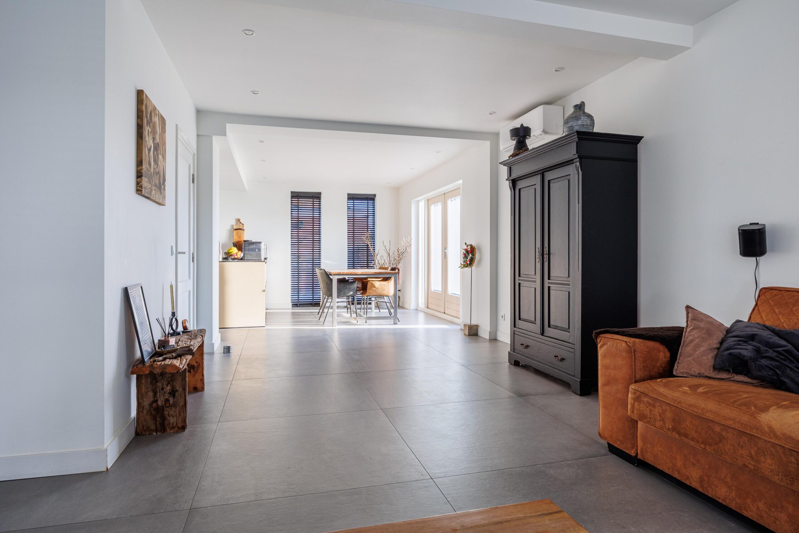 Begane grond: hal, meterkast en trapopgang, werkkamer, woonkamer met airco en een prachtige tegelvloer met vloerwarming, die doorloopt in de eetkamer…