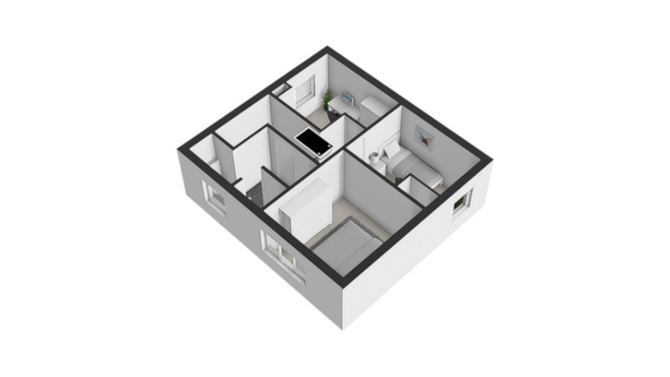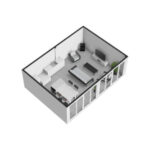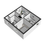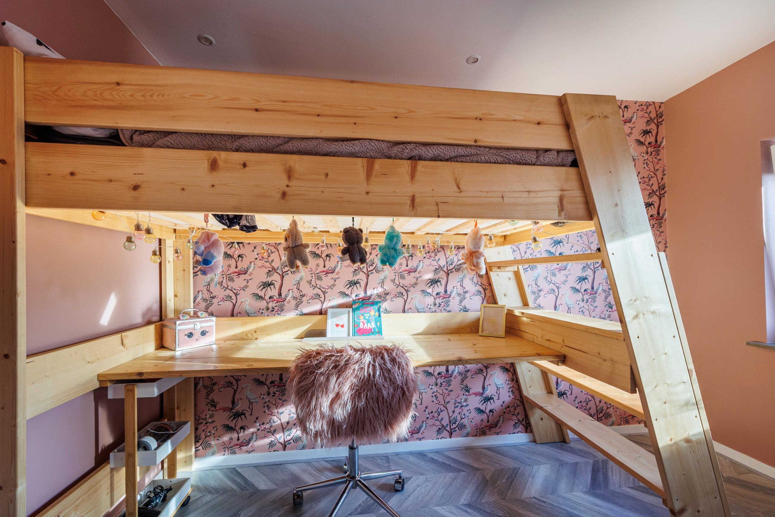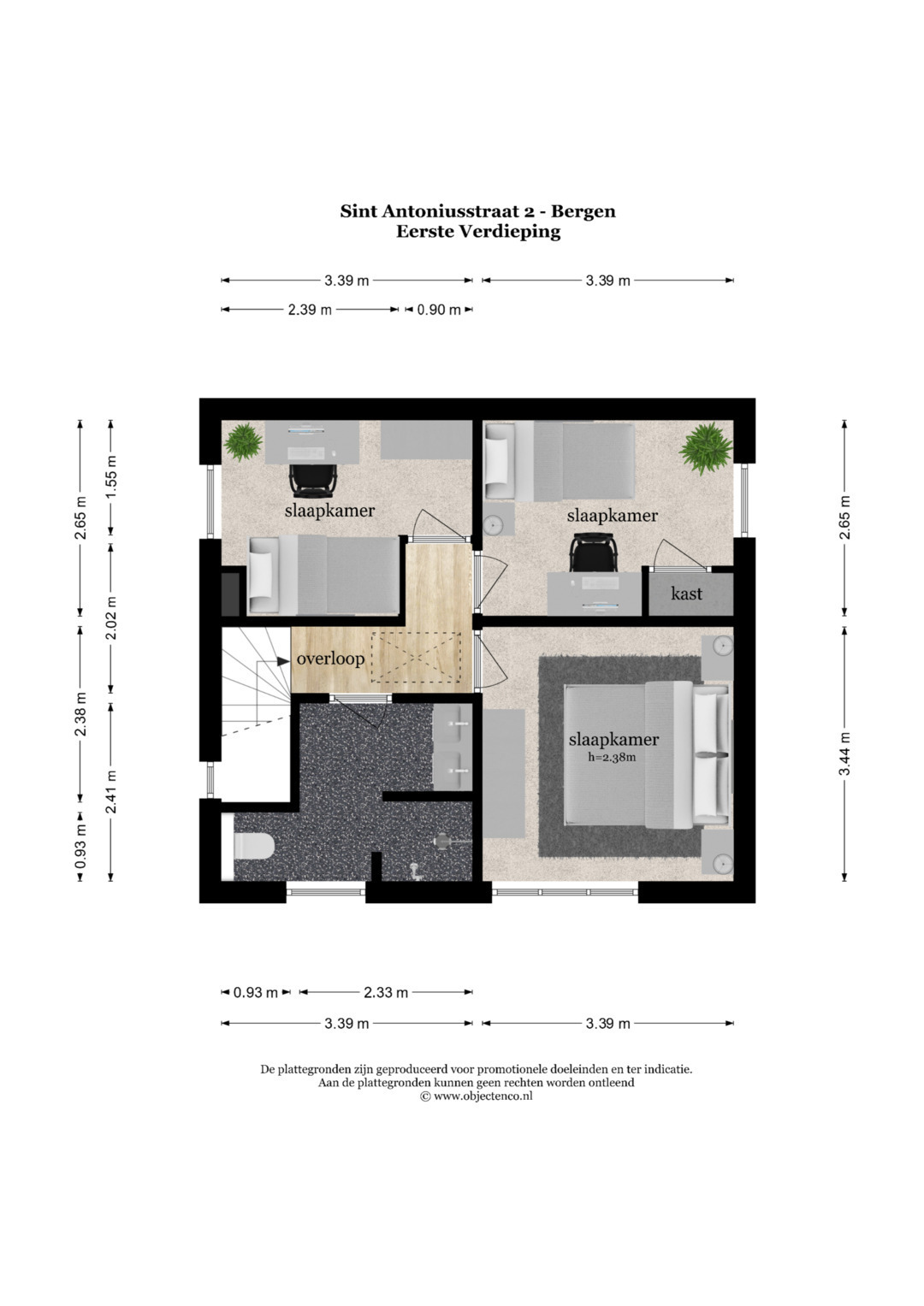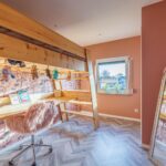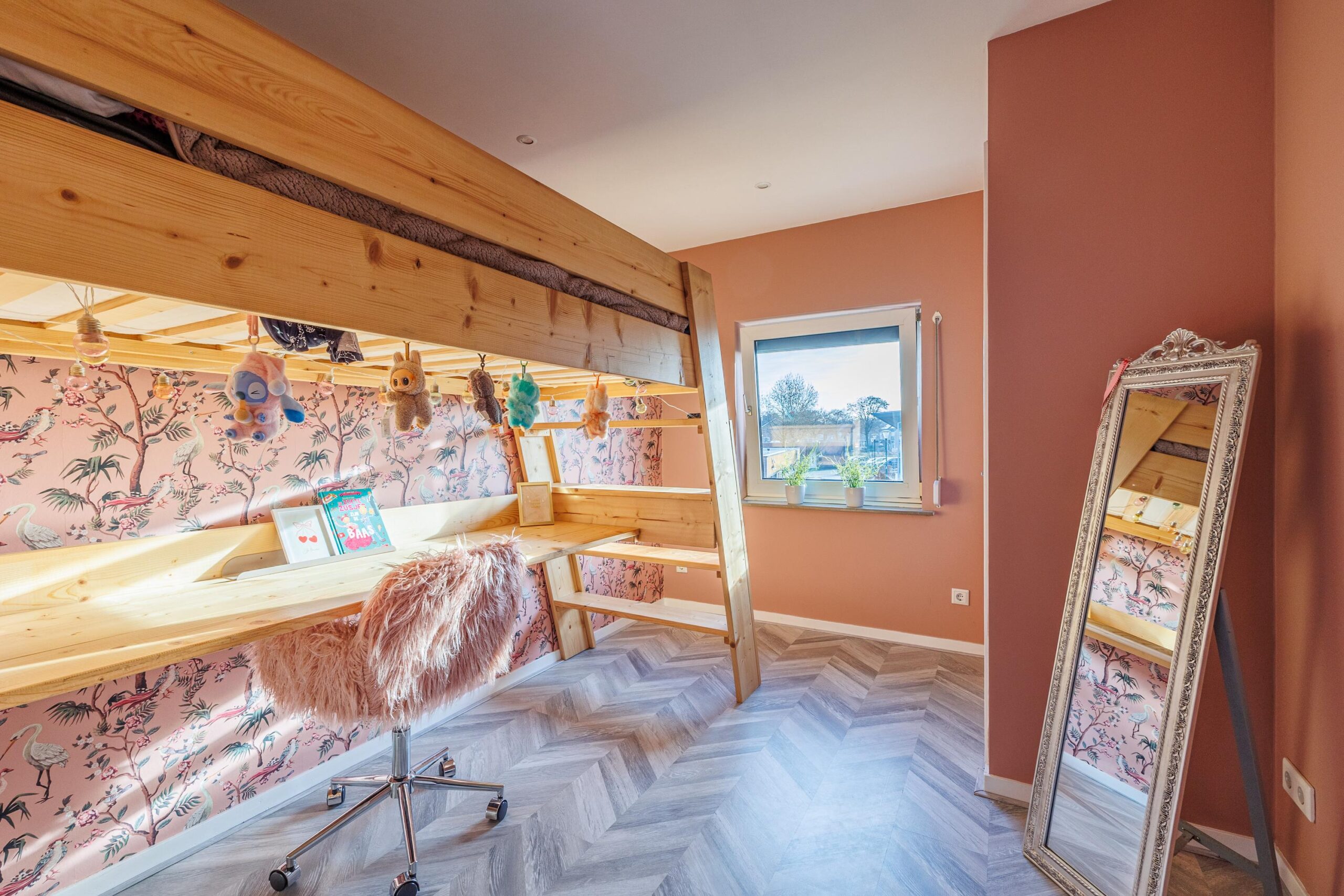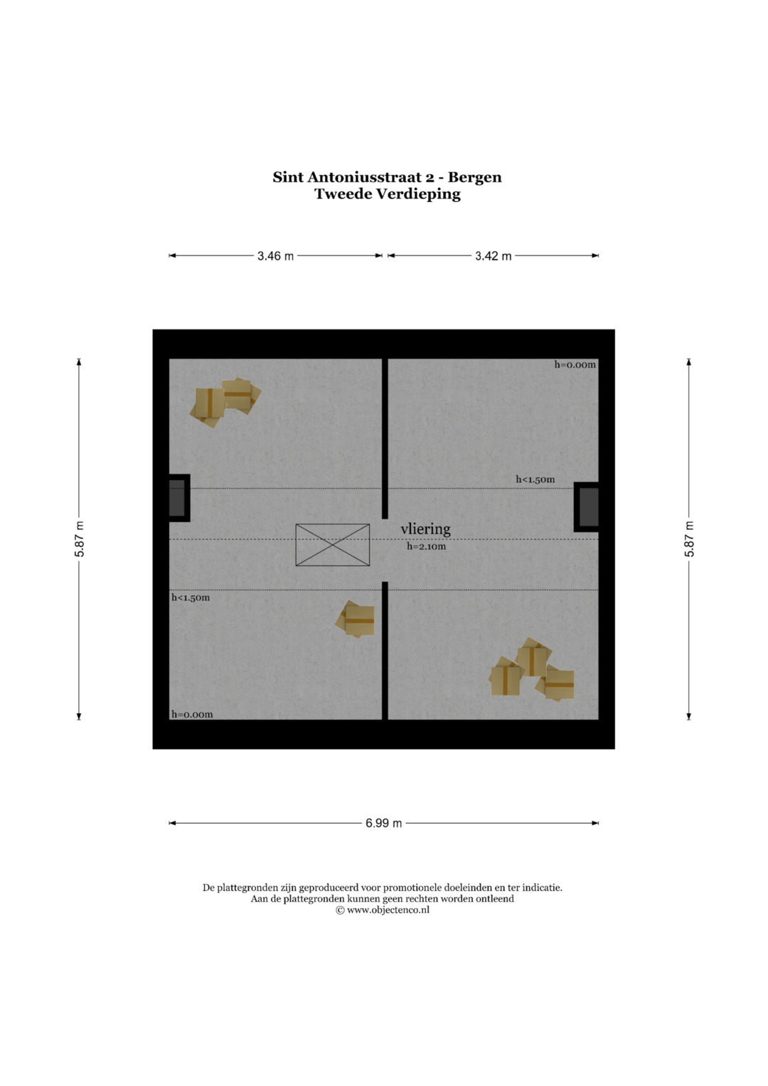 2e verdieping: bereikbaar met vlizotrap. Op de vliering (opslagdoeleinden) zijn de buizen naar de plafondairco's van de slaapkamers geplaatst.