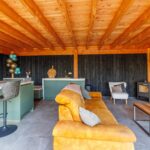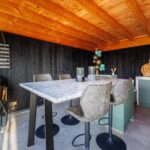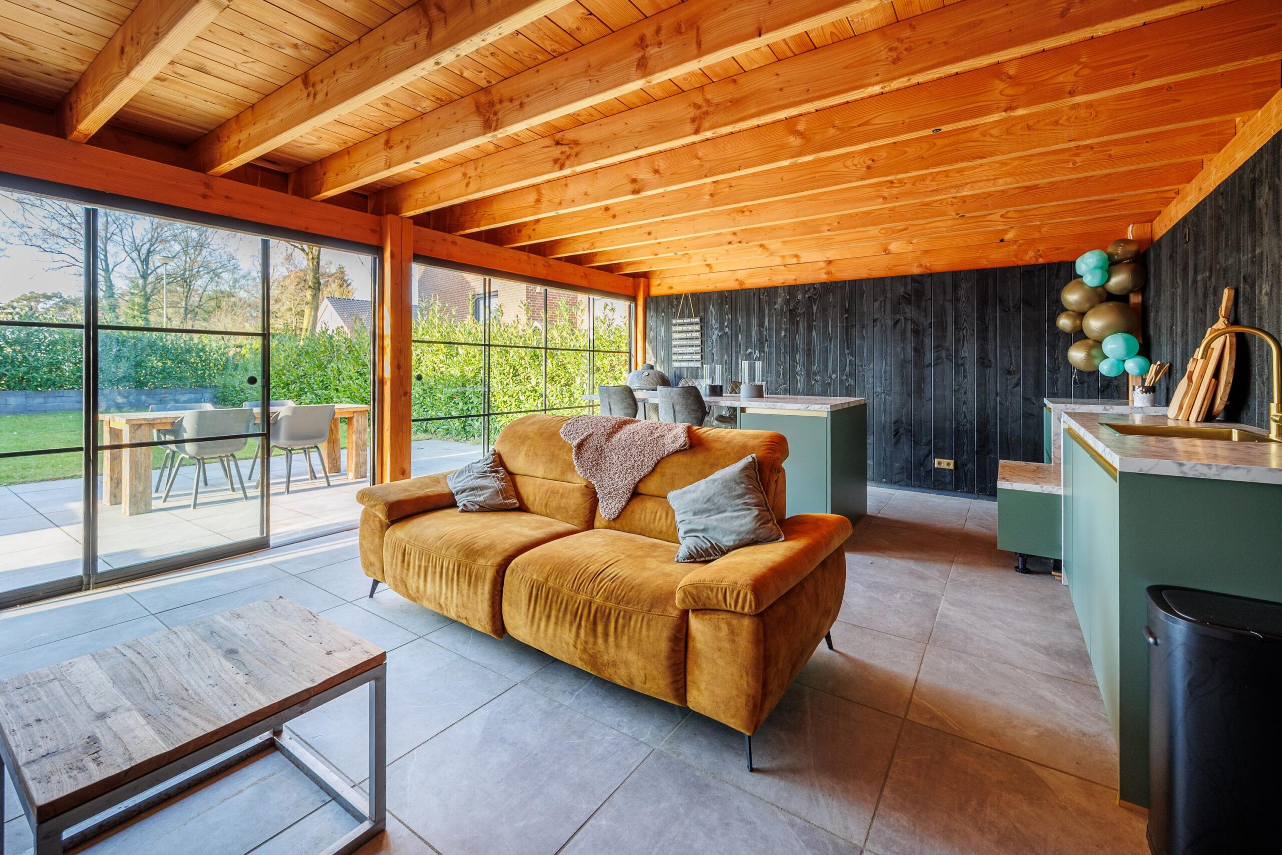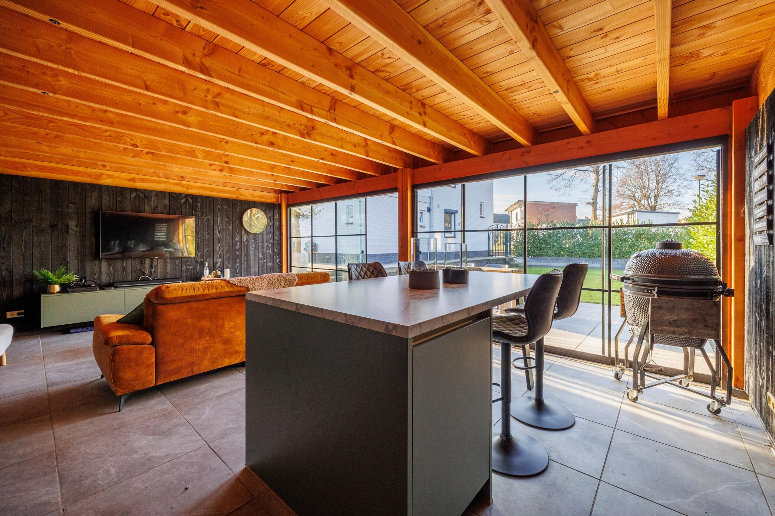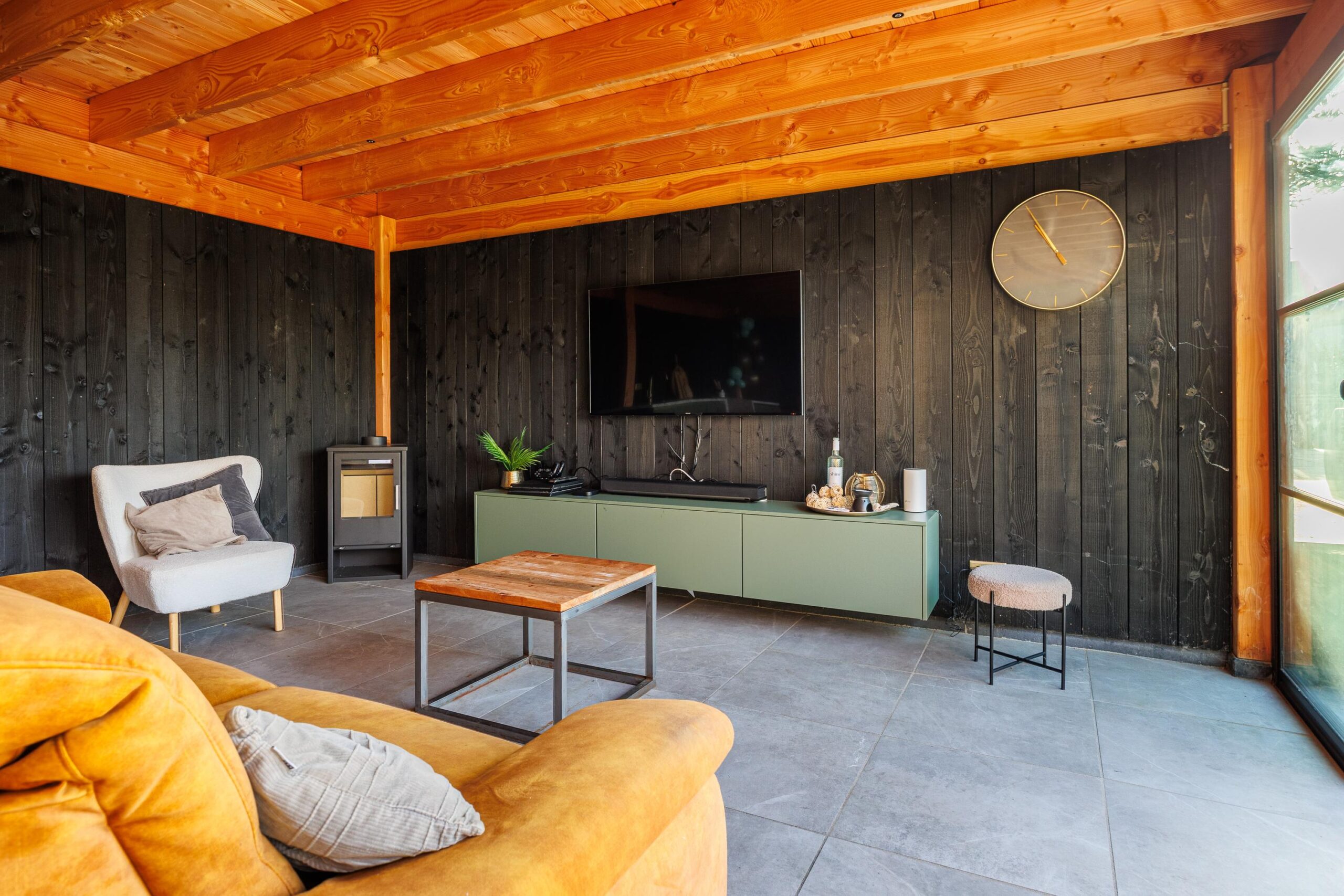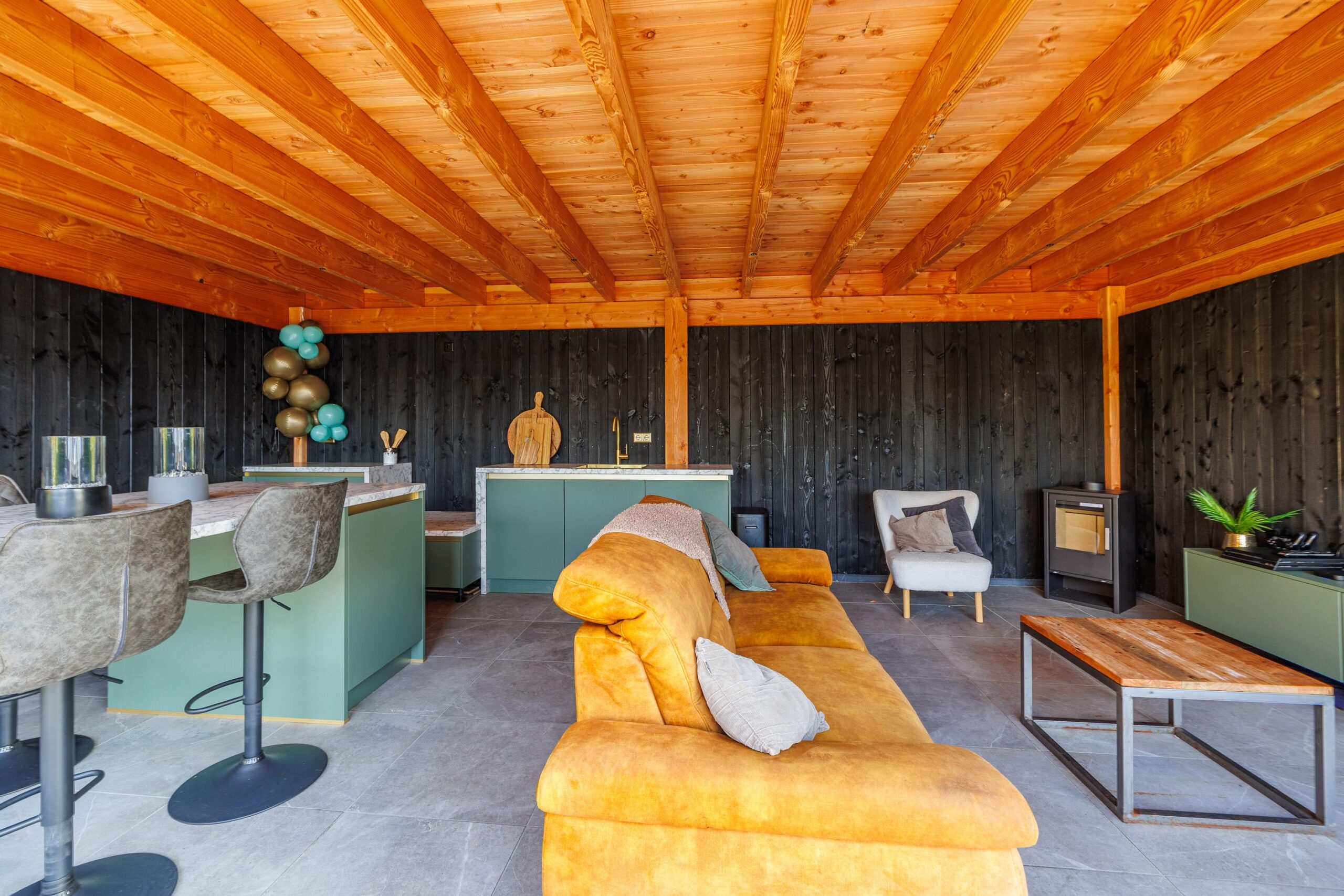 Groot, recentelijk gebouwd buitenverblijf (2024) met o.a. een tweede keuken, haard en tv-aansluiting.
