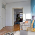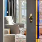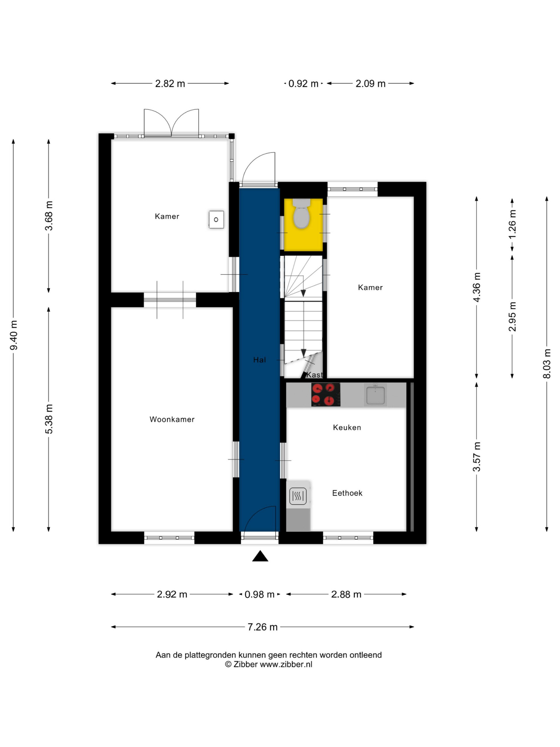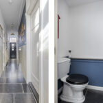 Begane grond: hal met toilet, moderne keuken met inbouwapparatuur, de kamer en suite met een houten vloer en glas-in-lood-schuifdeuren, toegang tot de provisiekelder, opkamer (als 3e slaapkamer te gebruiken).
