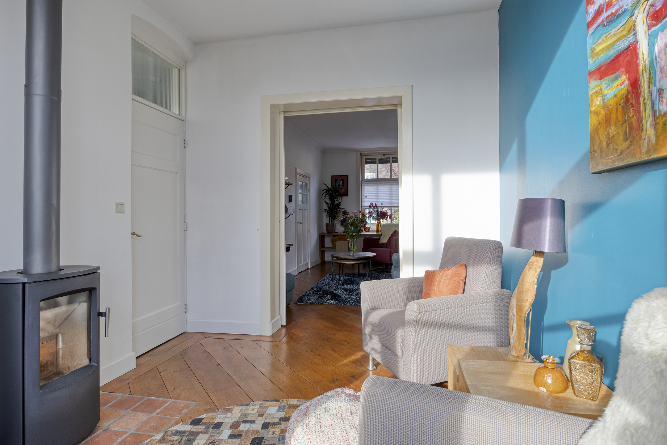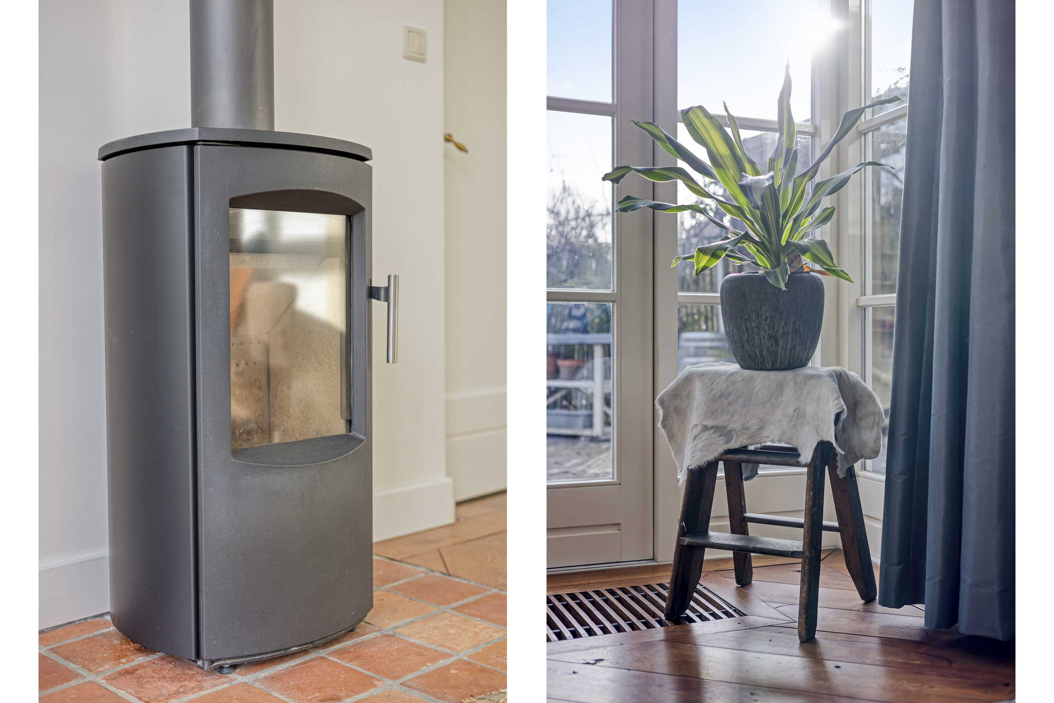 De keuken wordt verwarmd d.m.v. elektrische vloerverwarming. In de sfeervolle woonkamer is in 2014 een houtkachel geplaatst.