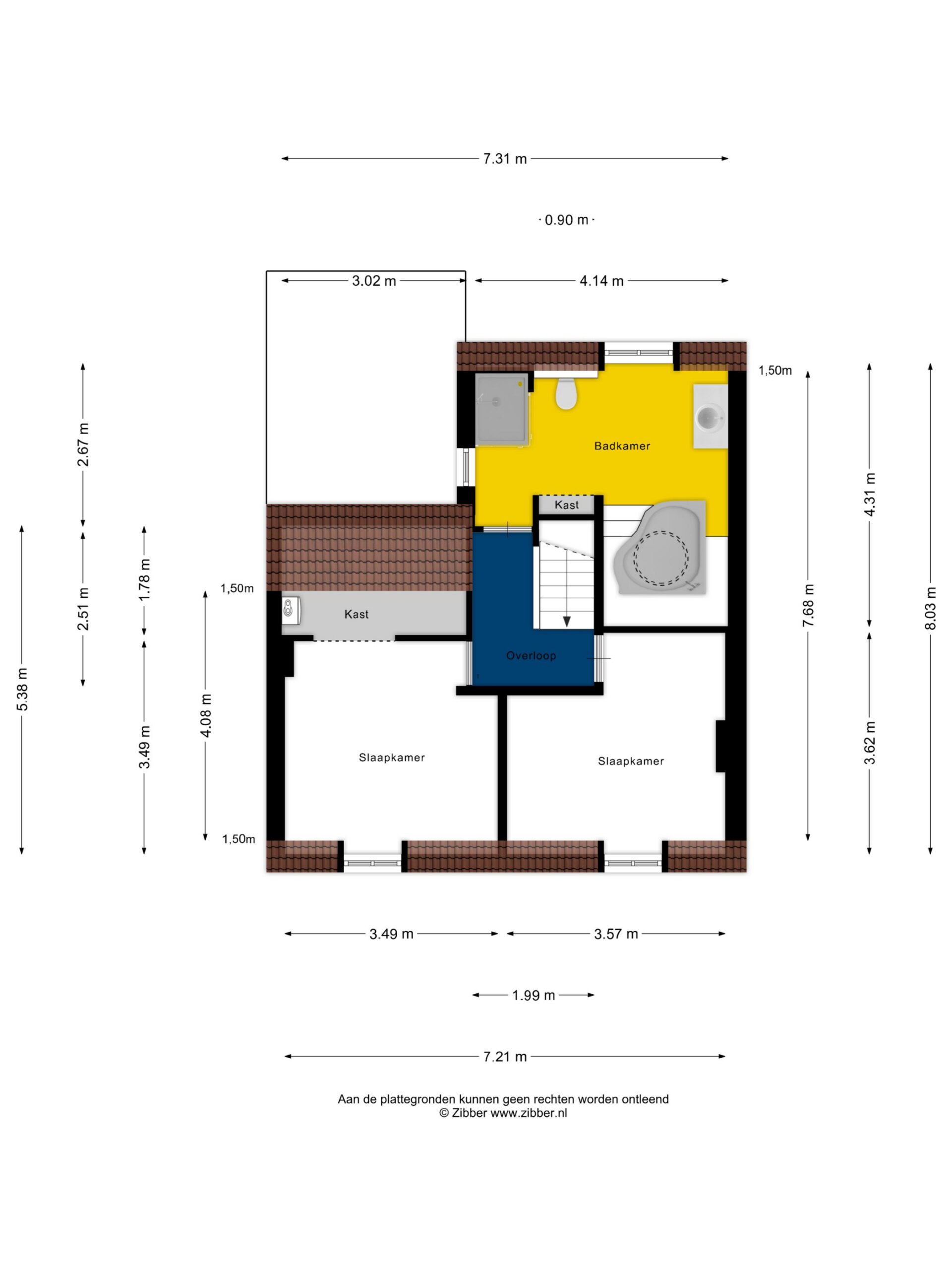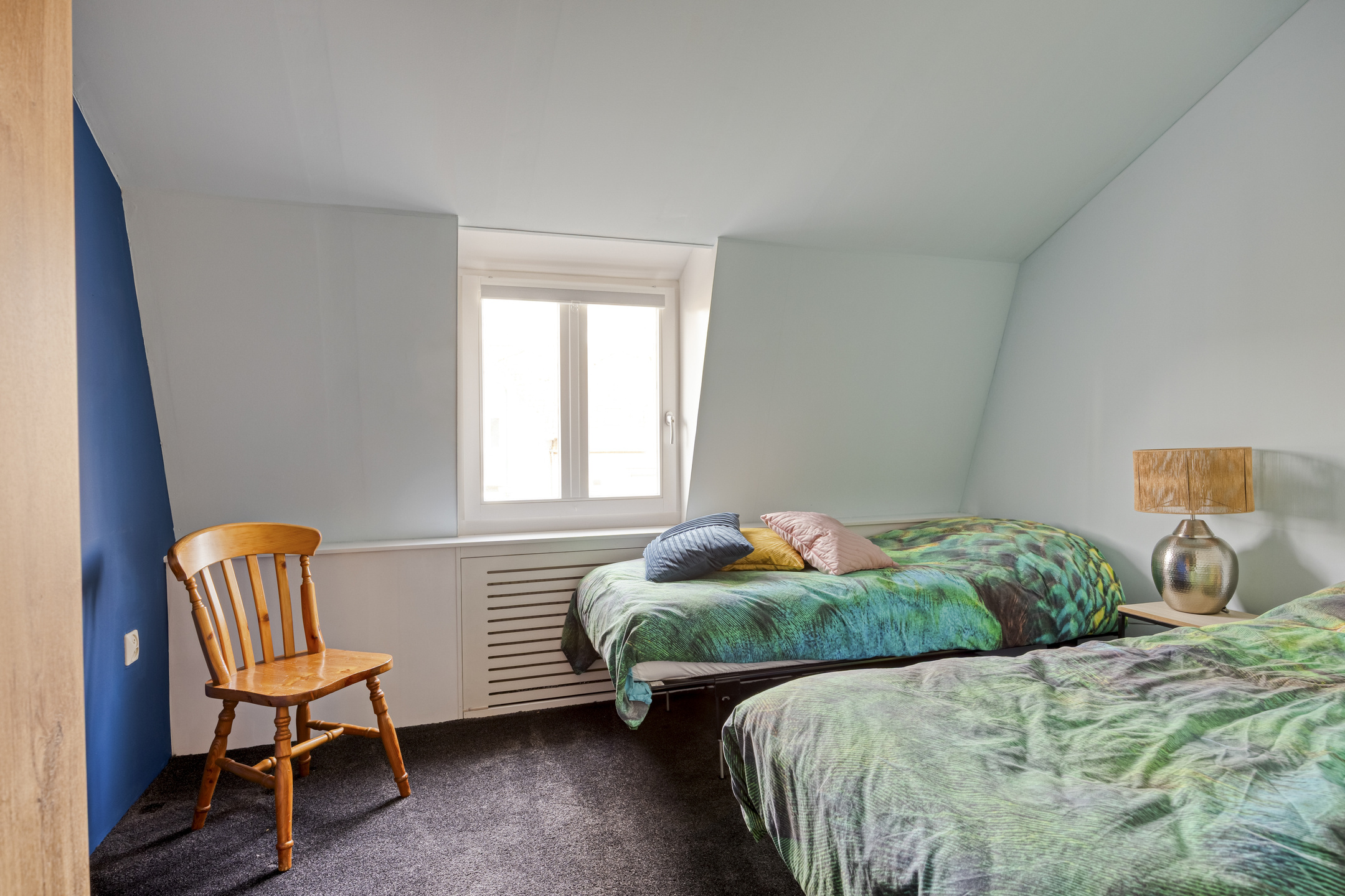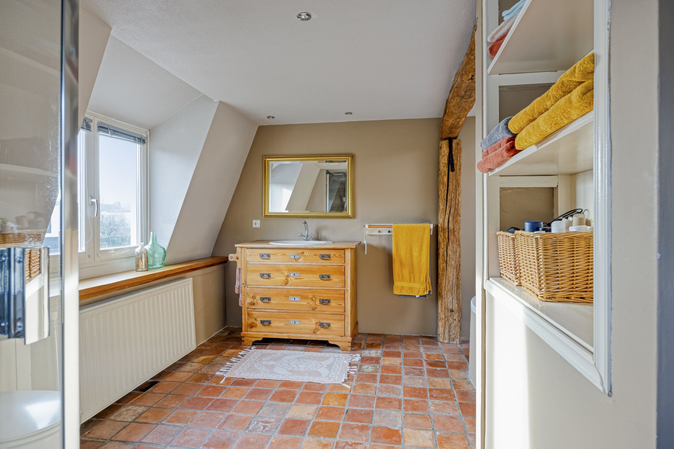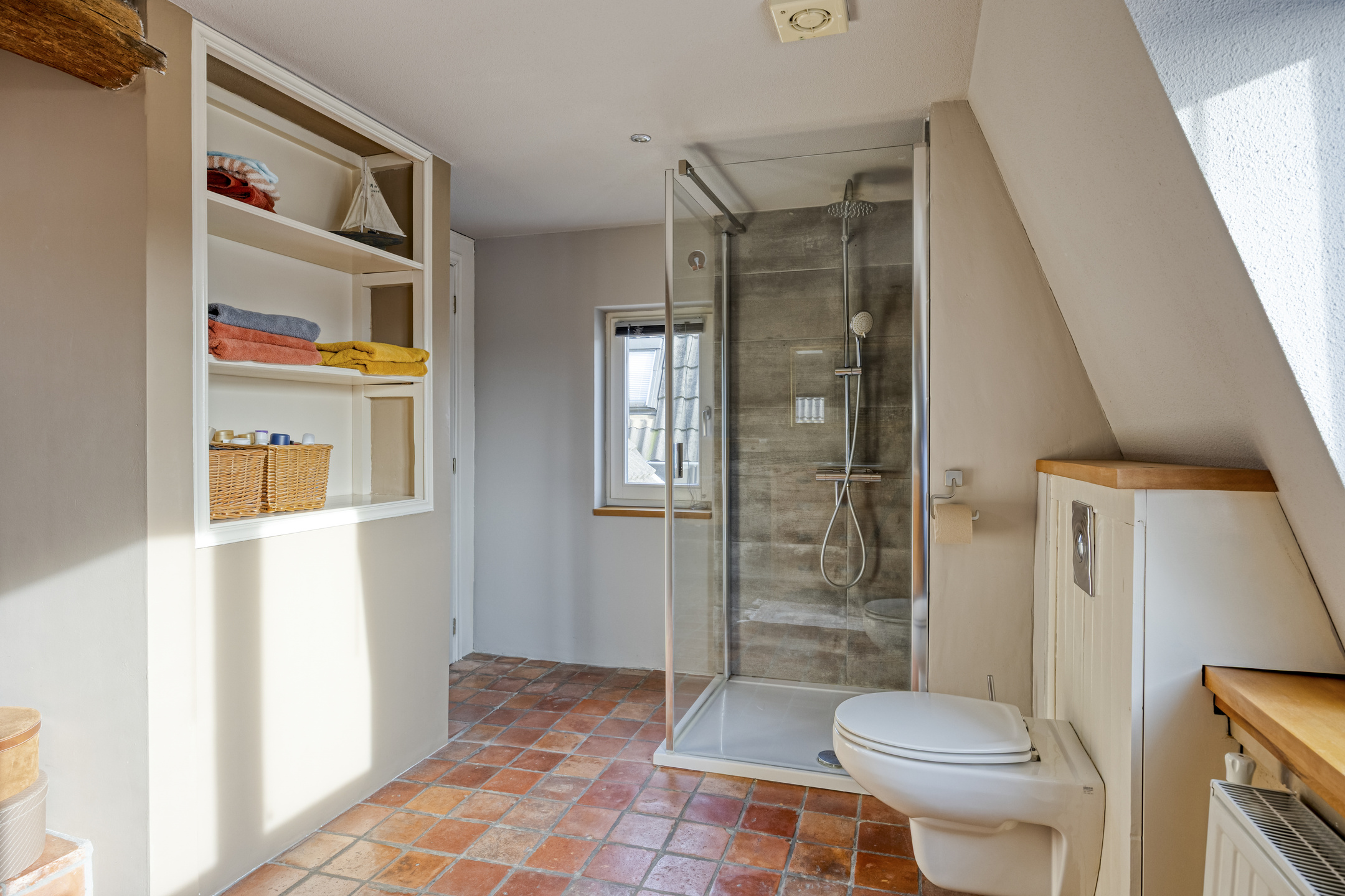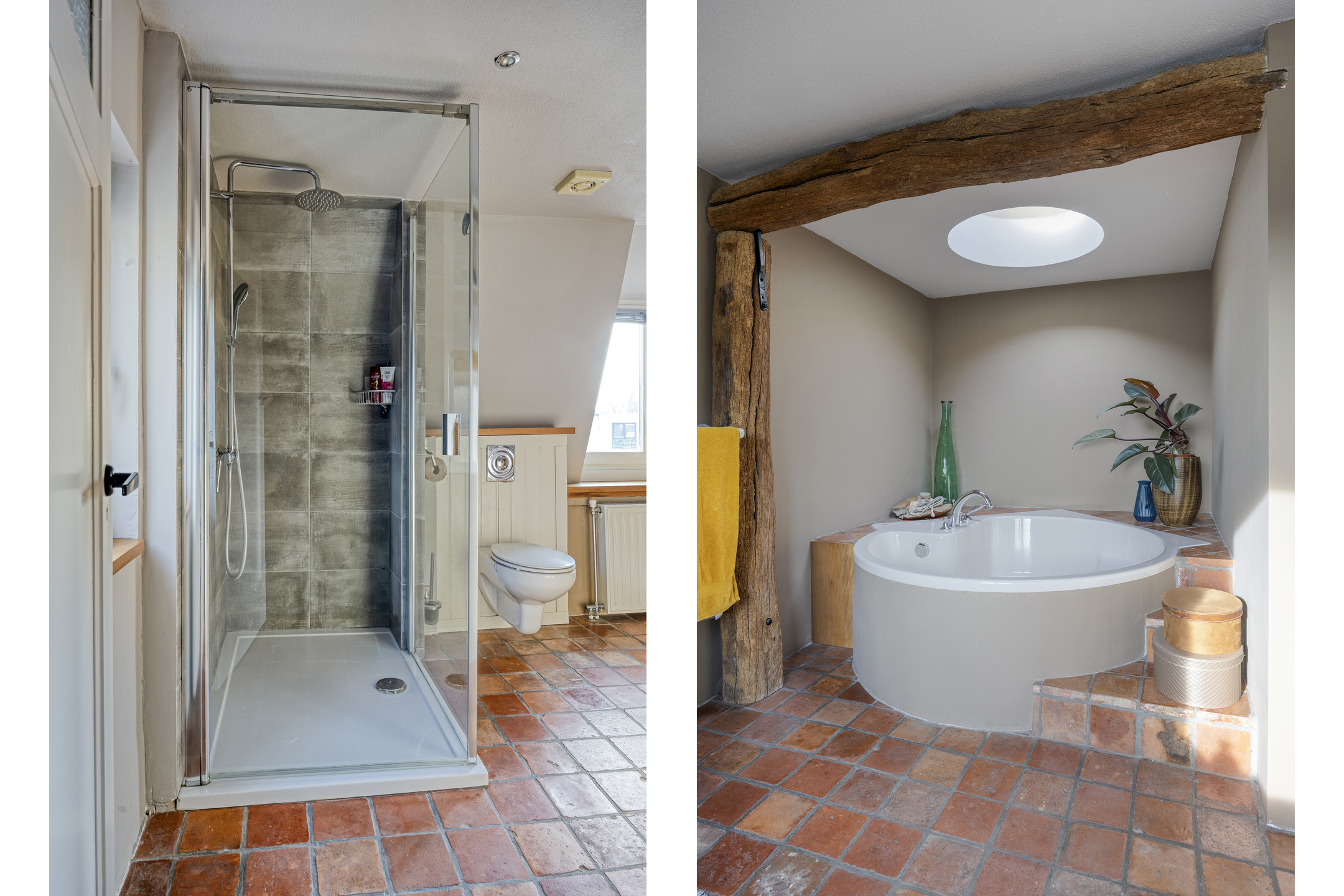 1e verdieping: overloop, 2 slaapkamers, badkamer voorzien van een douche, ligbad, vaste wastafel en 2e toilet.