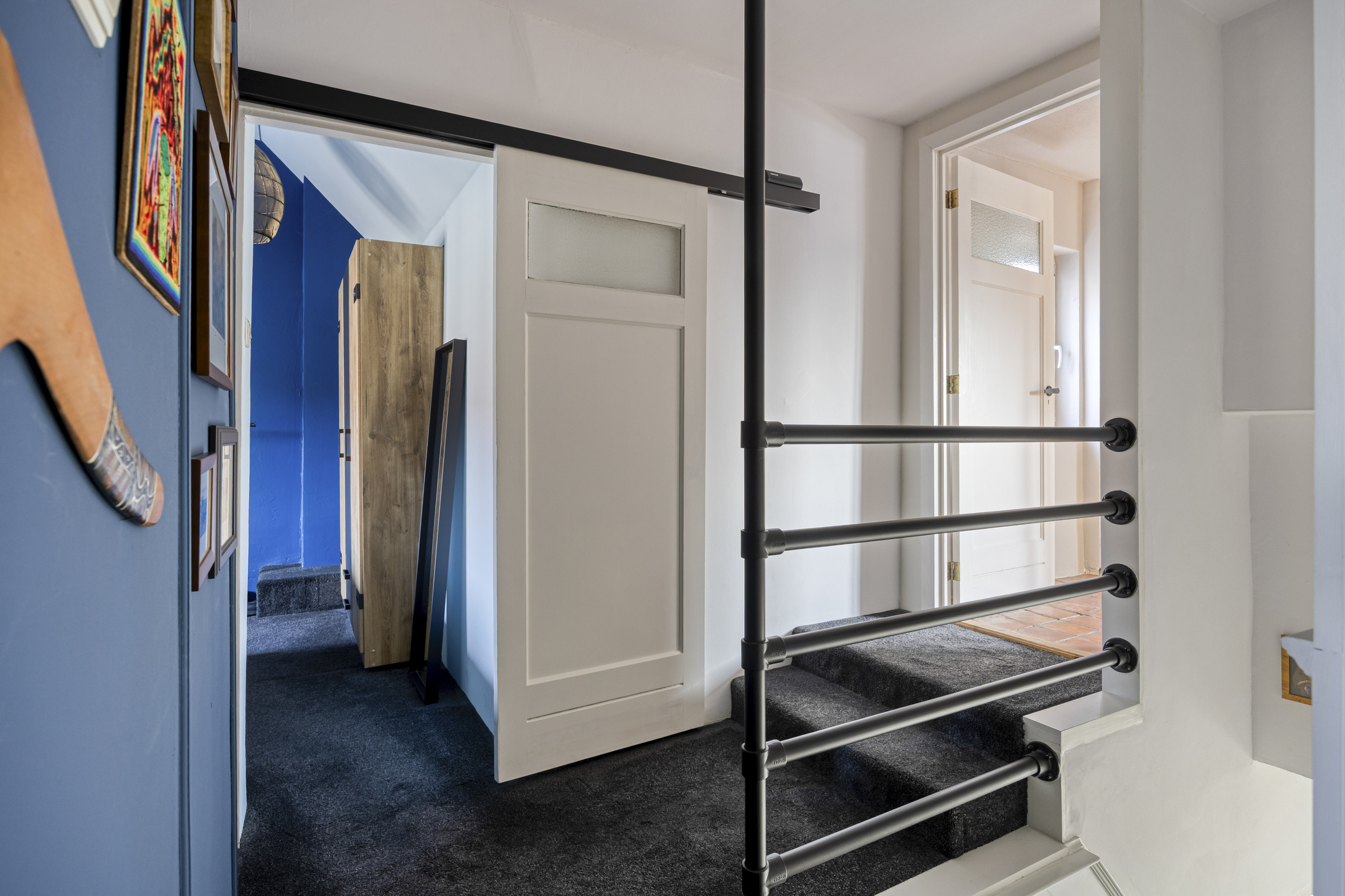 1e verdieping: overloop, 2 slaapkamers, badkamer voorzien…