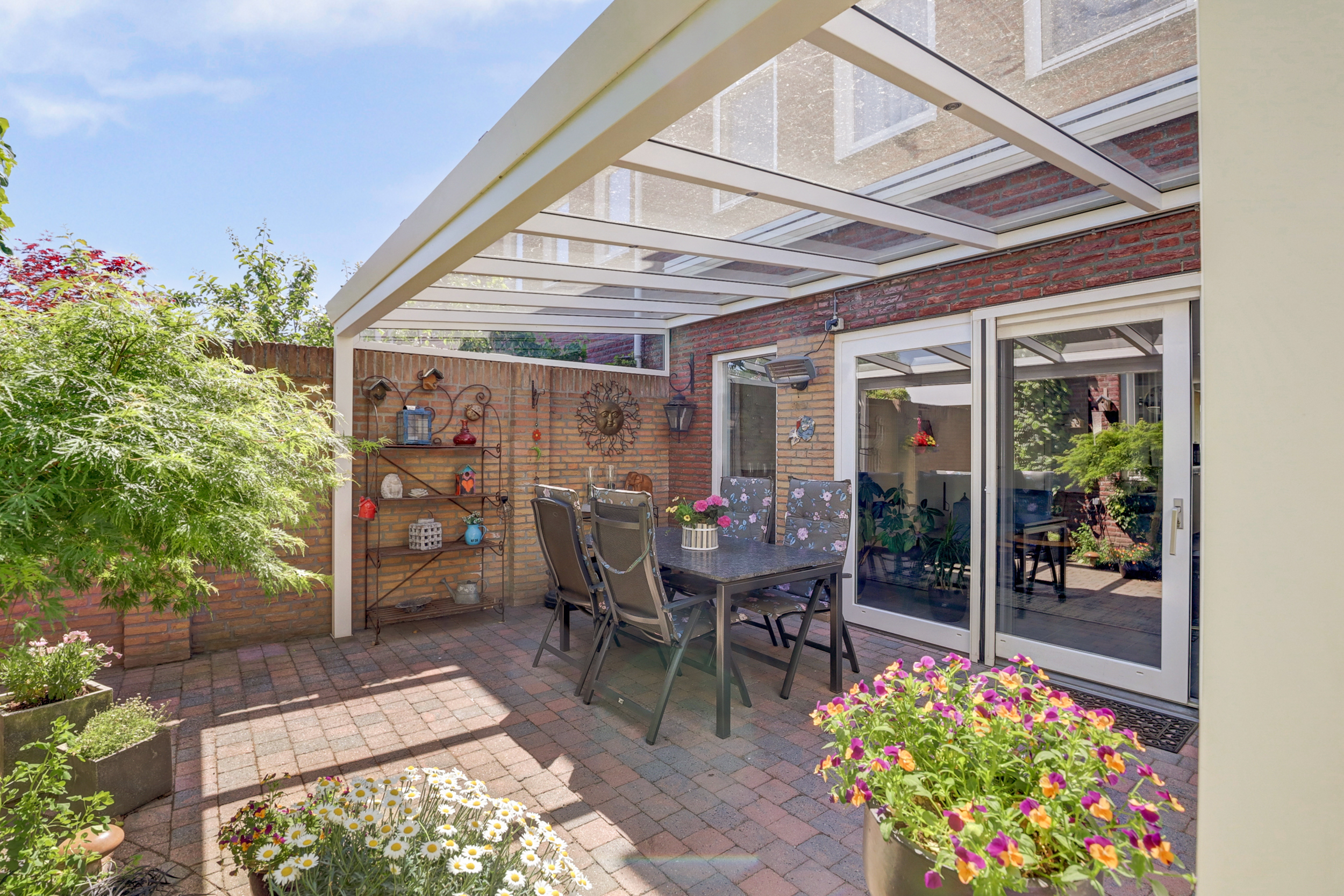 Het gezamenlijke binnenterrein aan de achterzijde is afgesloten middels een elektrische poort. Dit parkeerterrein is voorzien van een eigen carport.