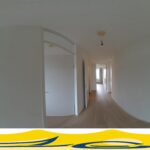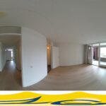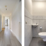 Appartement: hal met meterkast en toilet met fonteintje. Een ruime en lichte woonkamer…