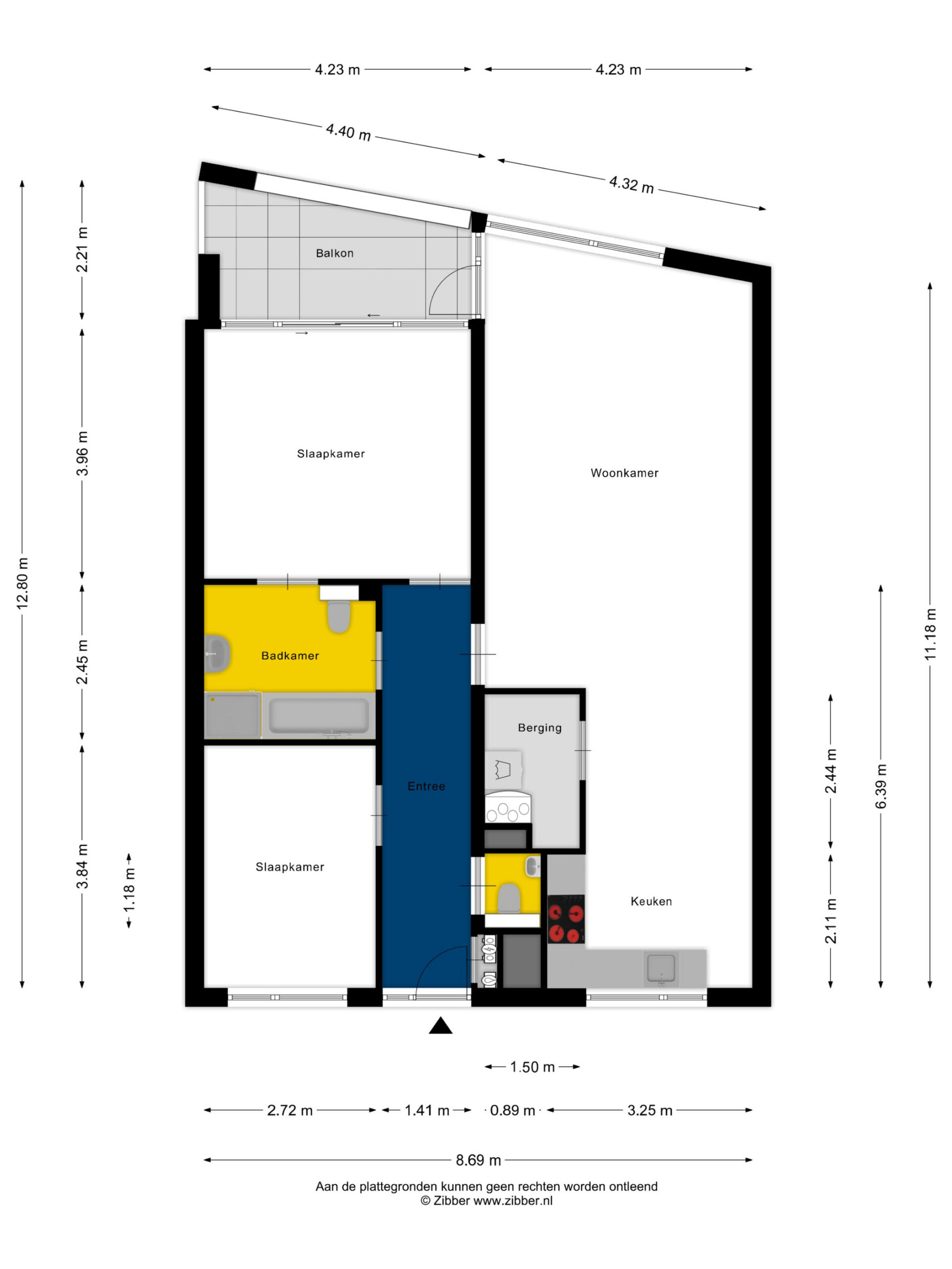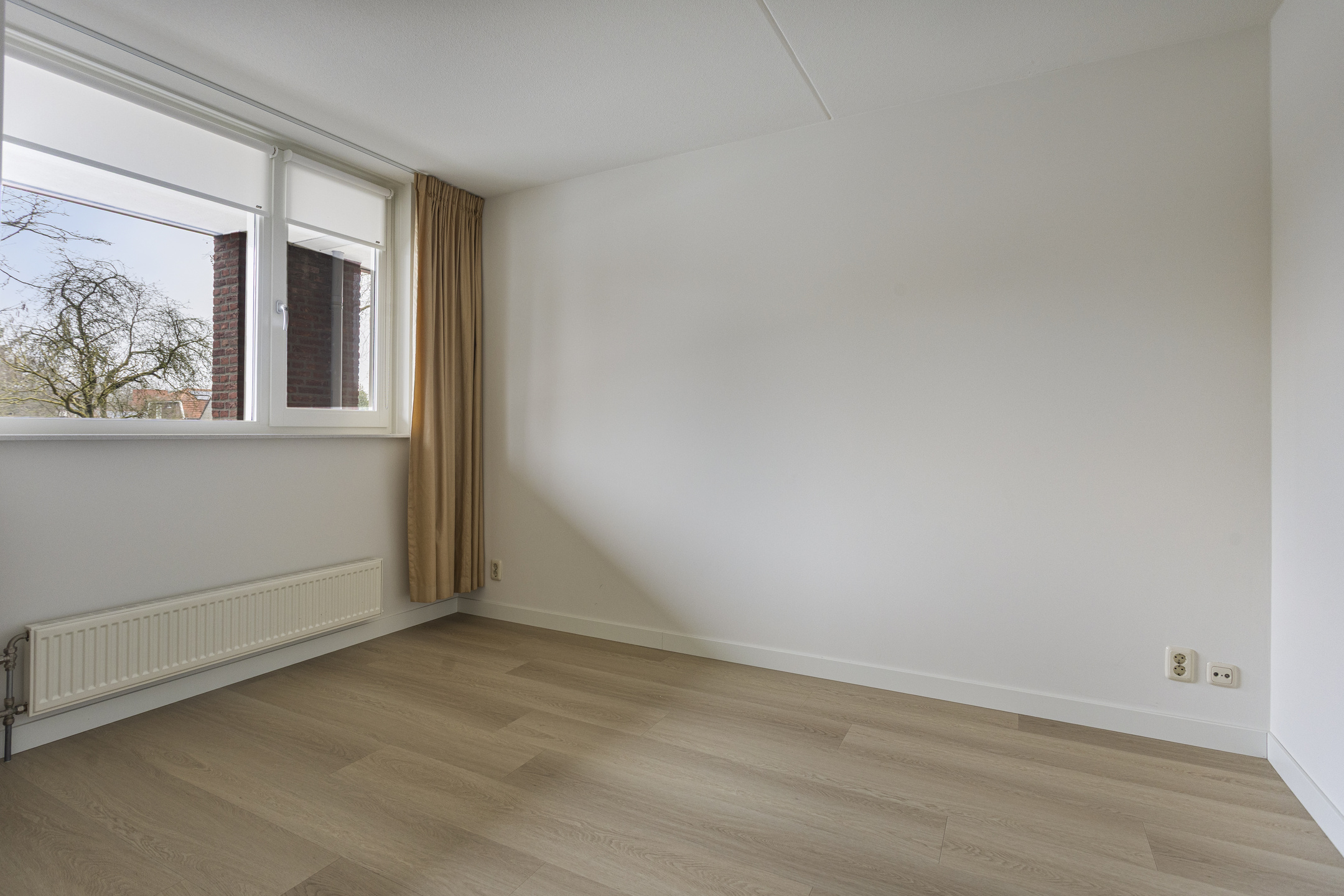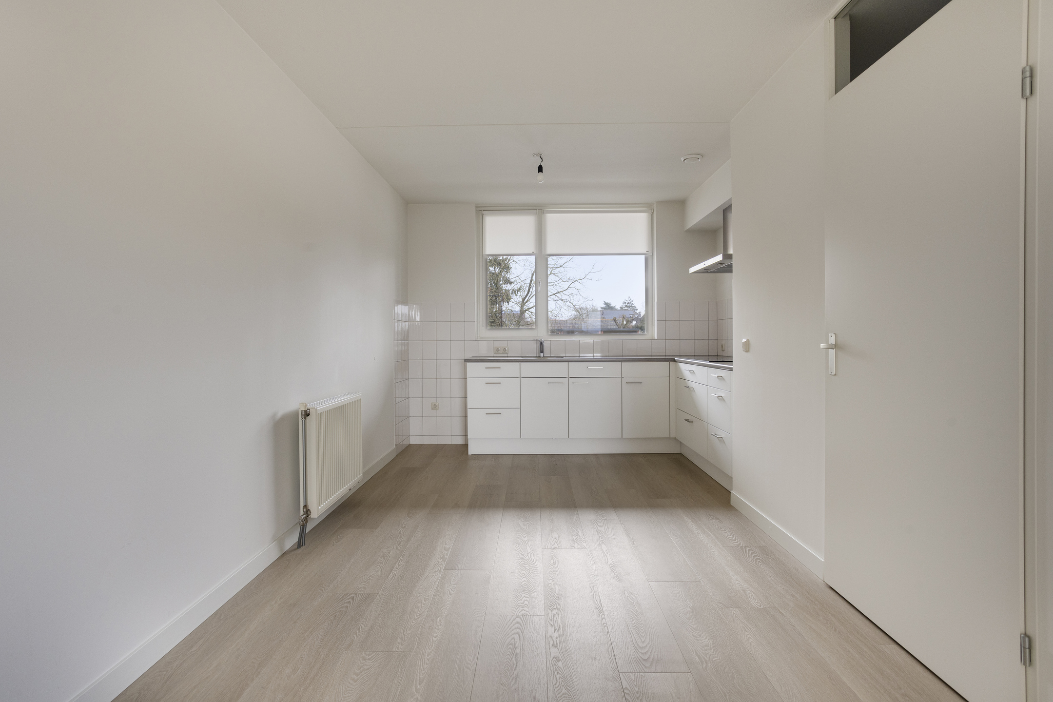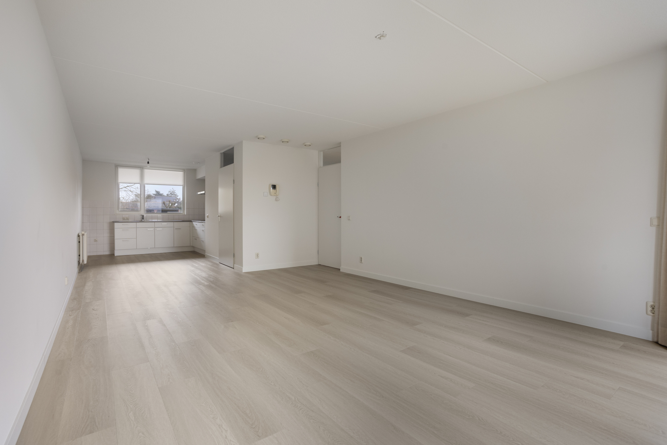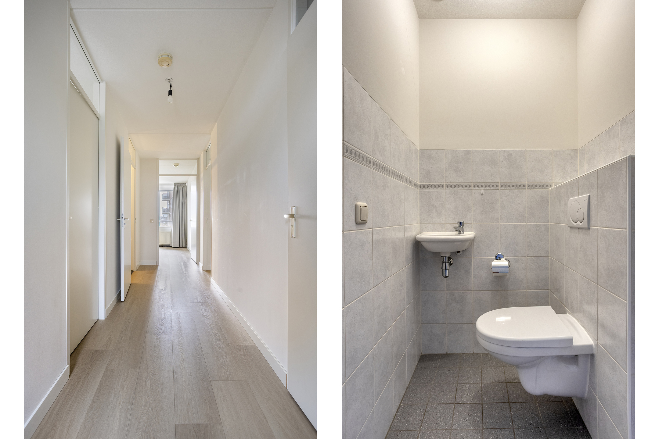 Appartement: hal met meterkast en toilet met fonteintje. Een ruime en lichte woonkamer met een deur naar het balkon. De open hoekkeuken is aan de achterzijde gesitueerd, provisieberging met de opstelling van de cv-ketel en de aansluitingen t.b.v. het witgoed en de WTW-unit. Badkamer voorzien van een wastafel, ligbad, douche en toilet. Twee ruime slaapkamers, waarvan er 1 middels een schuifpui toegang heeft tot het balkon.