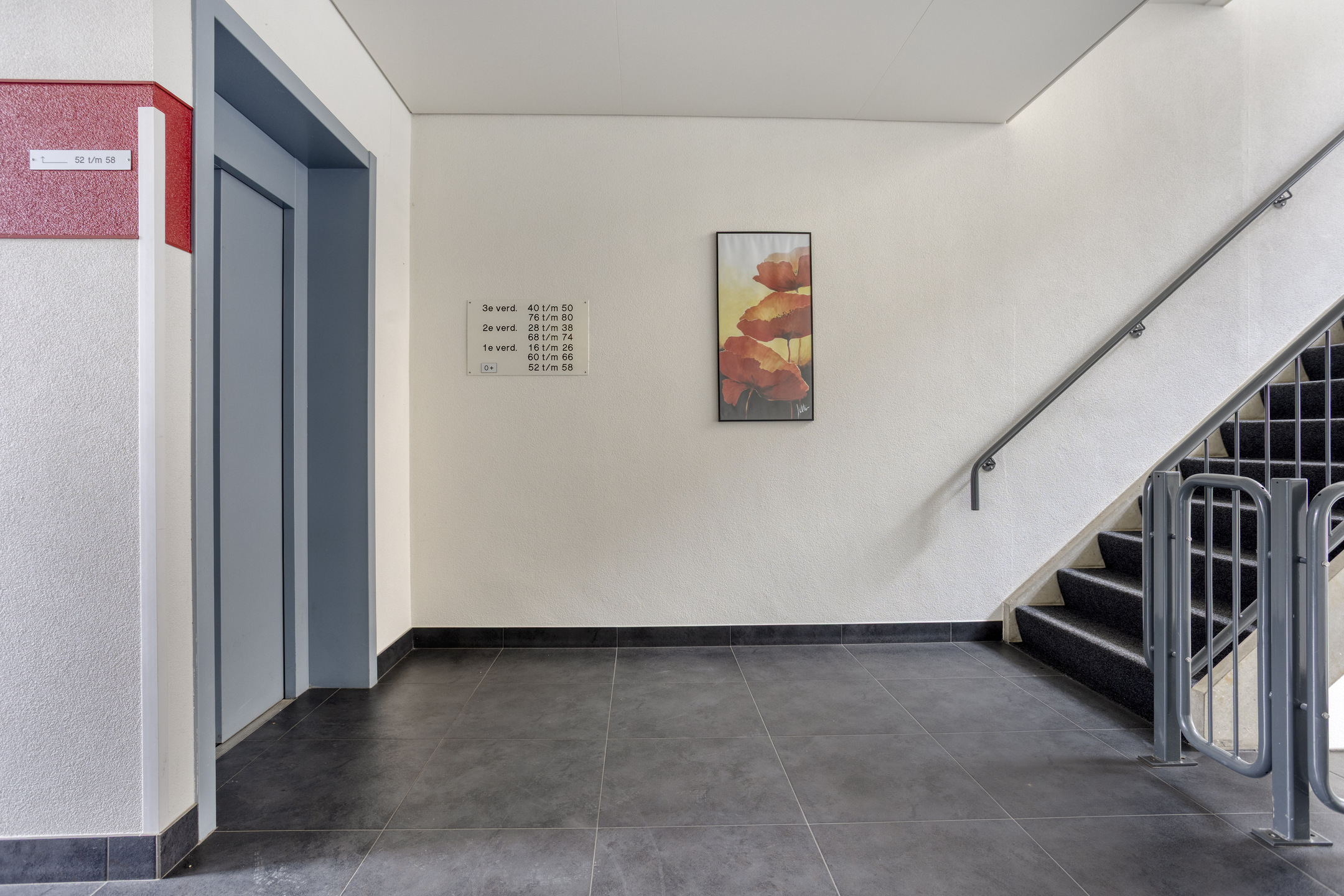 Begane grond: een zeer nette gezamenlijke entree met videofooninstallatie, elektrische deuropener, lift, trappenhuis en brievenbussen.