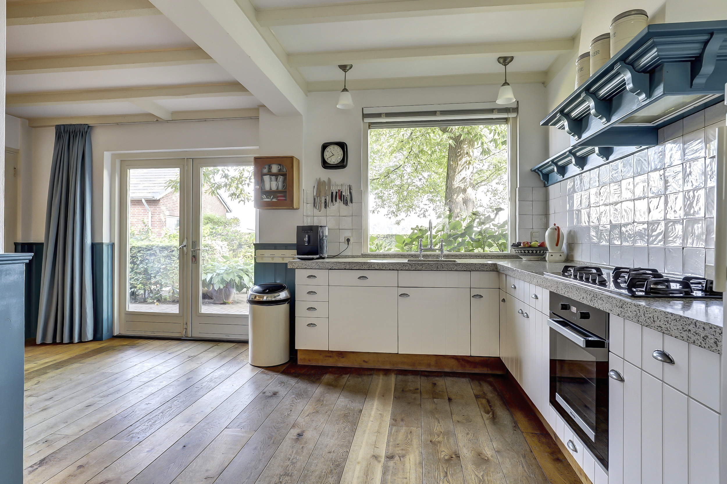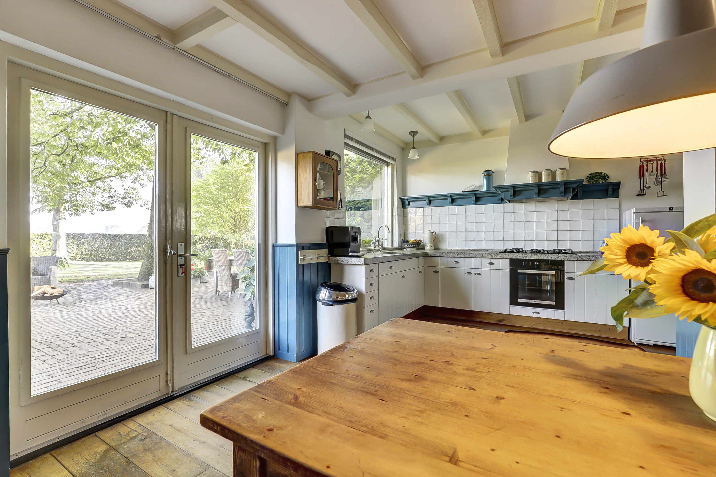 Een zeer compleet ingerichte keuken met o.a. een 5-pits gaskookplaat, afzuigkap, vaatwasser (2025) en oven (2025).