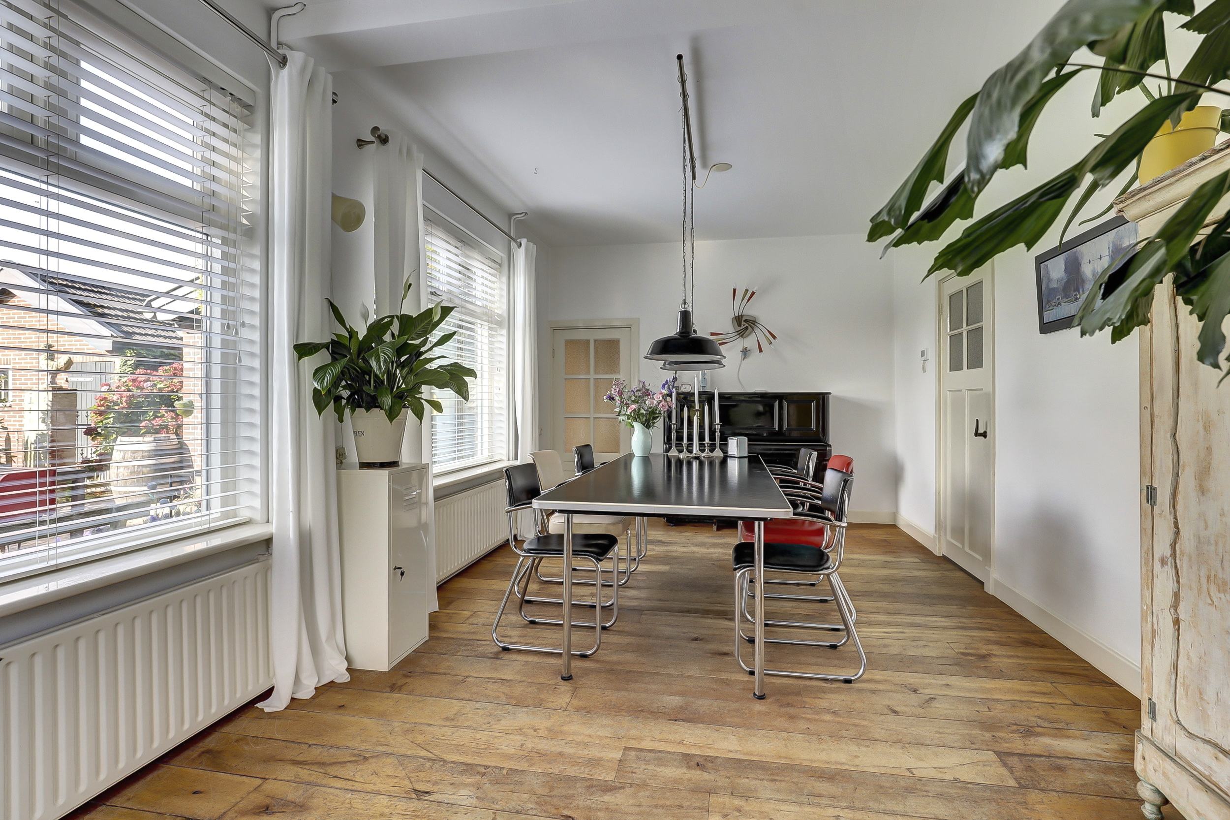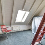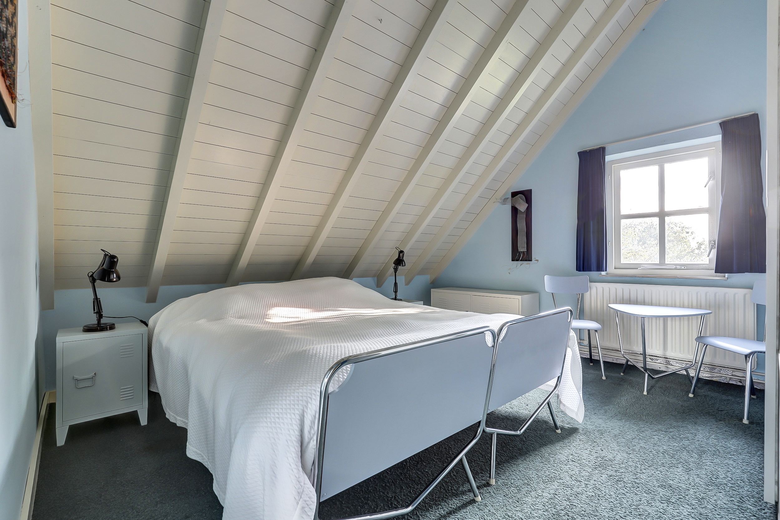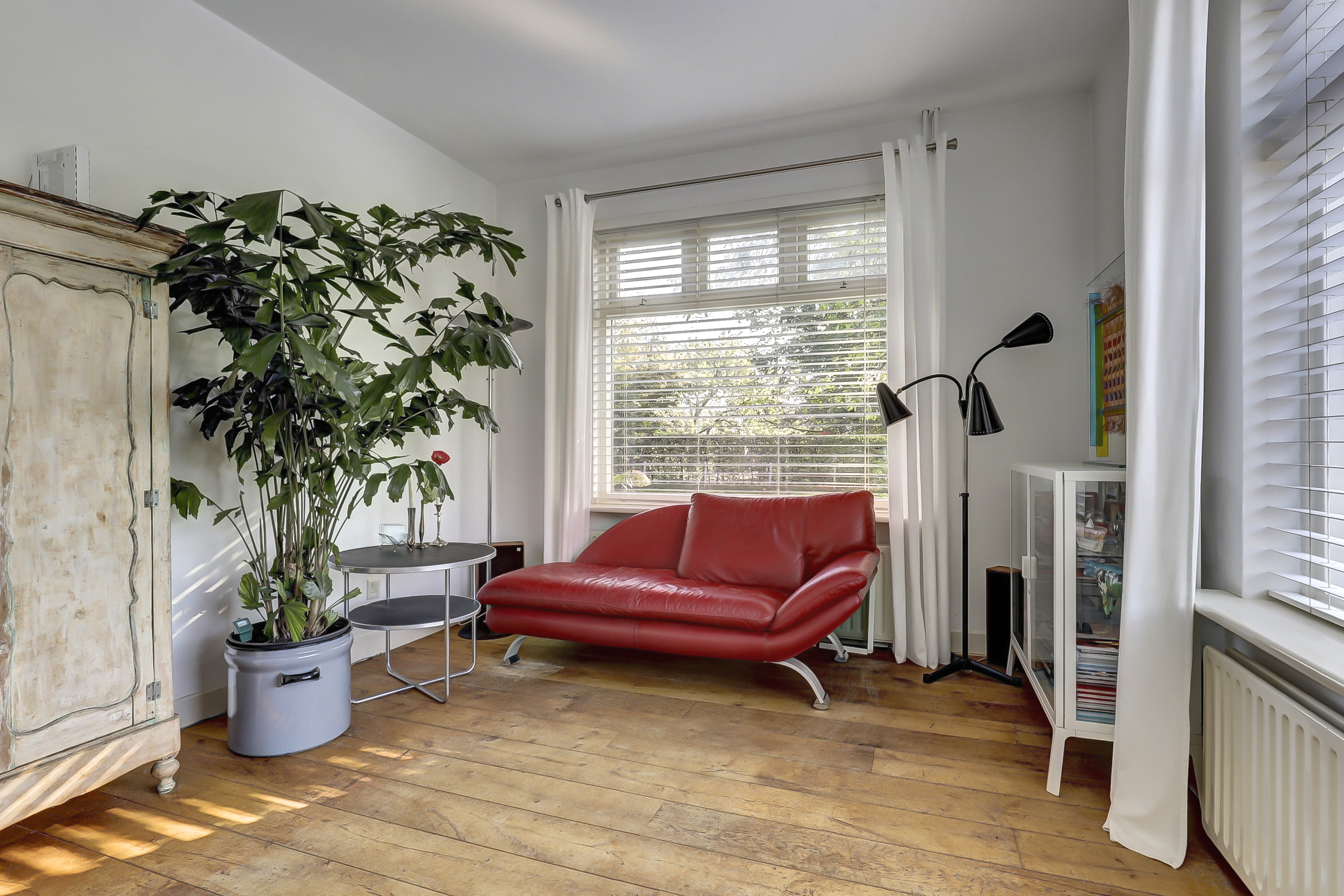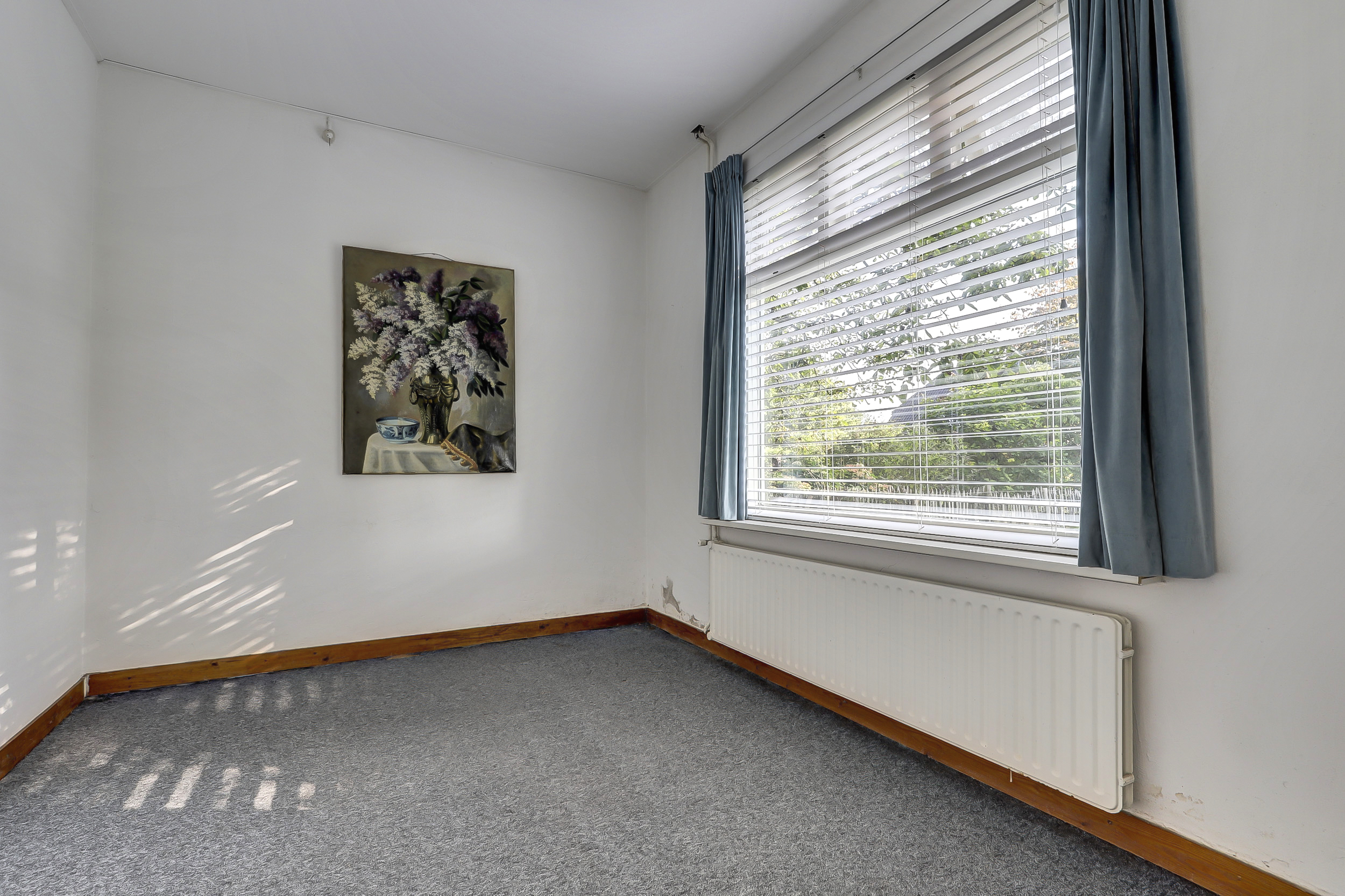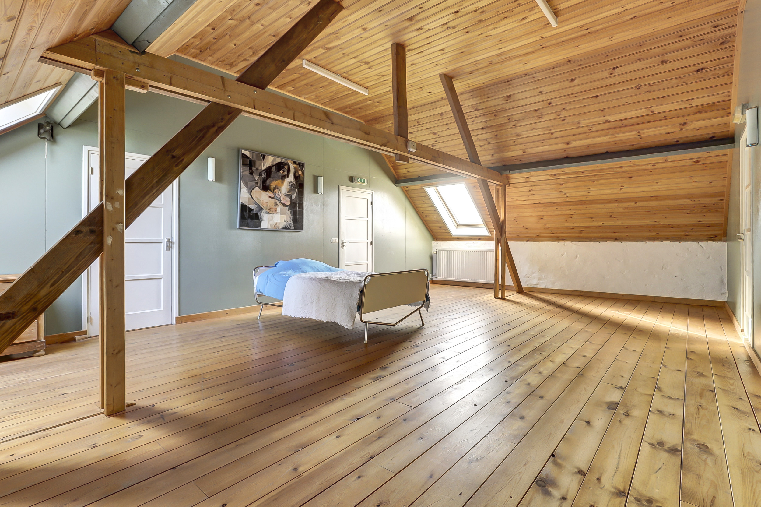 1e verdieping: overloop met cv-kast, 2 ruim bemeten slaapkamers aan de voorzijde en een 3e slaapkamer met een slaapvide. De ruime badkamer is voorzien van ligbad, toilet, douche en dubbele wastafel. Een overloop met royale master-bedroom voorzien van 2 dakramen en bergkast en met toegang tot de bergzolder en toegang tot de hobbykamer/ berging aan de achterzijde.
