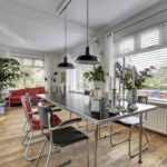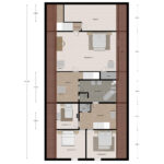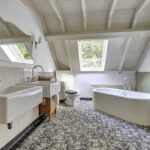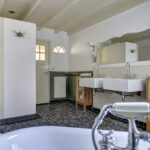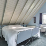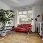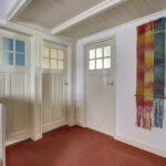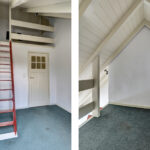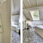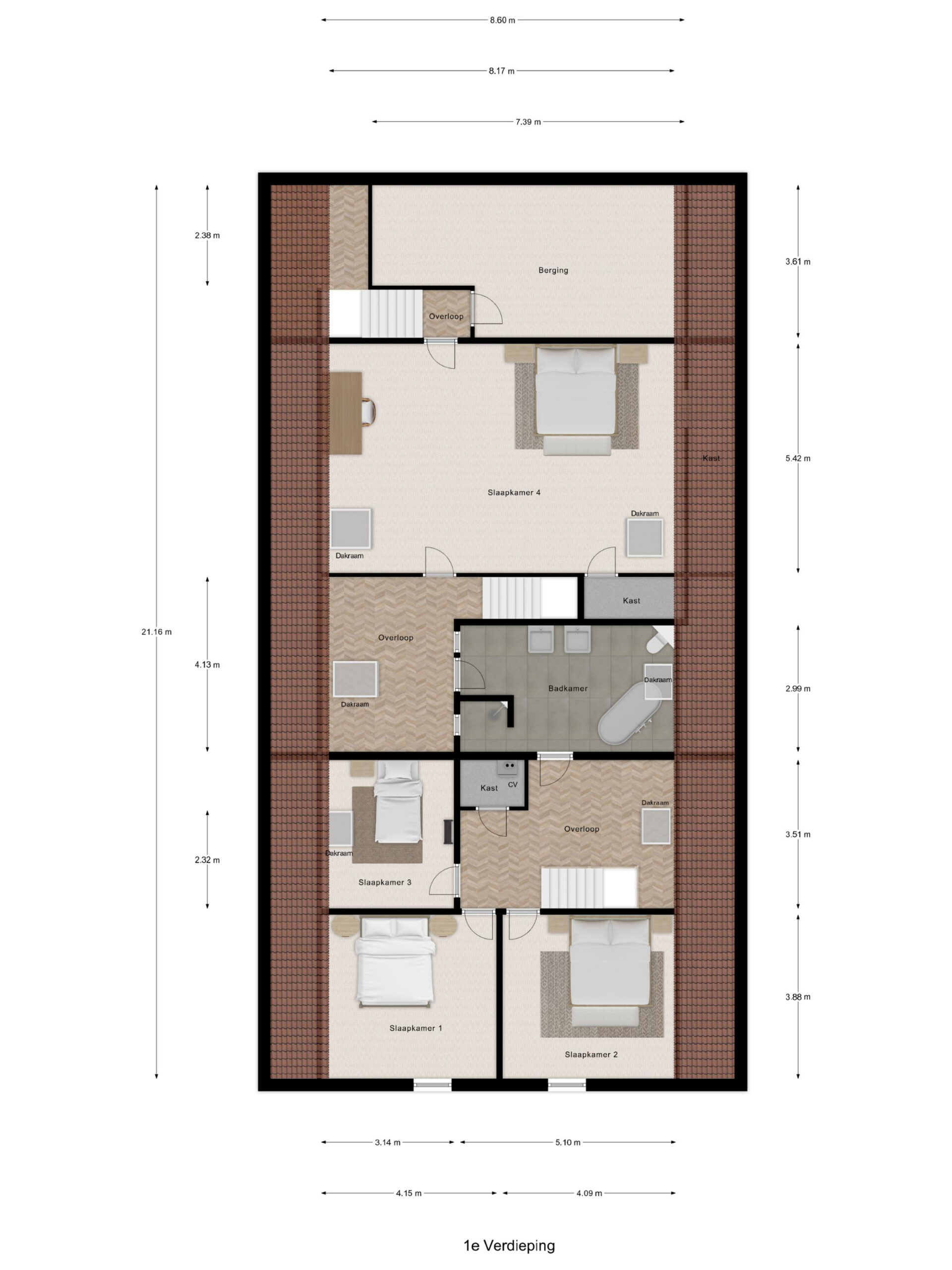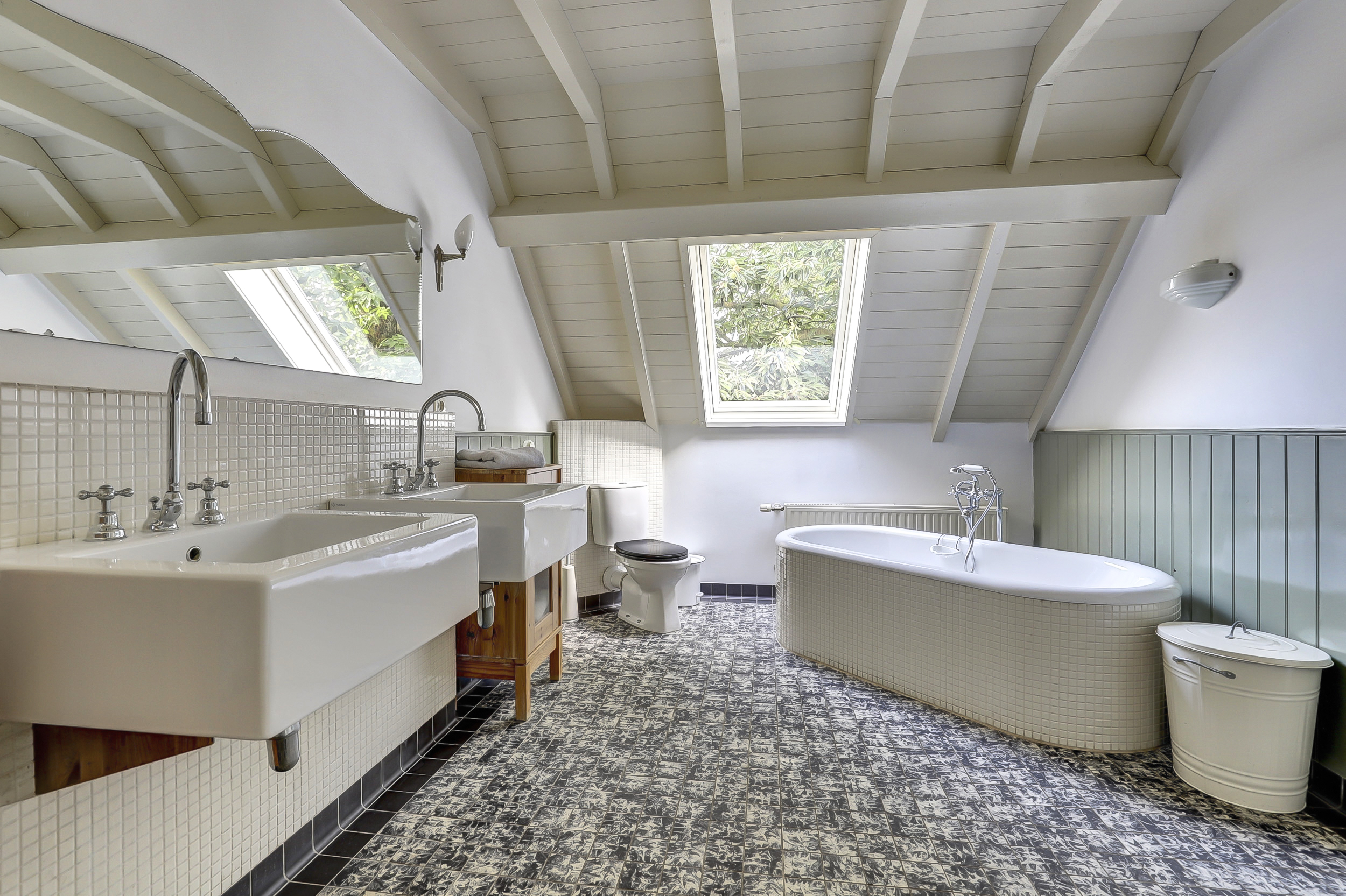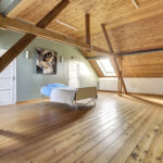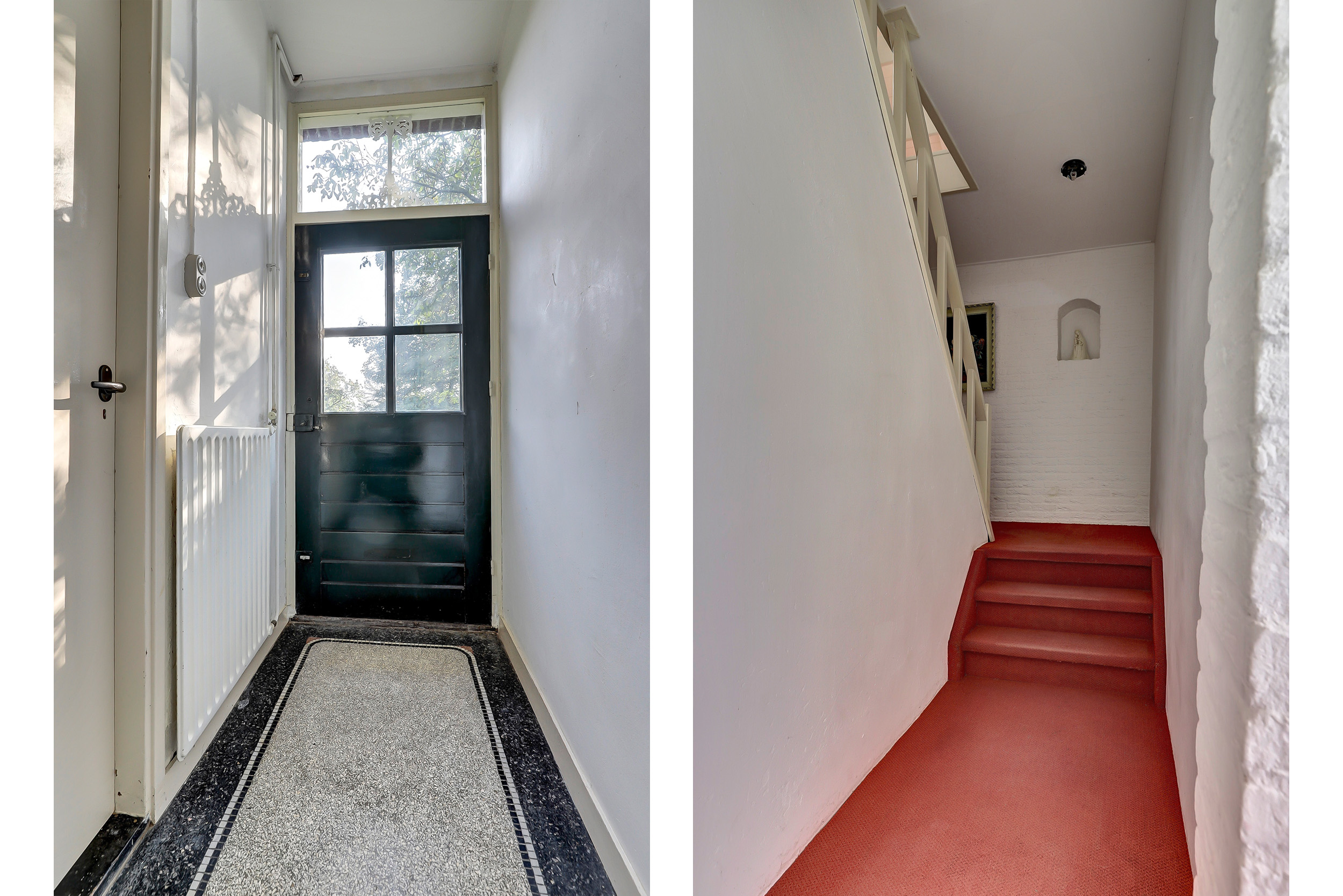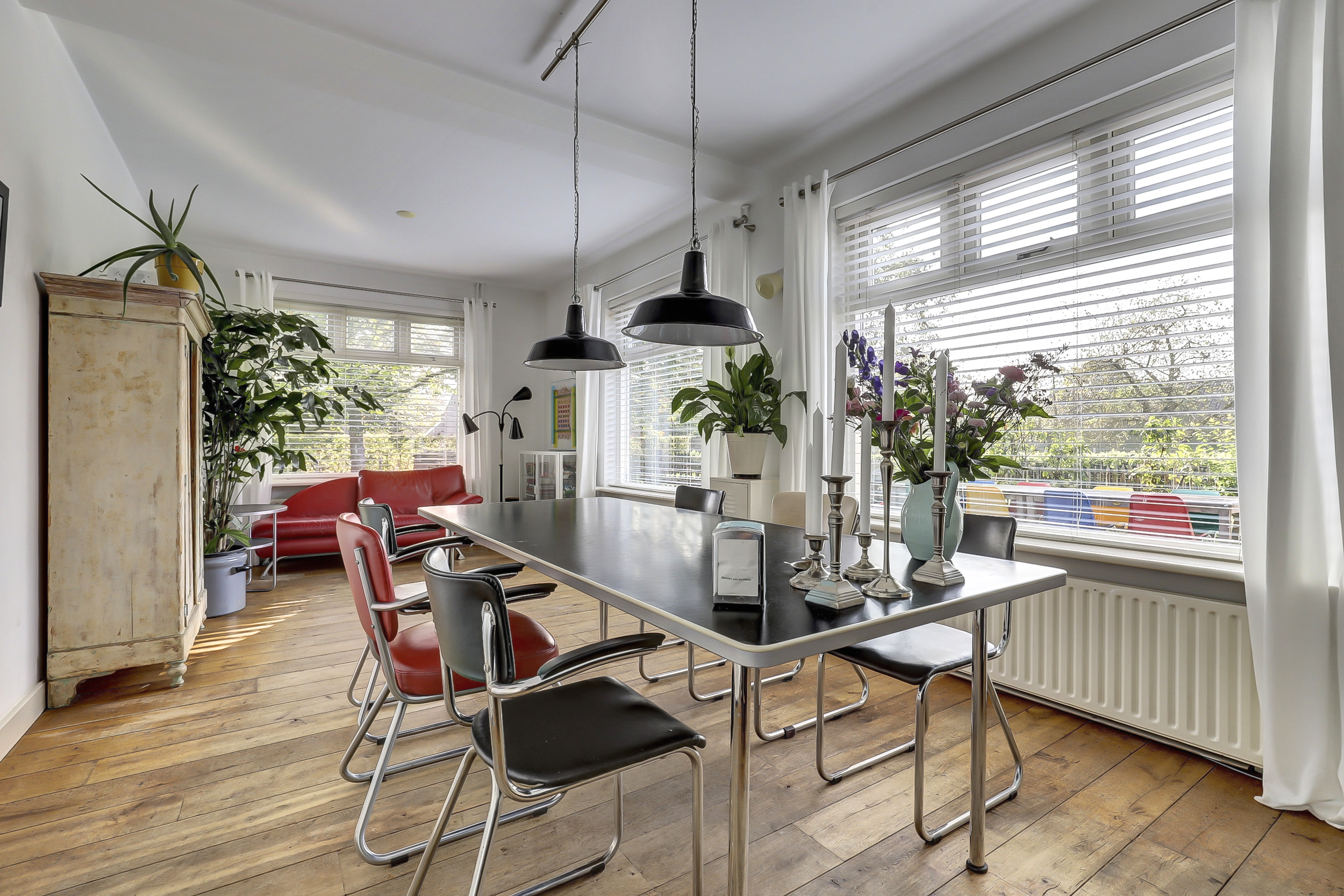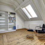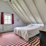 1e verdieping: overloop met cv-kast, 2 ruim bemeten slaapkamers aan de voorzijde en een 3e slaapkamer met een slaapvide. De ruime badkamer is voorzien van ligbad, toilet, douche en dubbele wastafel. Een overloop met royale master-bedroom voorzien van 2 dakramen en bergkast en met toegang tot de bergzolder en toegang tot de hobbykamer/ berging aan de achterzijde.