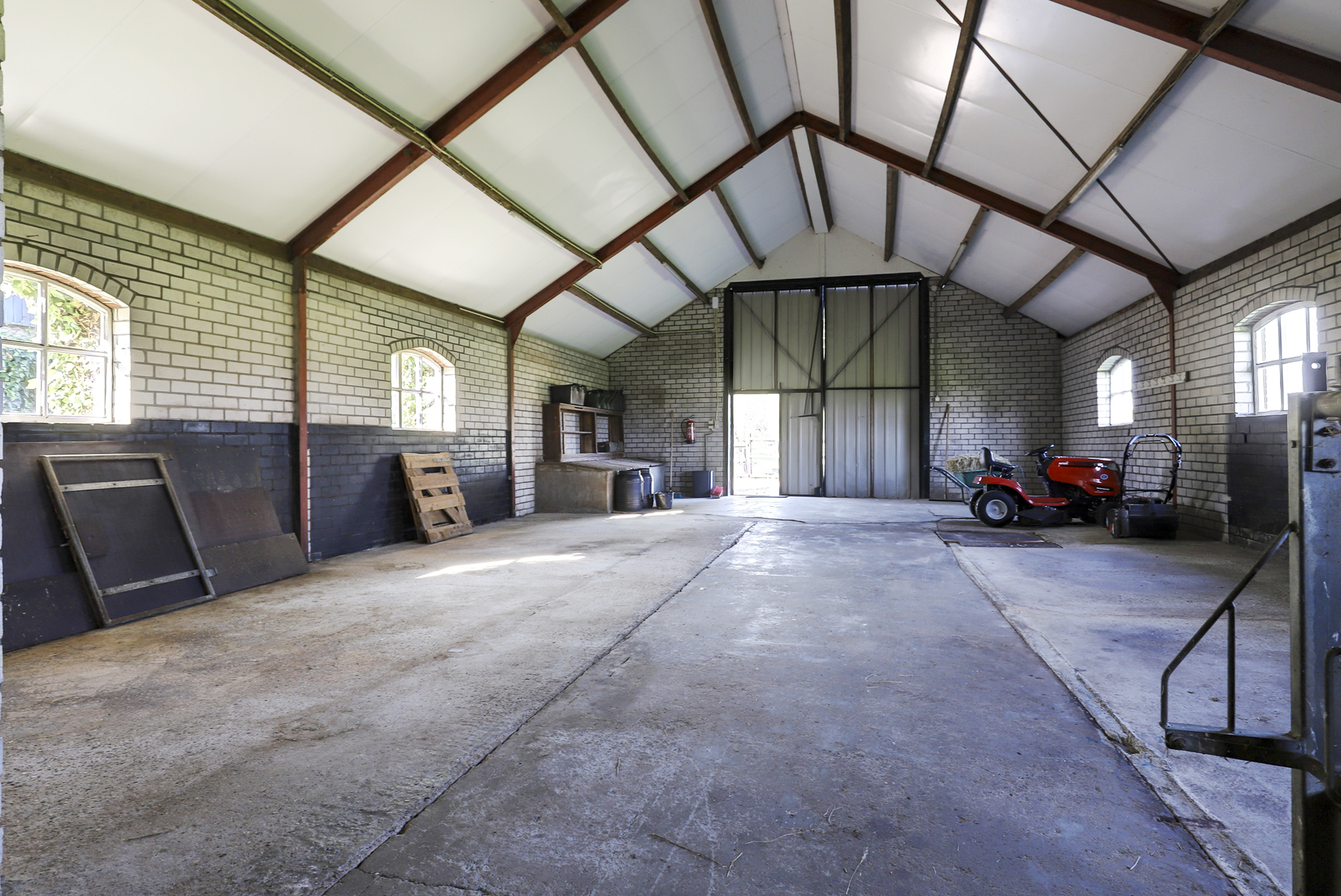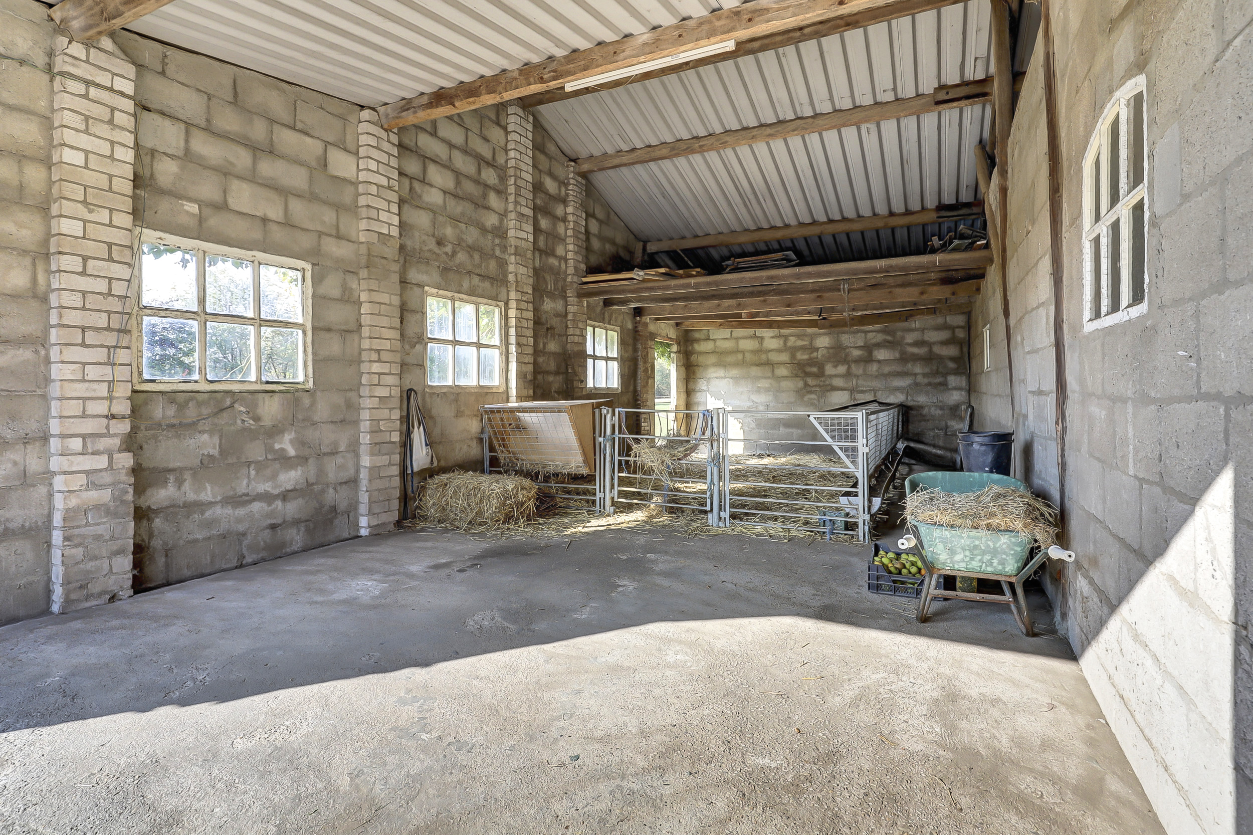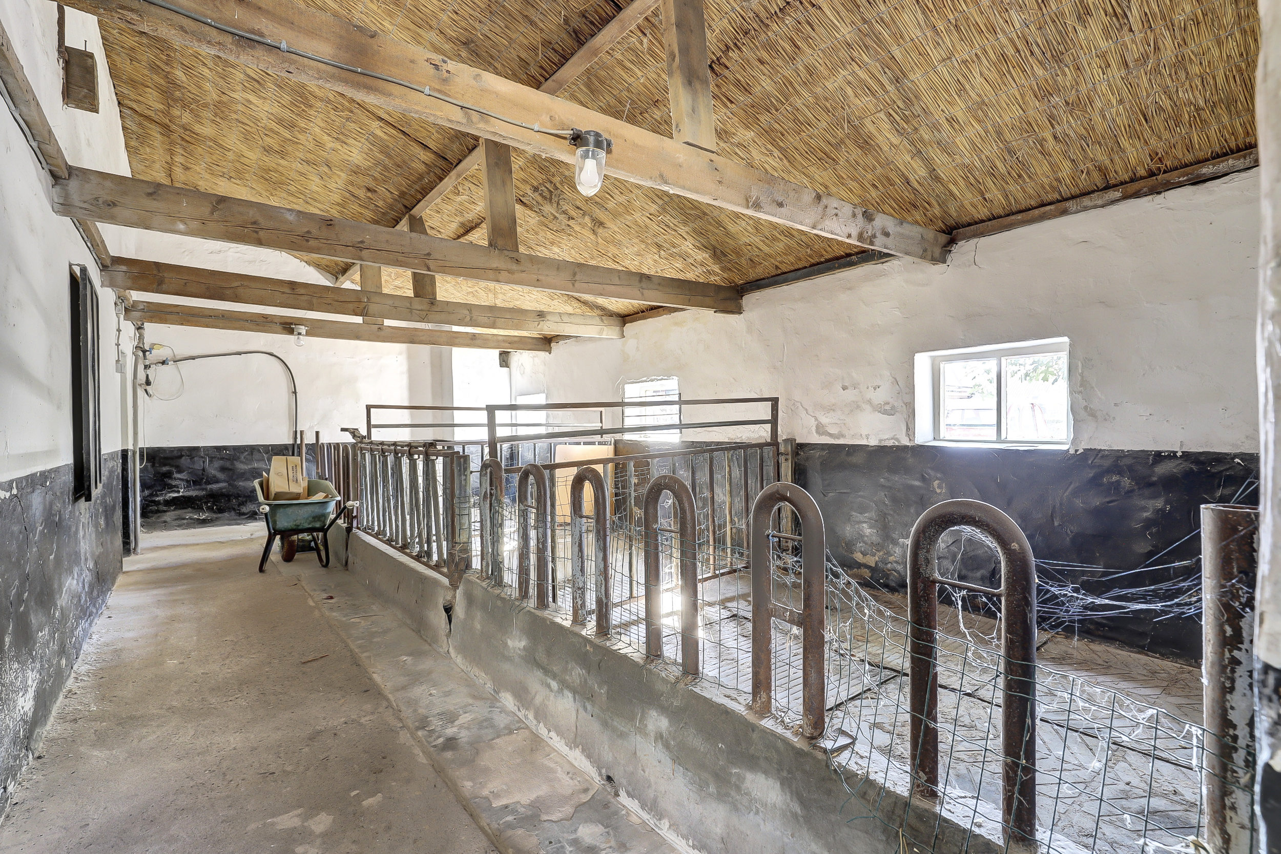 Voormalige koeien- en varkensstal, een praktische werkplaats en bergruimte.
