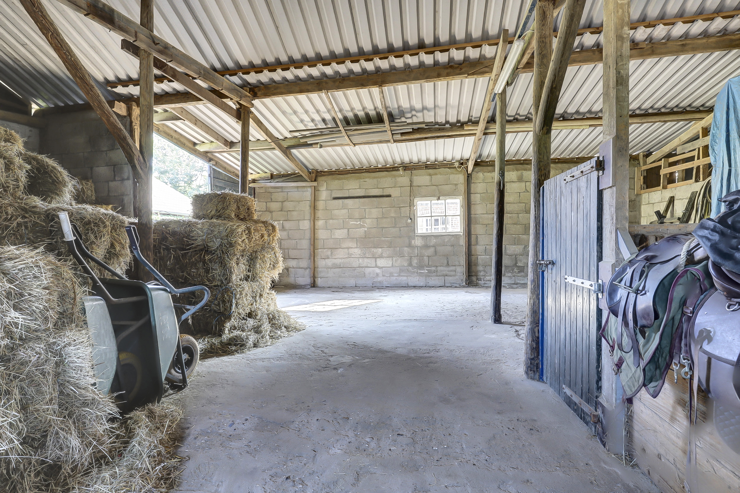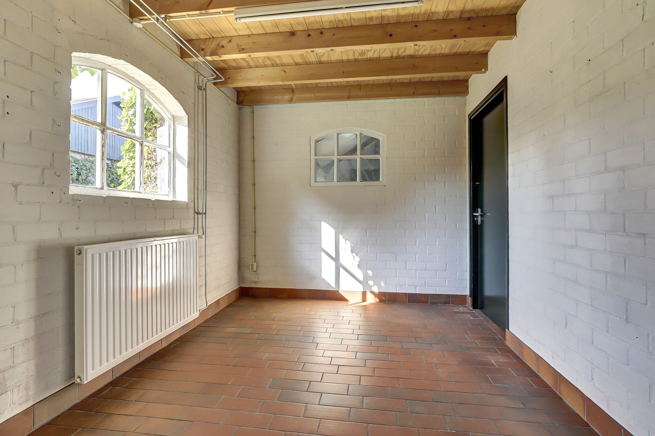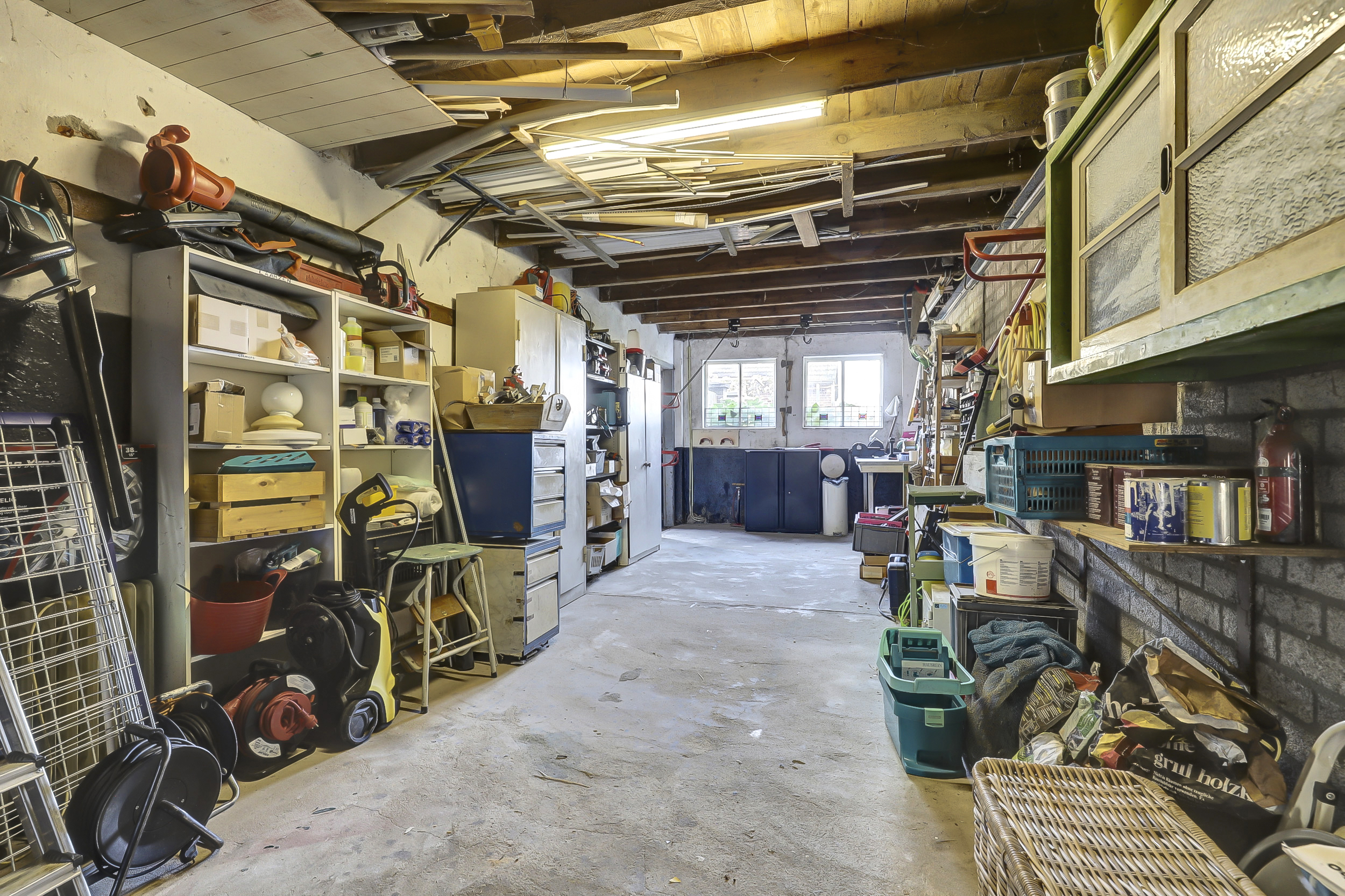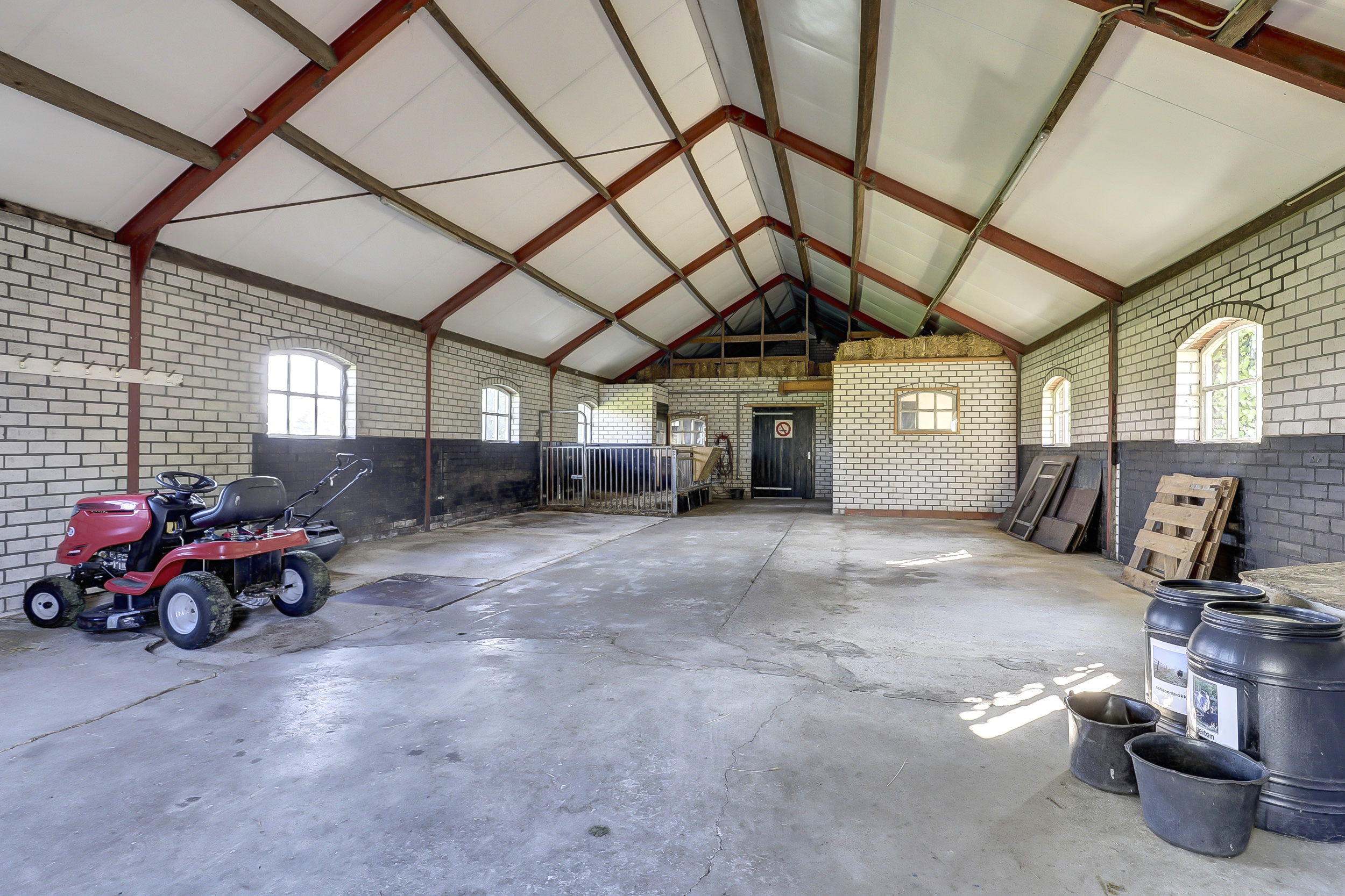 Voormalige koeien- en varkensstal, een praktische werkplaats en bergruimte.