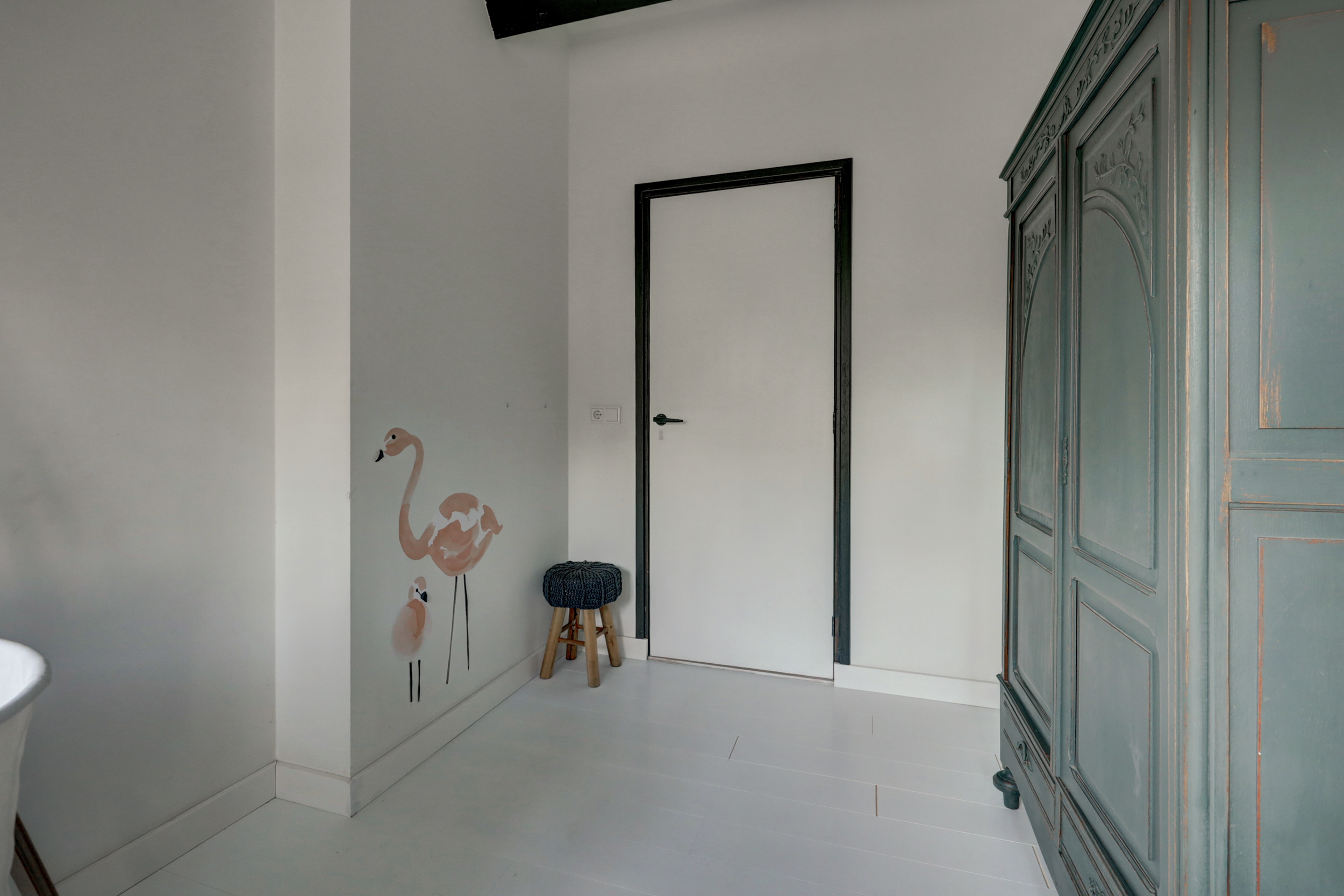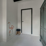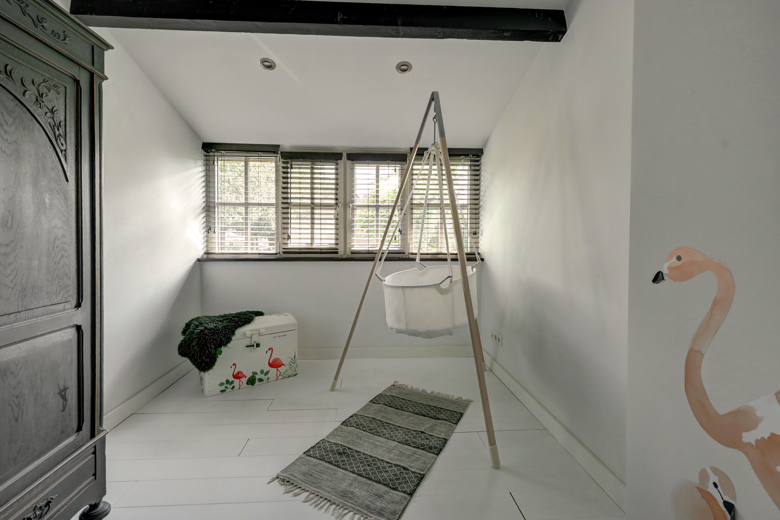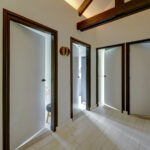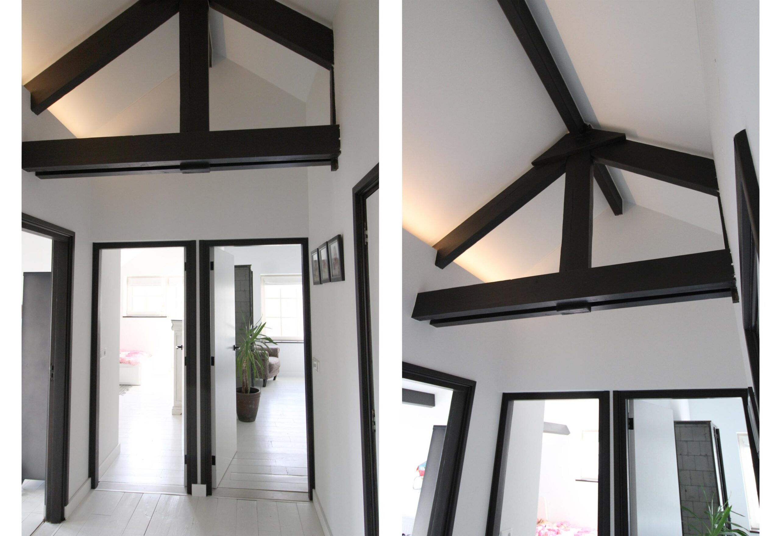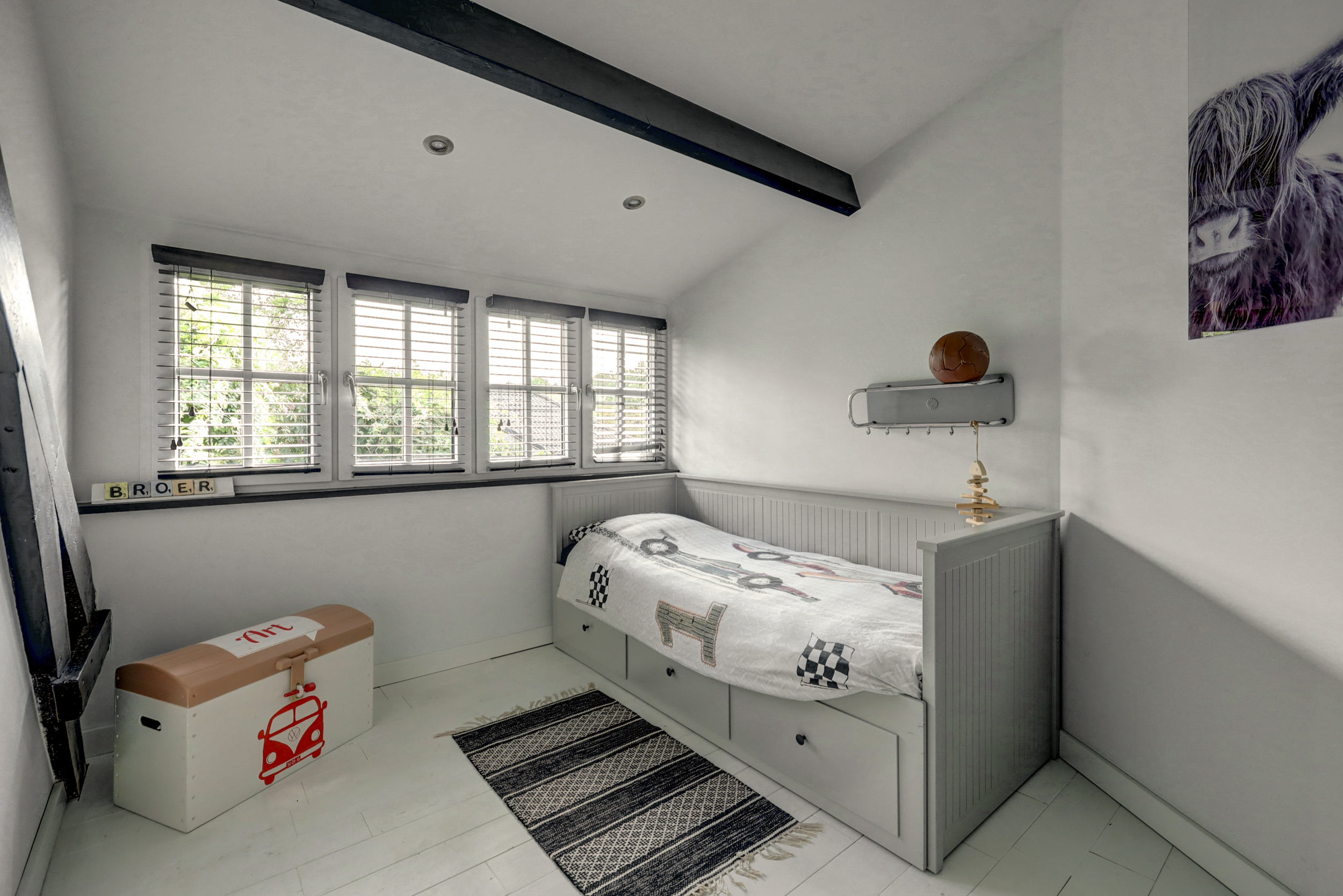 1e verdieping: overloop, 4 slaapkamers waarvan er 2 zijn voorzien van een grote dakkapel. Fraaie badkamer met dakkapel voorzien van een ligbad, douche, wastafel en wandcloset. Over de gehele verdieping is de fraaie dakconstructie met houten balken zichtbaar.