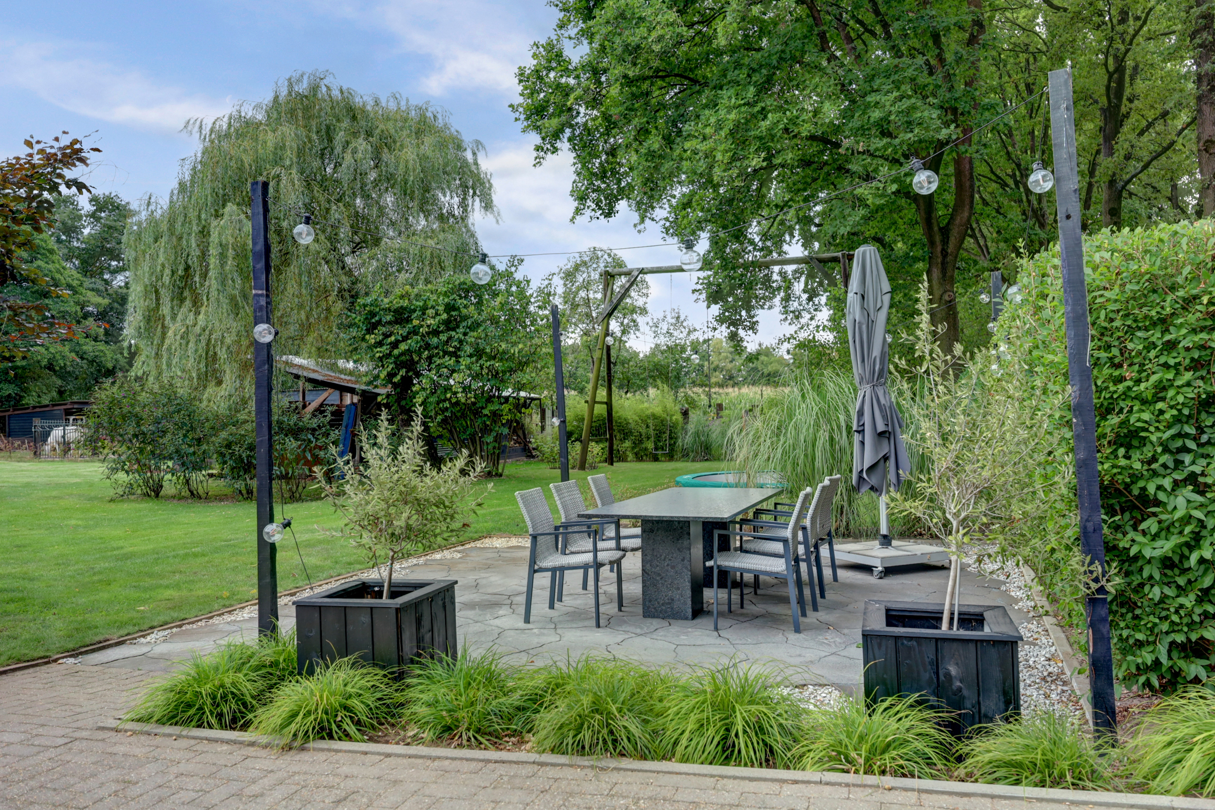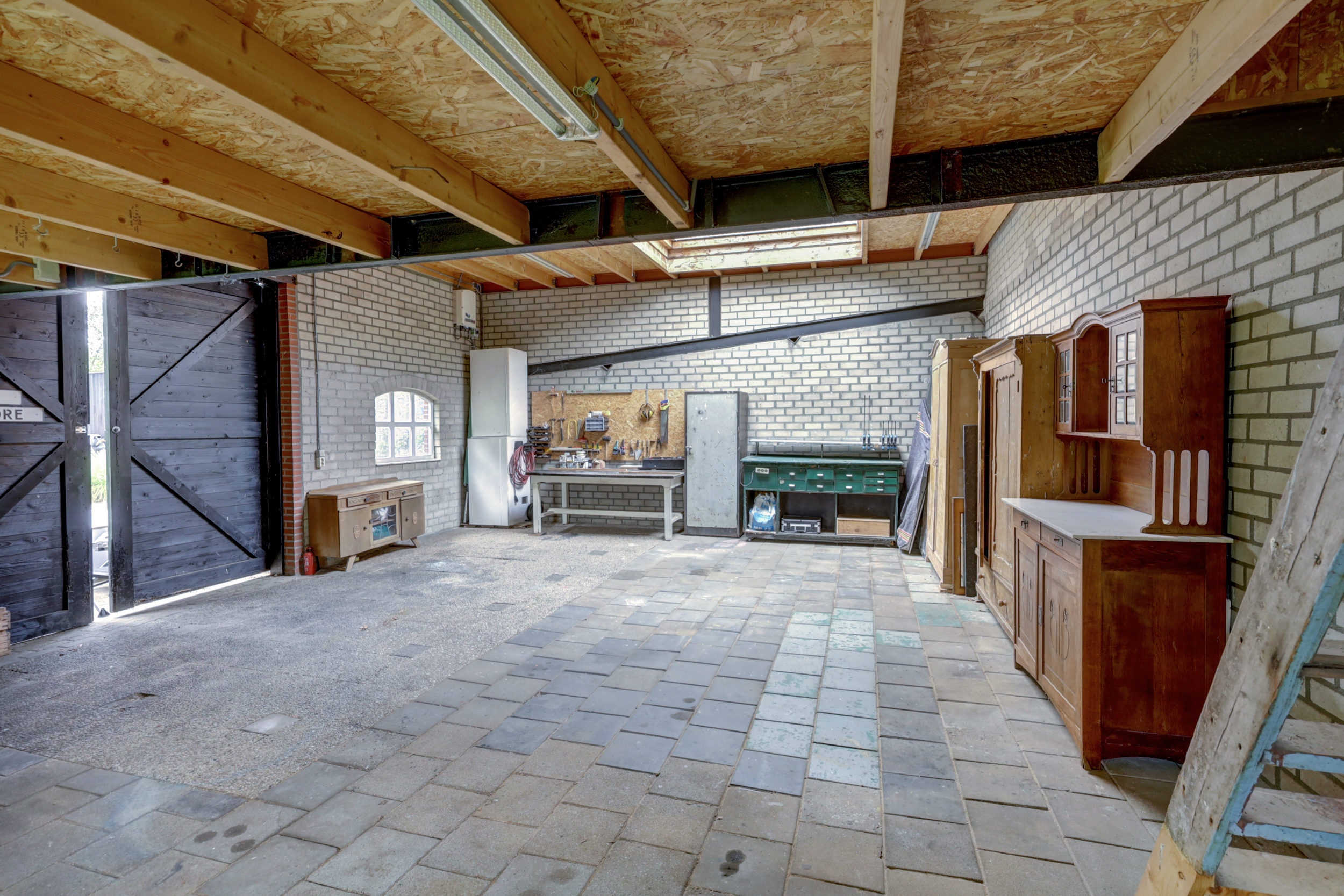 De schuur/ garage is voorzien van elektra en water. Er is een grondwaterpuls aanwezig.