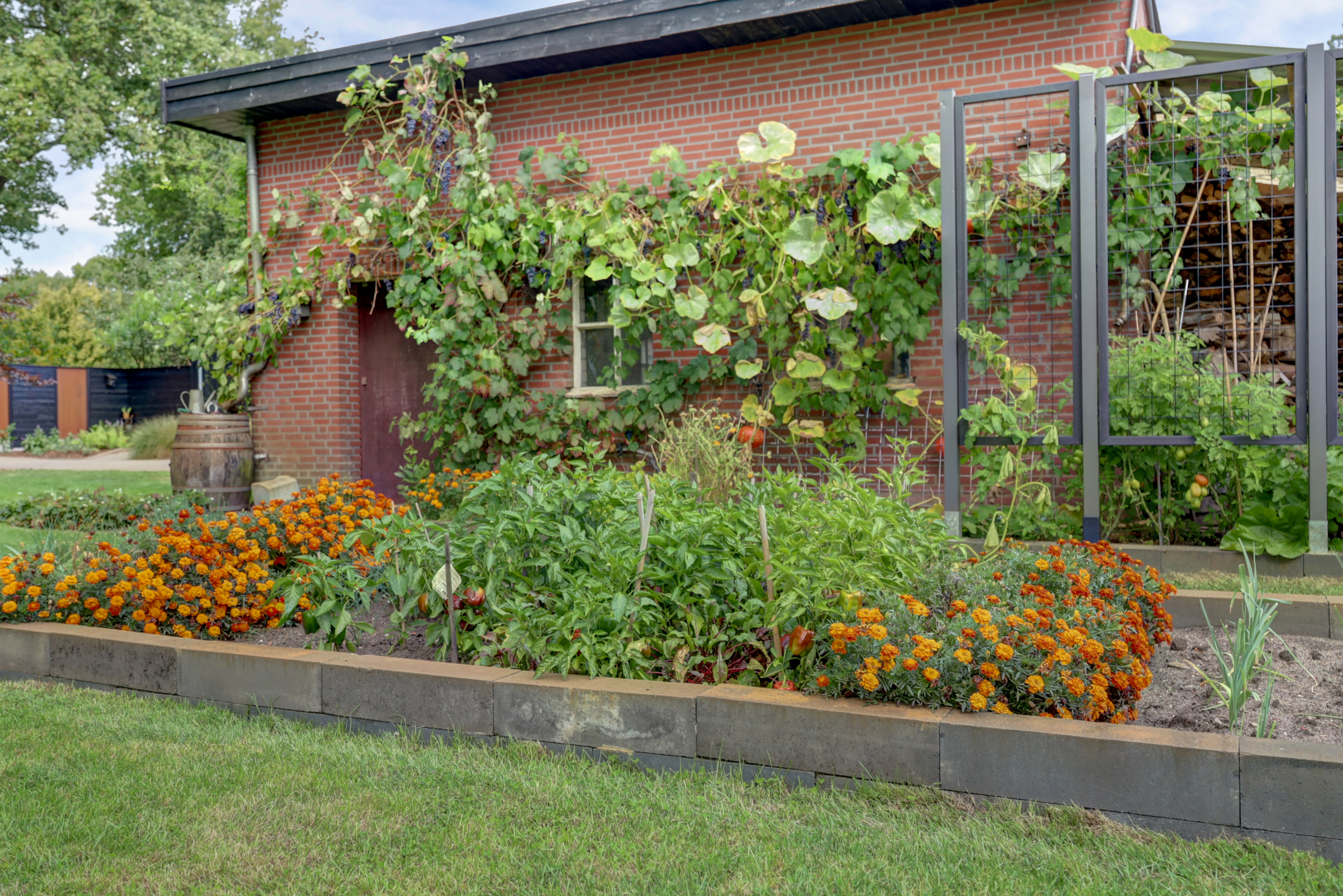 Op de schuur/ garage liggen 22 zonnepanelen.