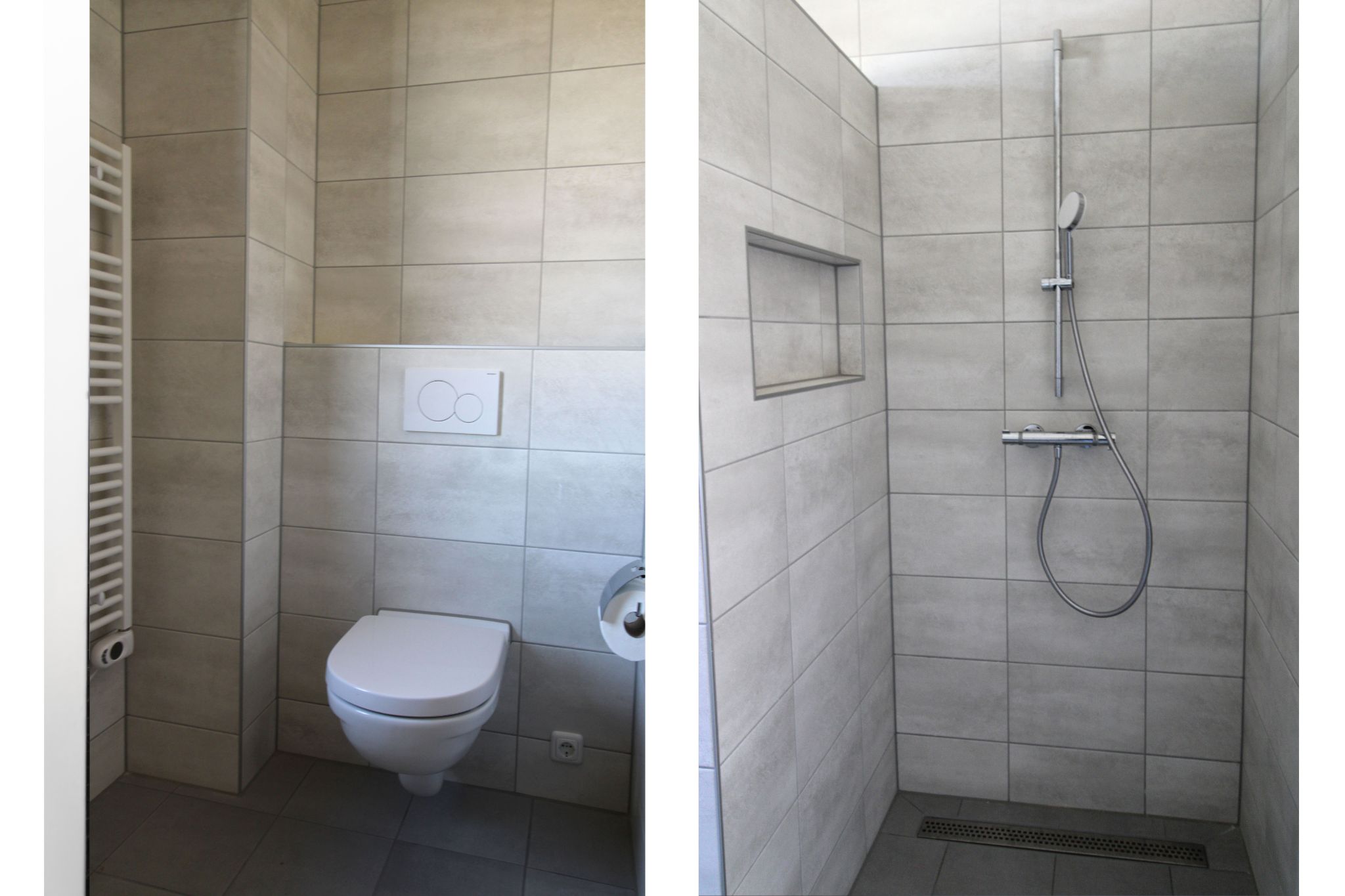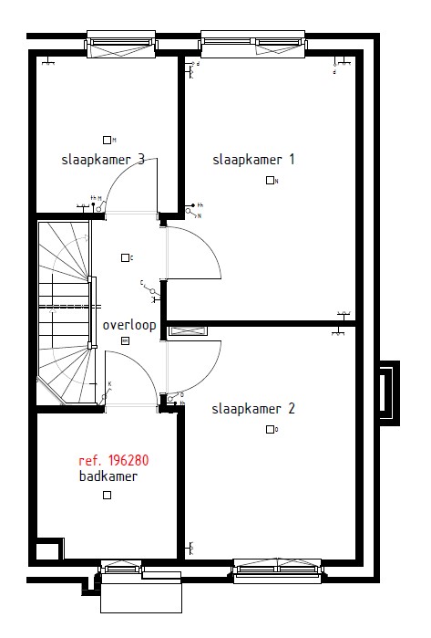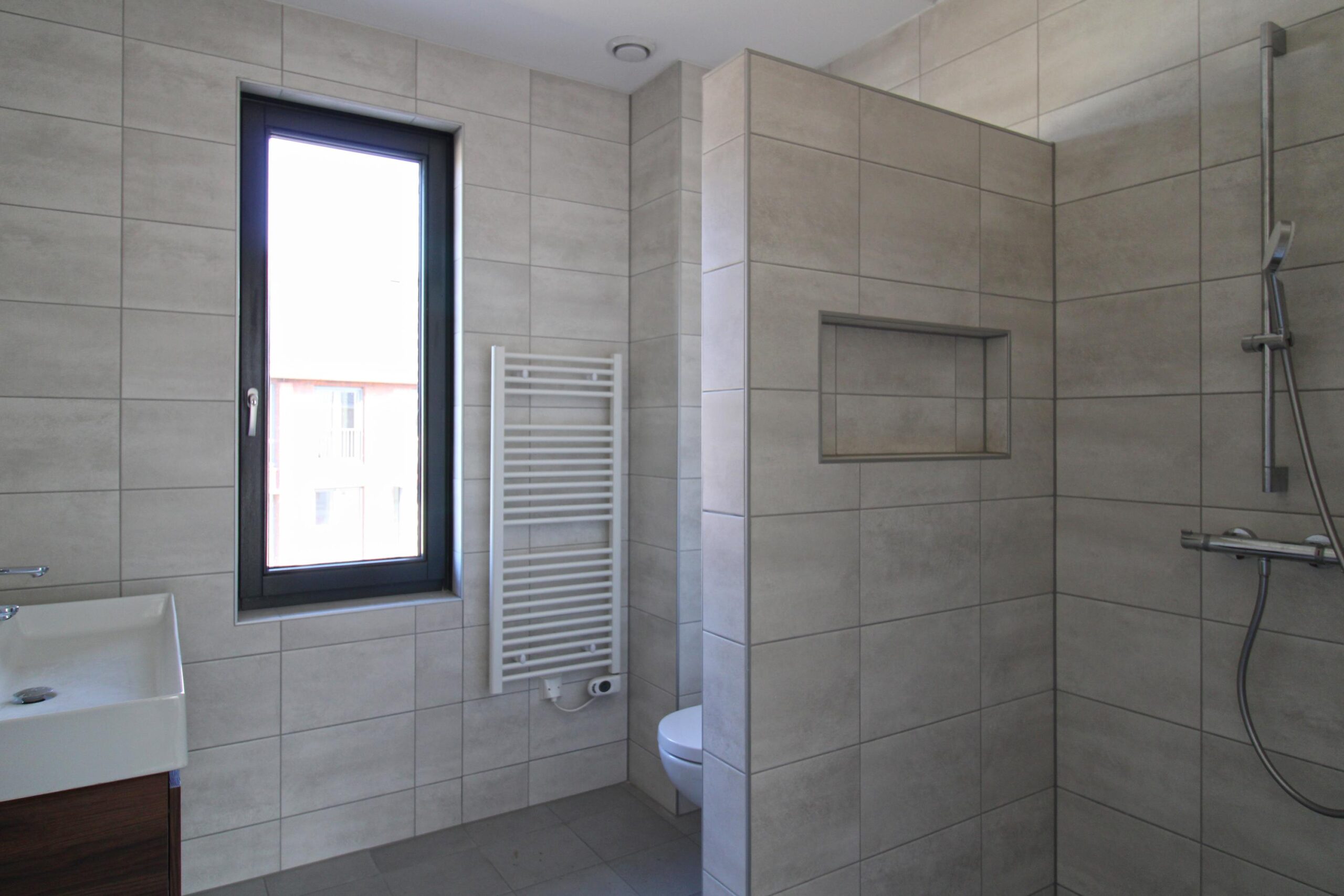 1e verdieping: overloop, 3 slaapkamers, moderne en luxe badkamer voorzien van wandcloset, inloopdouche, wastafel en de voorbereidingen voor het plaatsen van een bidet.
