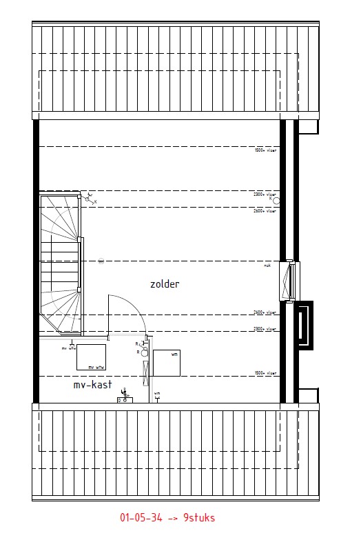 2e verdieping: middels vaste trap te bereiken 2e verdieping met de witgoedaansluitingen, technische ruimte met de opstelling van de elektrische boiler en warmtepomp. Mogelijkheid tot het creëren van een 4e slaapkamer.