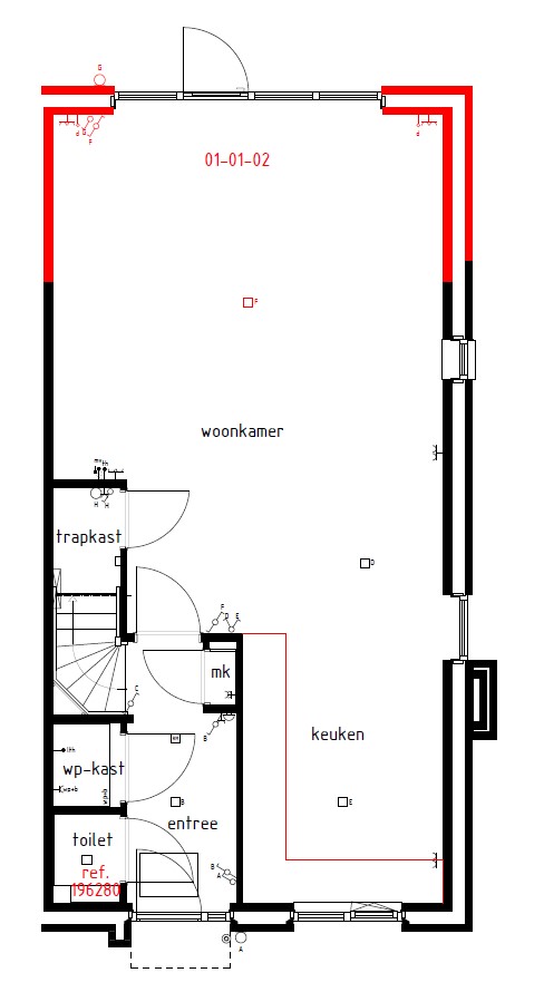 Begane grond: entree/ hal met meterkast en toiletruimte voorzien van wandcloset en fonteintje en de voorbereidingen voor het plaatsen van een bidet, een lichte woonkamer met grote raampartijen en erker aan de zijgevel, open keuken voorzien van de benodigde inbouwapparatuur.