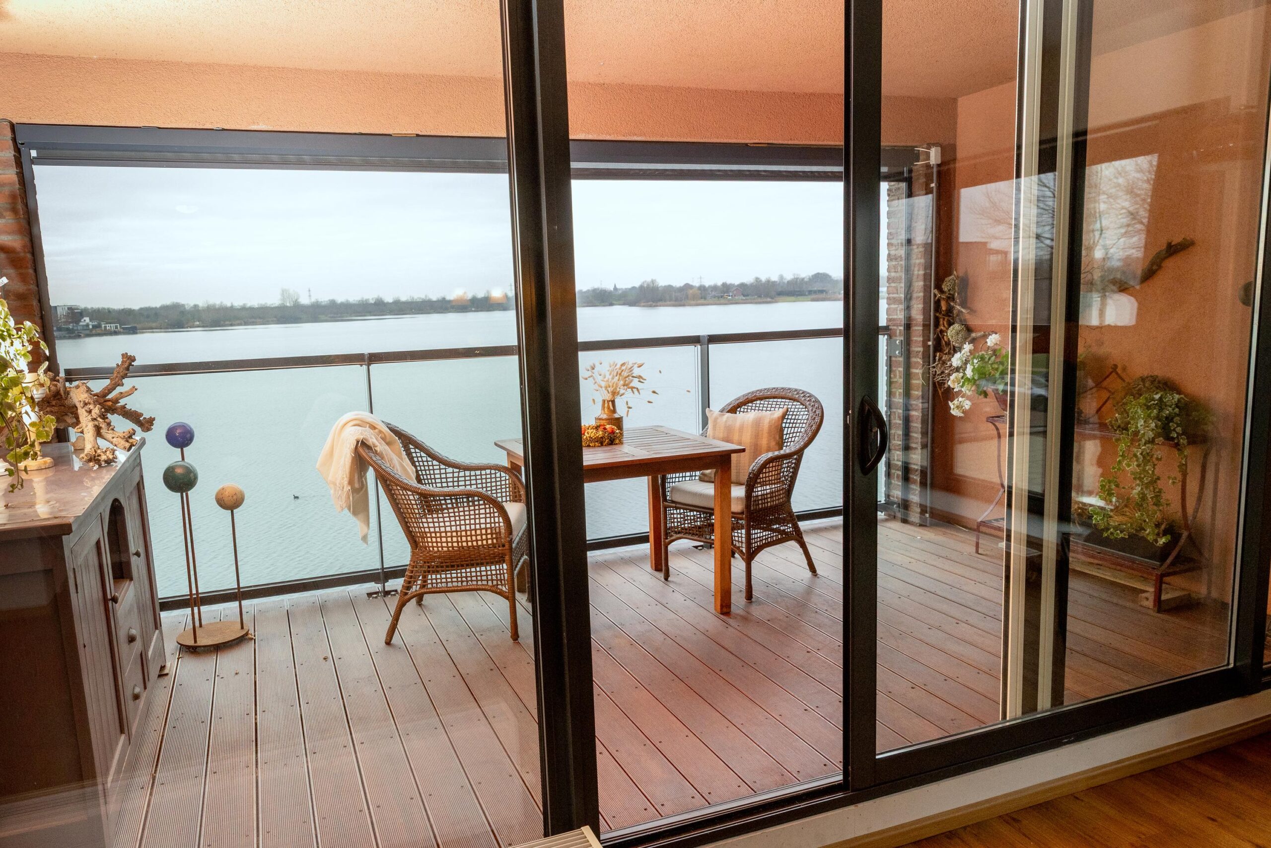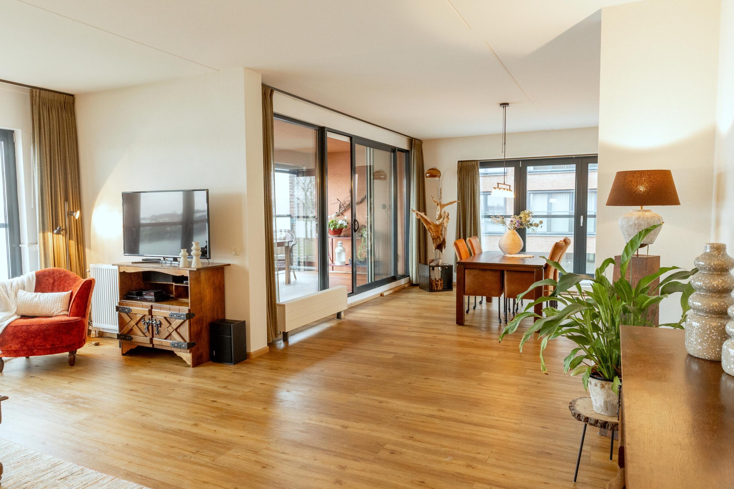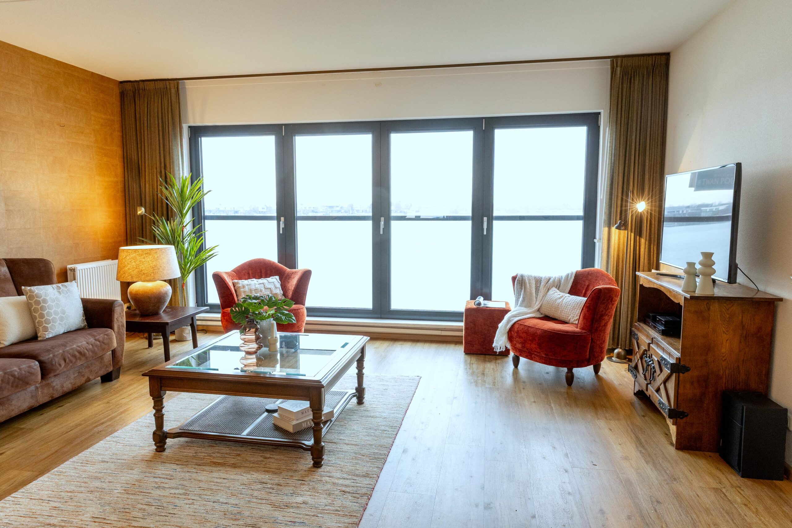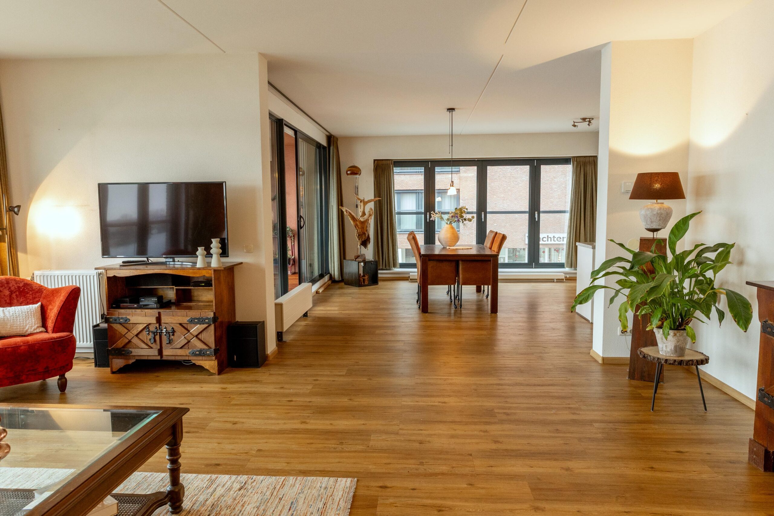 Het appartement beschikt aan de woonkamerzijde over screens.