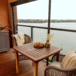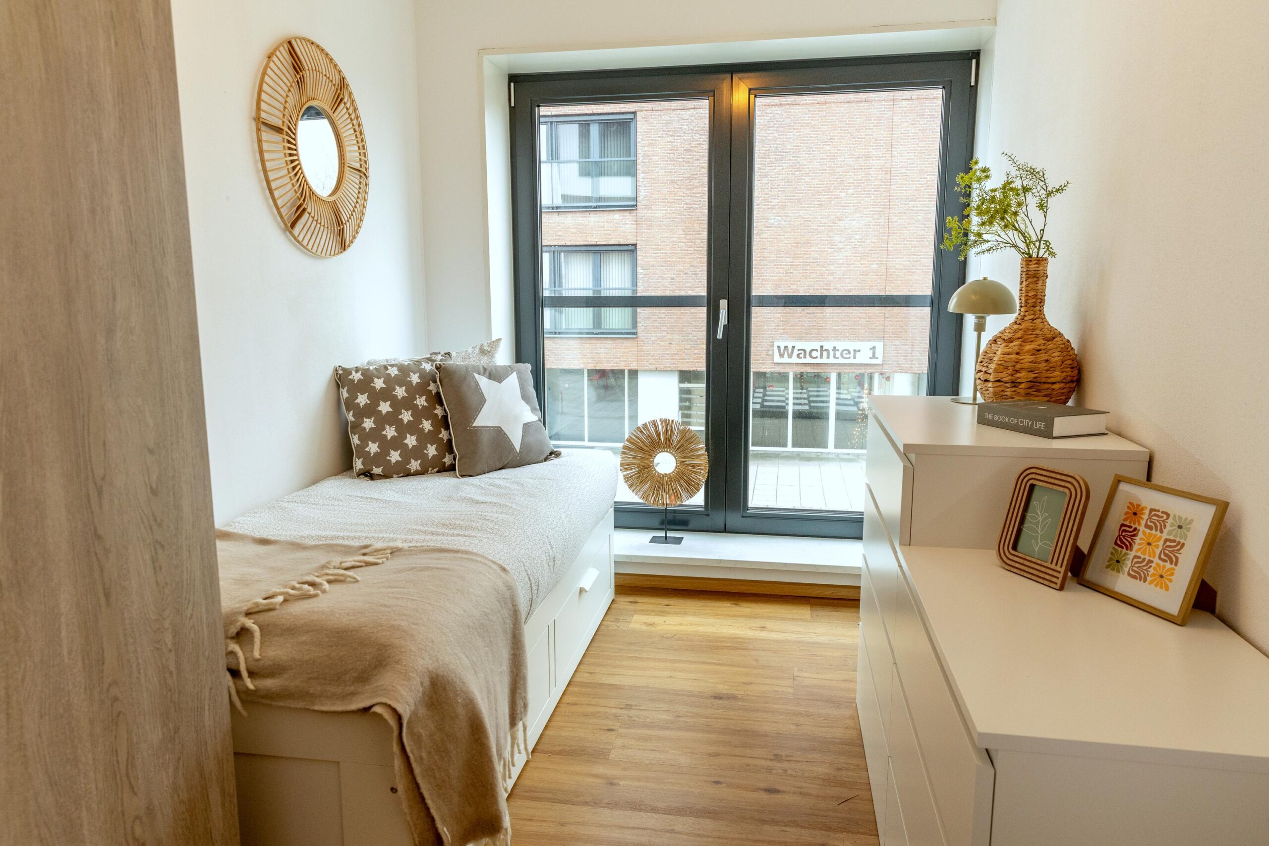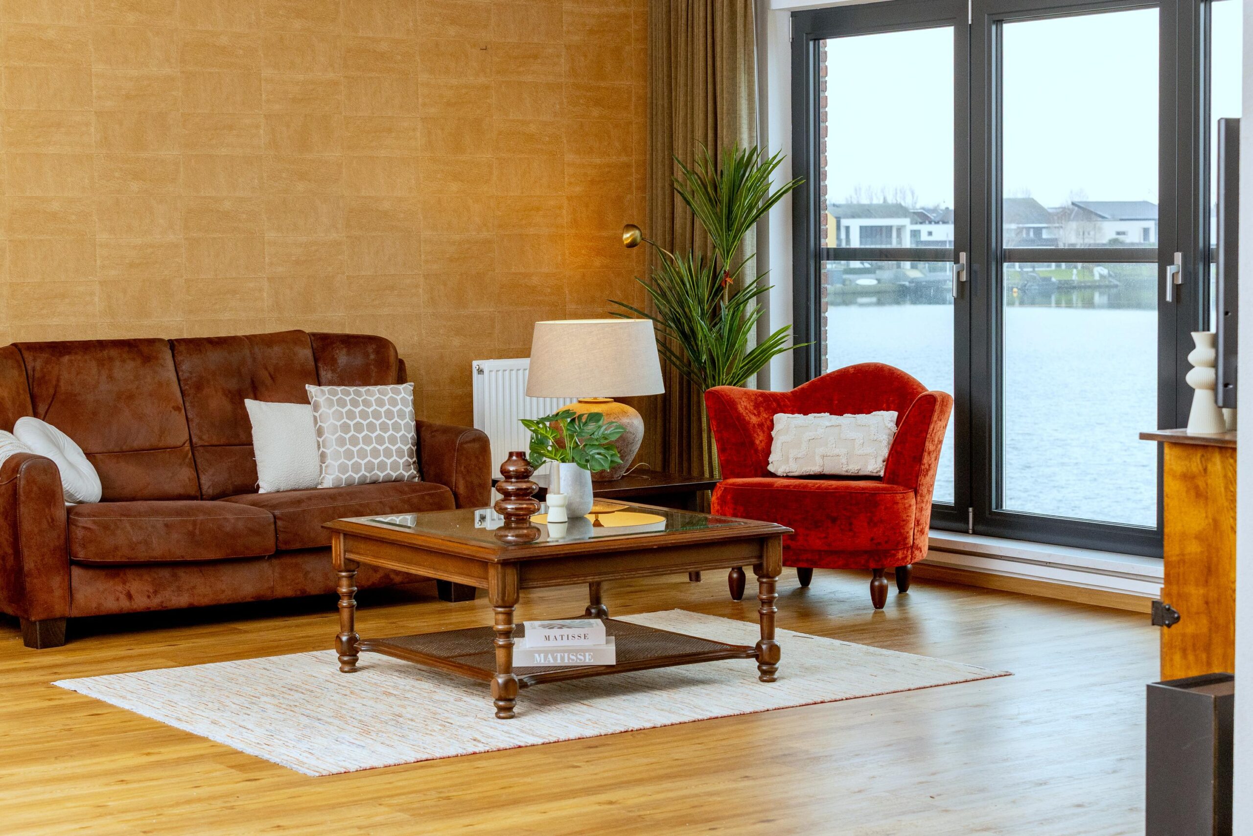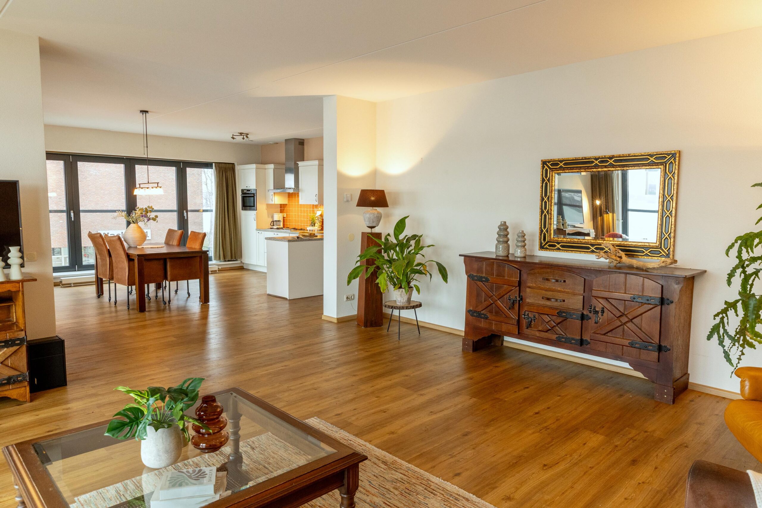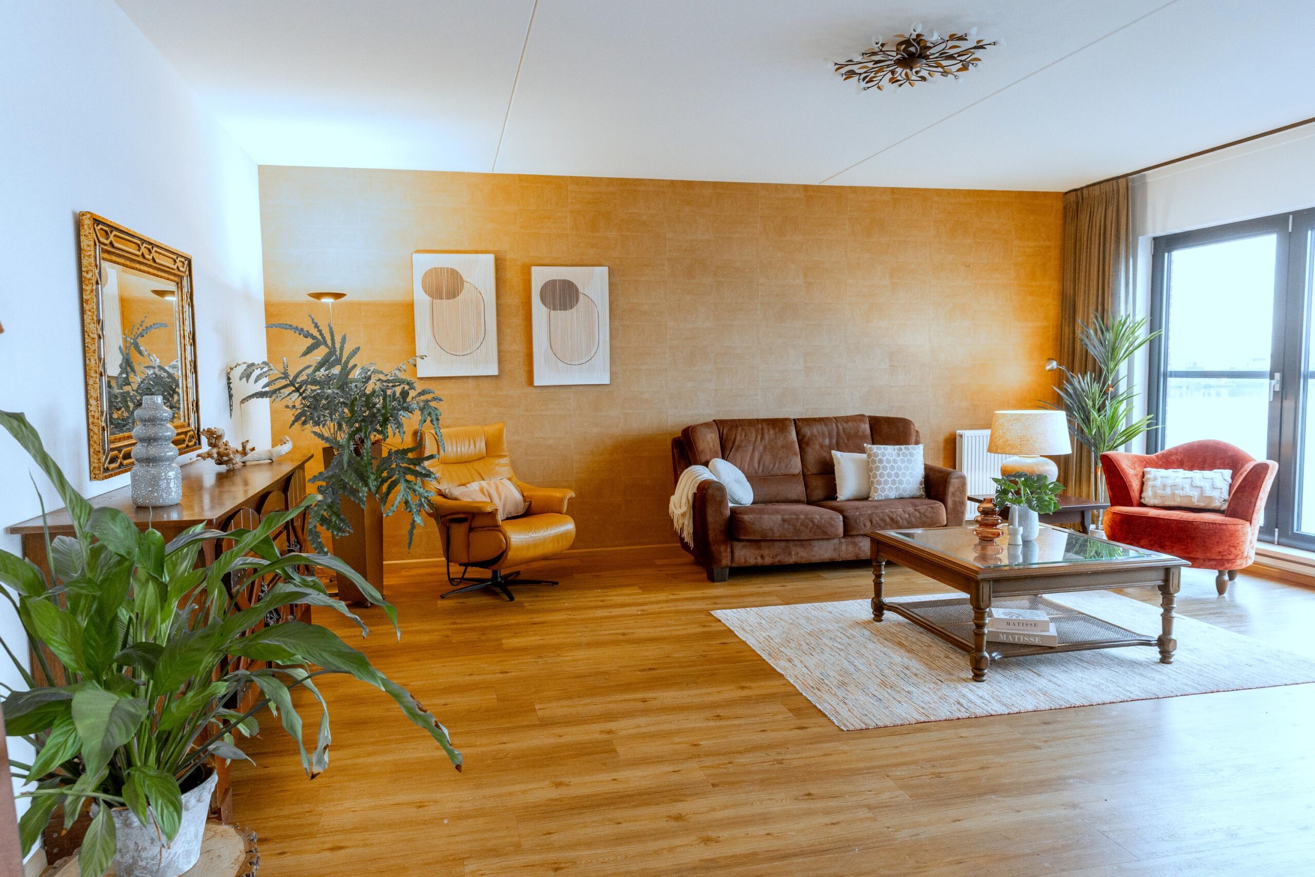 Het appartement beschikt aan de woonkamerzijde over screens.