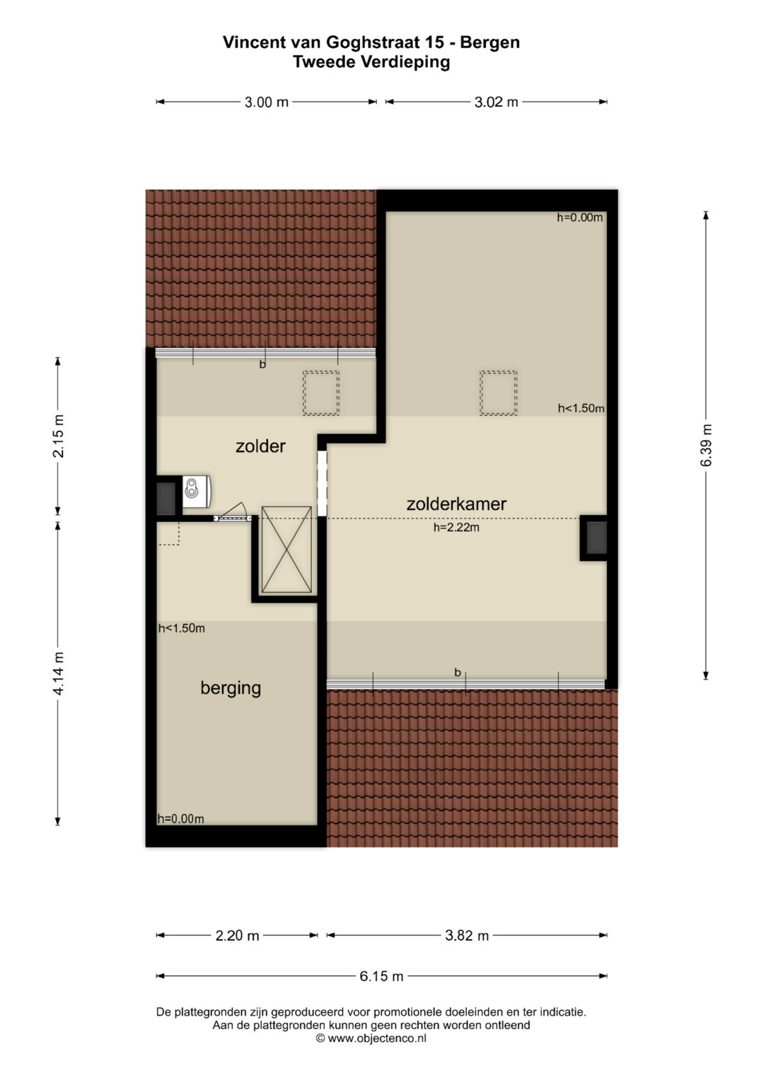 2e verdieping: bereikbaar via een vlizotrap, bergzolder, het plaatsen van een vaste trap behoort tot de mogelijkheden.