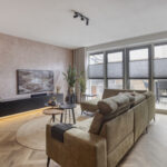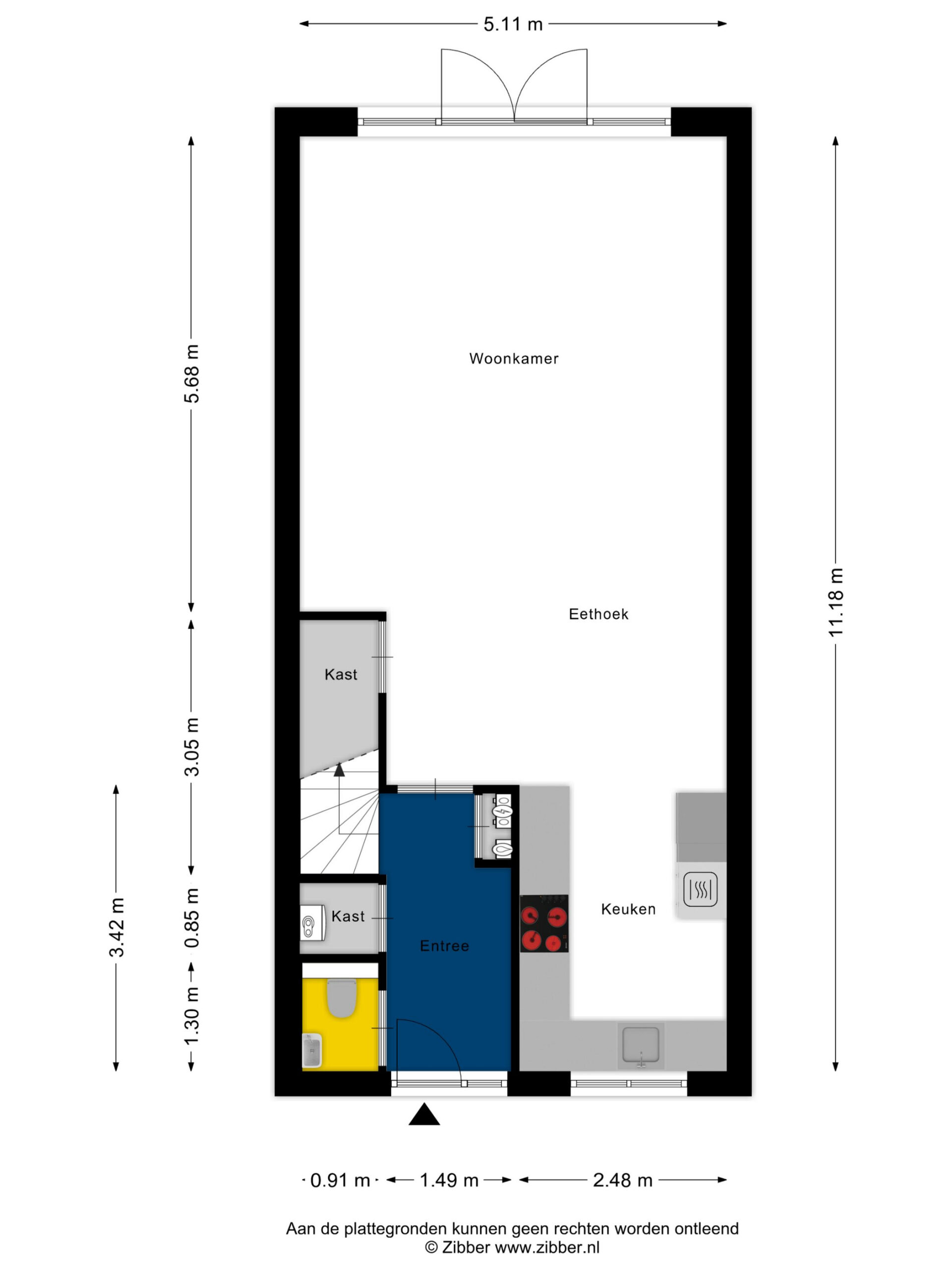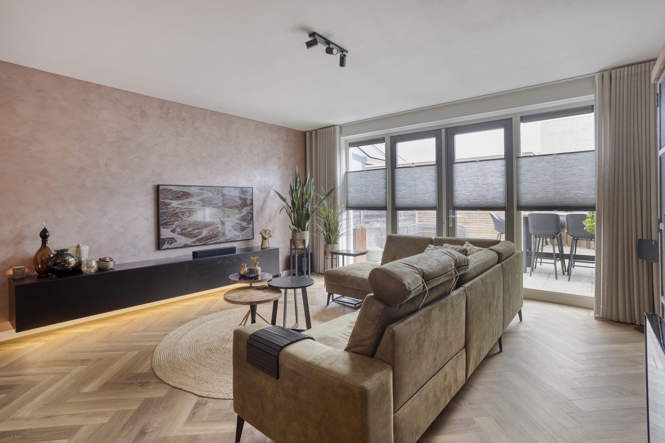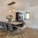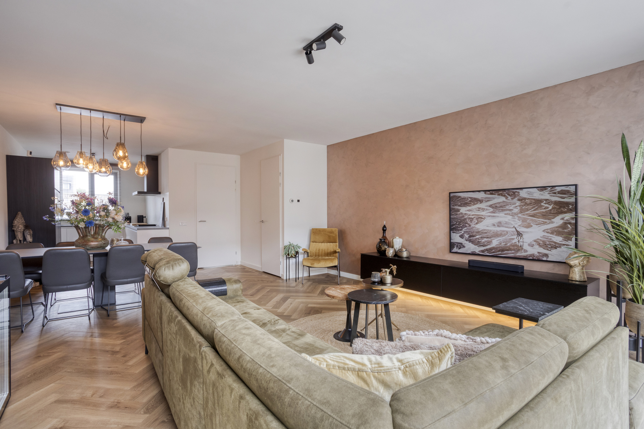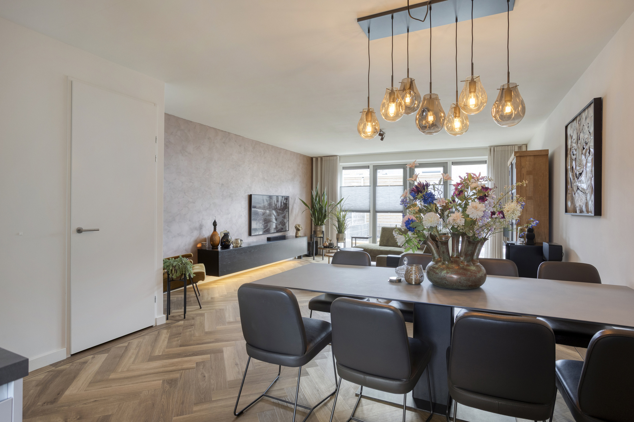 Begane grond: hal met meterkast, de opstelling van de cv-ketel, toilet met fonteintje. Een zeer ruime en uitgebouwde sfeervolle woonkamer en open keuken met luxe keukeninrichting.