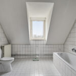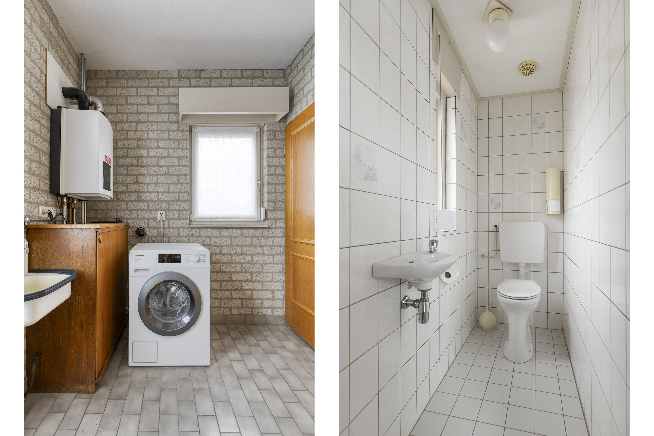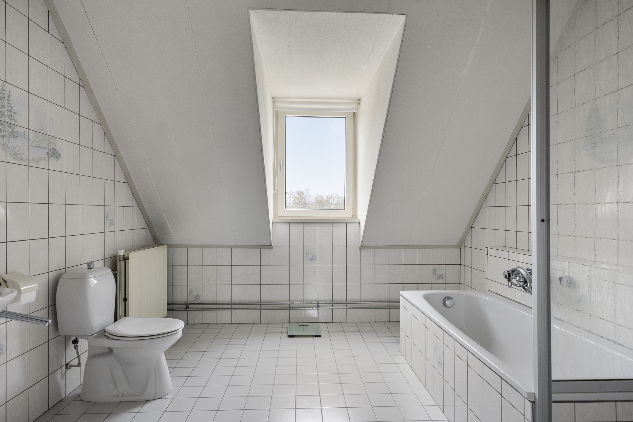 1e verdieping: overloop, 2 riante slaapkamers met de mogelijkheid om eenvoudig 1 of 2 slaapkamers extra te realiseren. Badkamer voorzien van een ligbad, douchecabine, toilet en vaste wastafel.