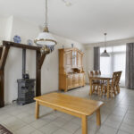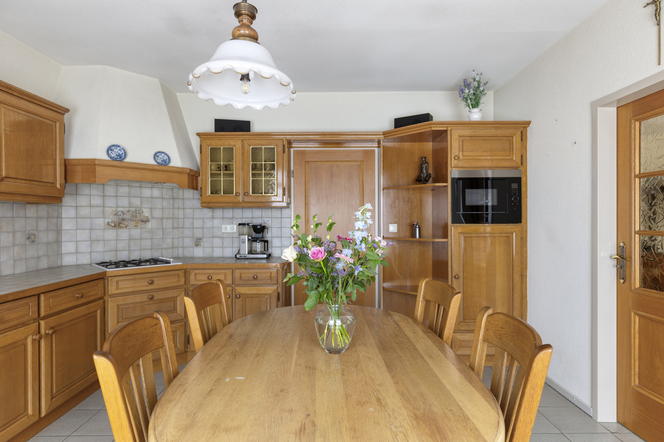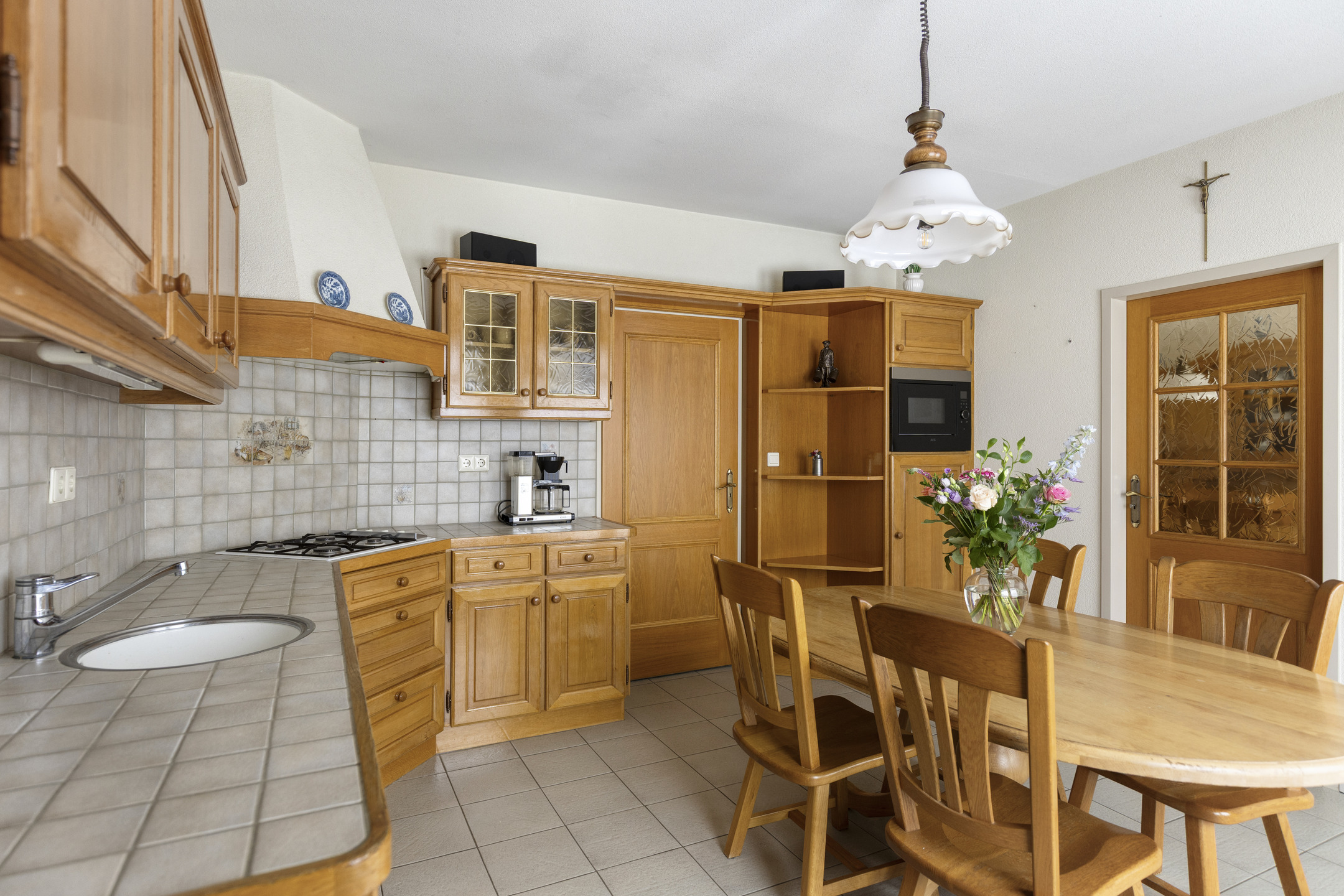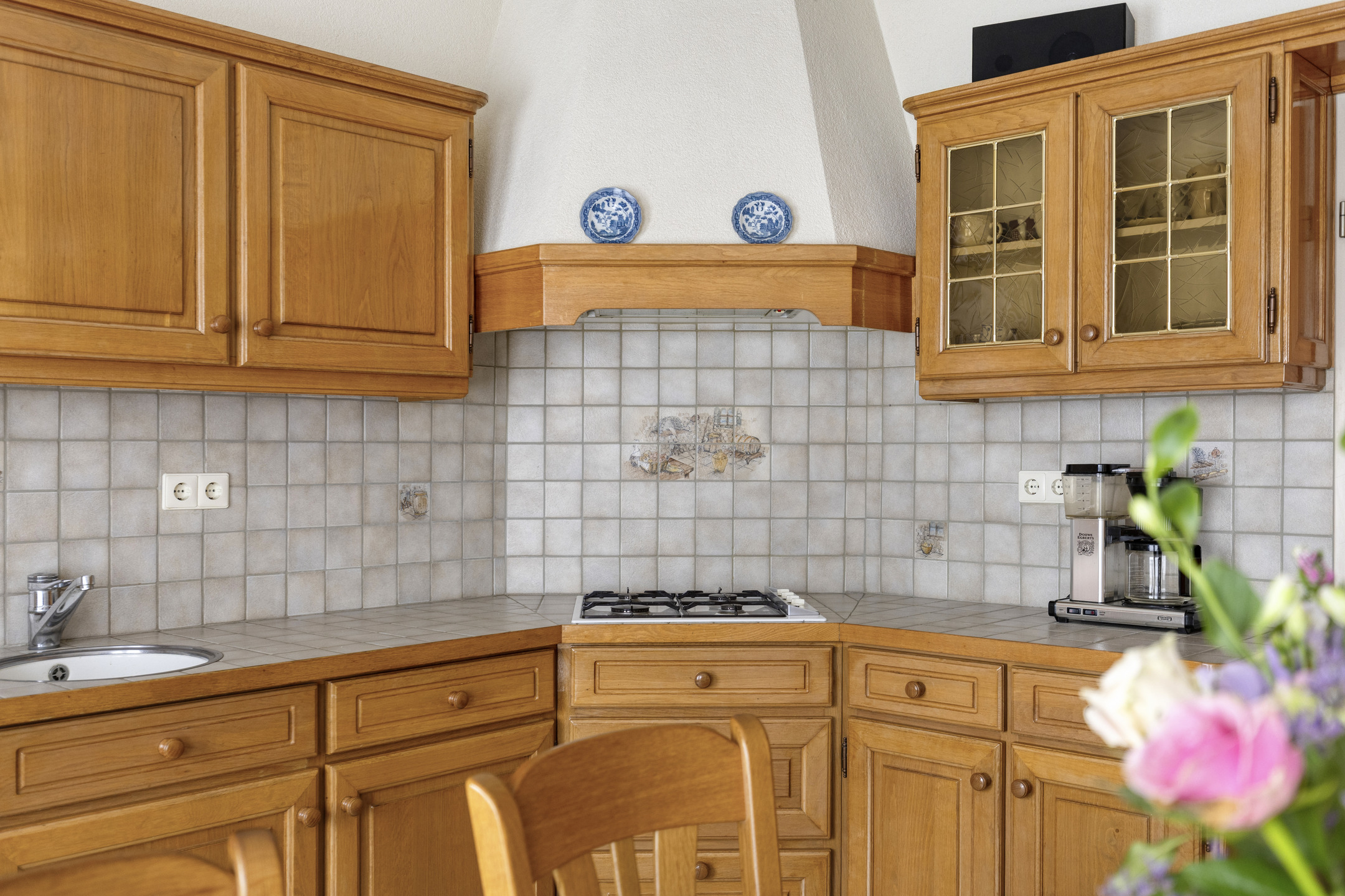 De keukenopstelling is voorzien van een 4-pits gaskookplaat, afzuigkap, magnetron en koelkast (de vaatwasser is momenteel defect).