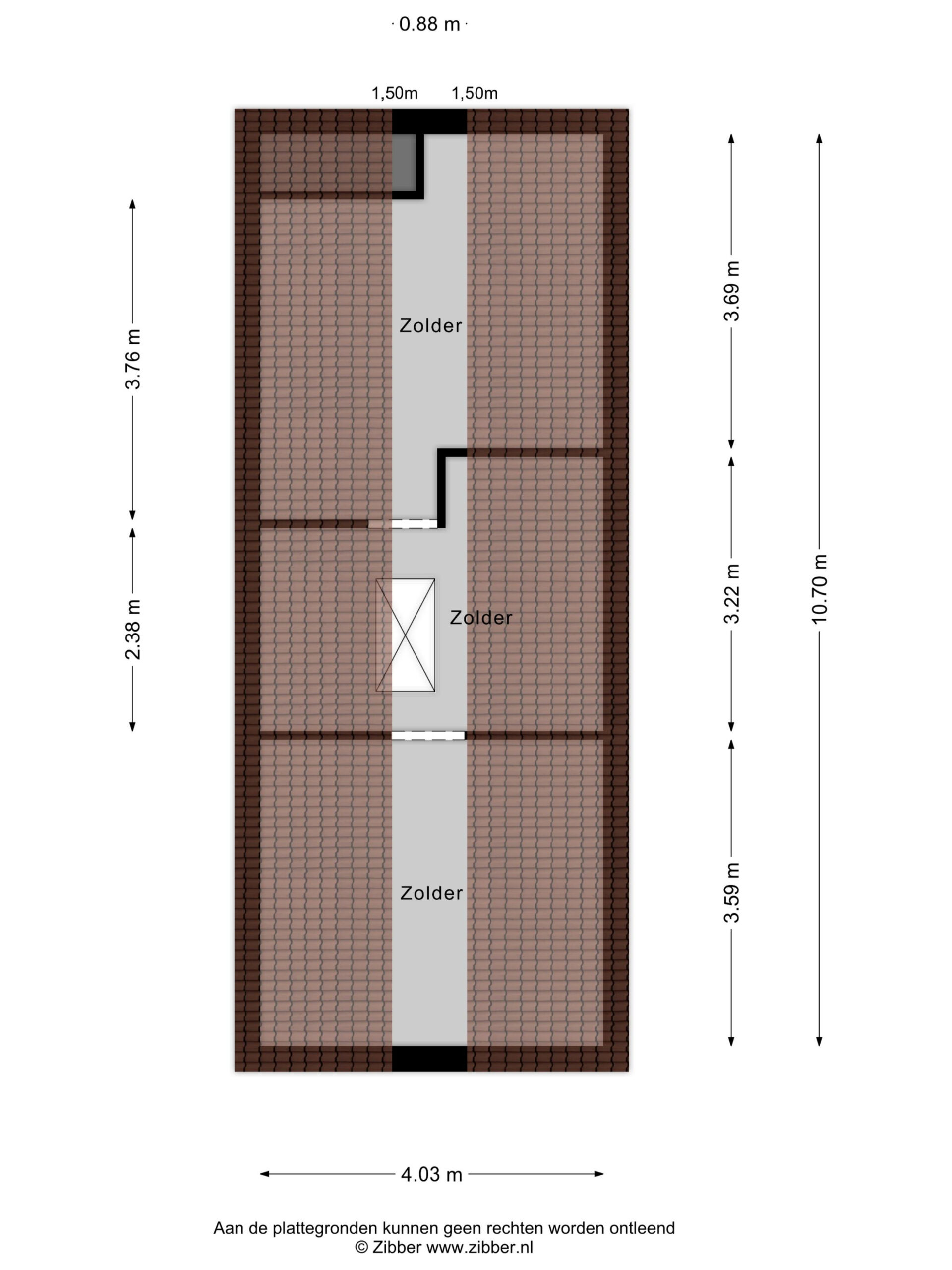 2e verdieping: via een vlizotrap bereikbare bergzolder.