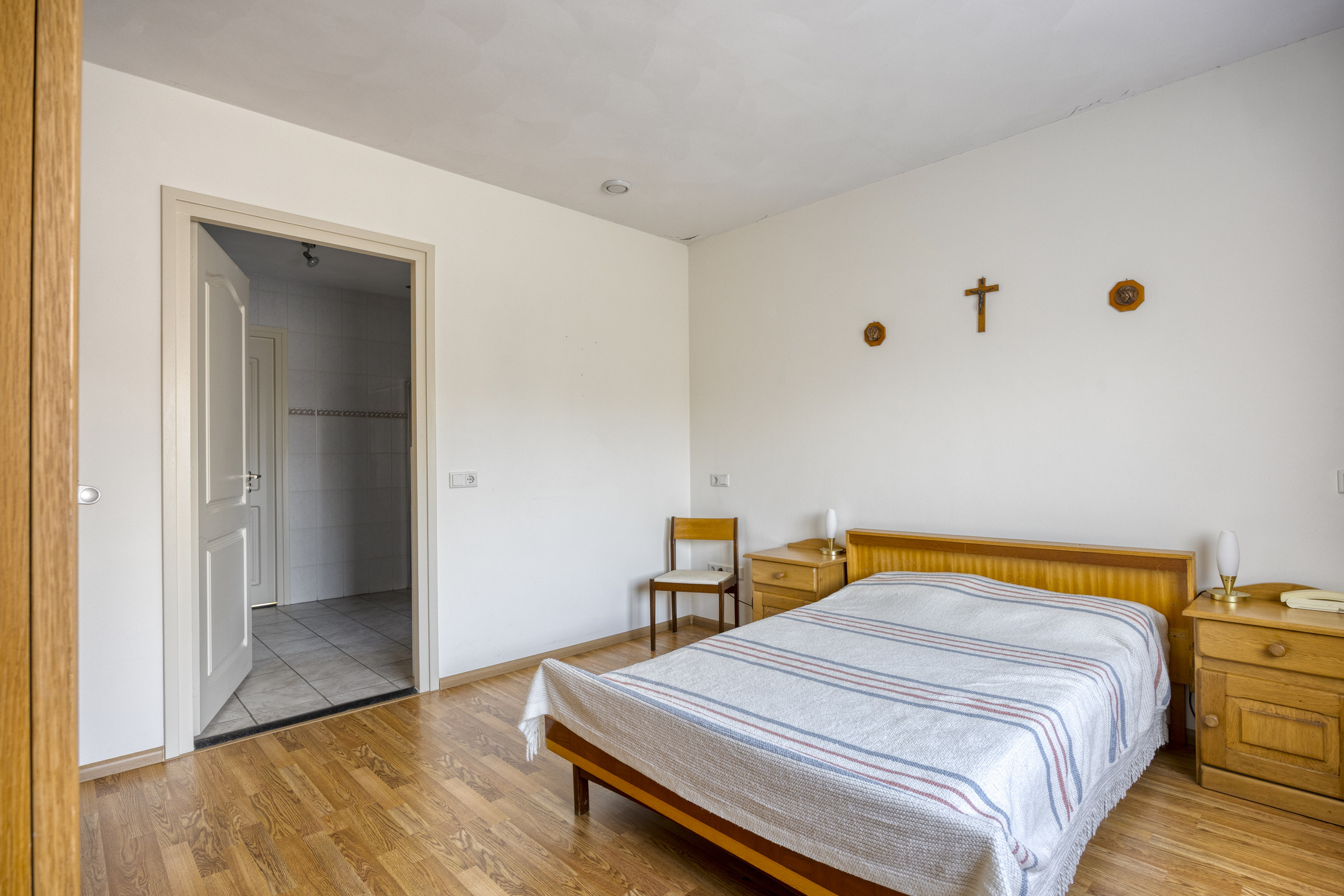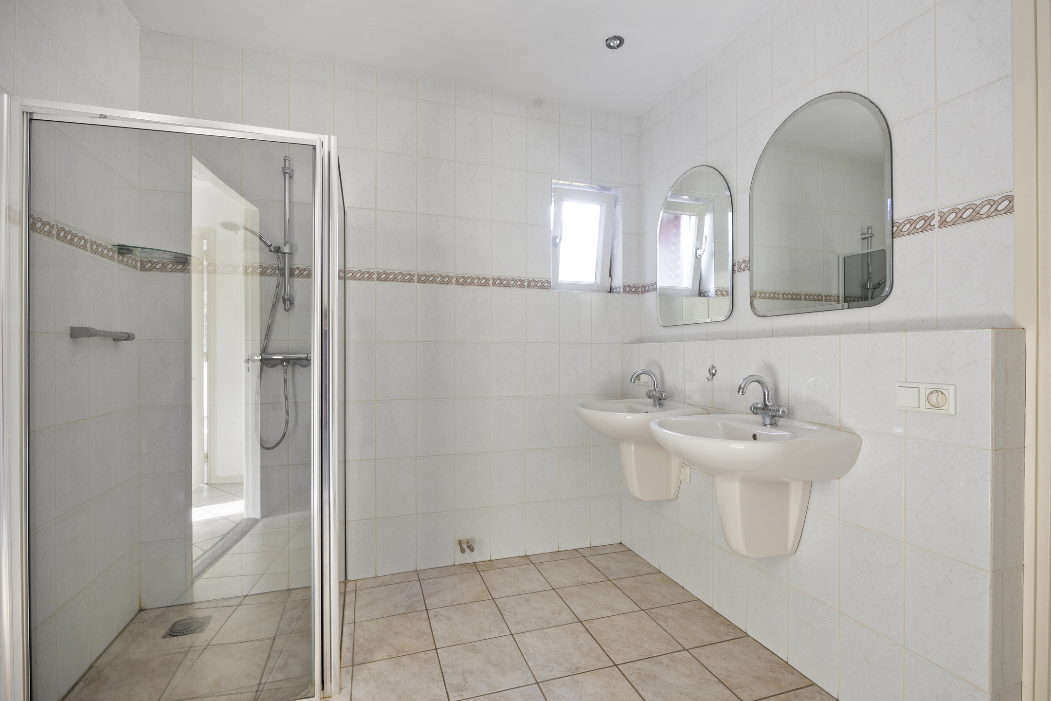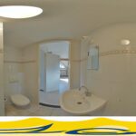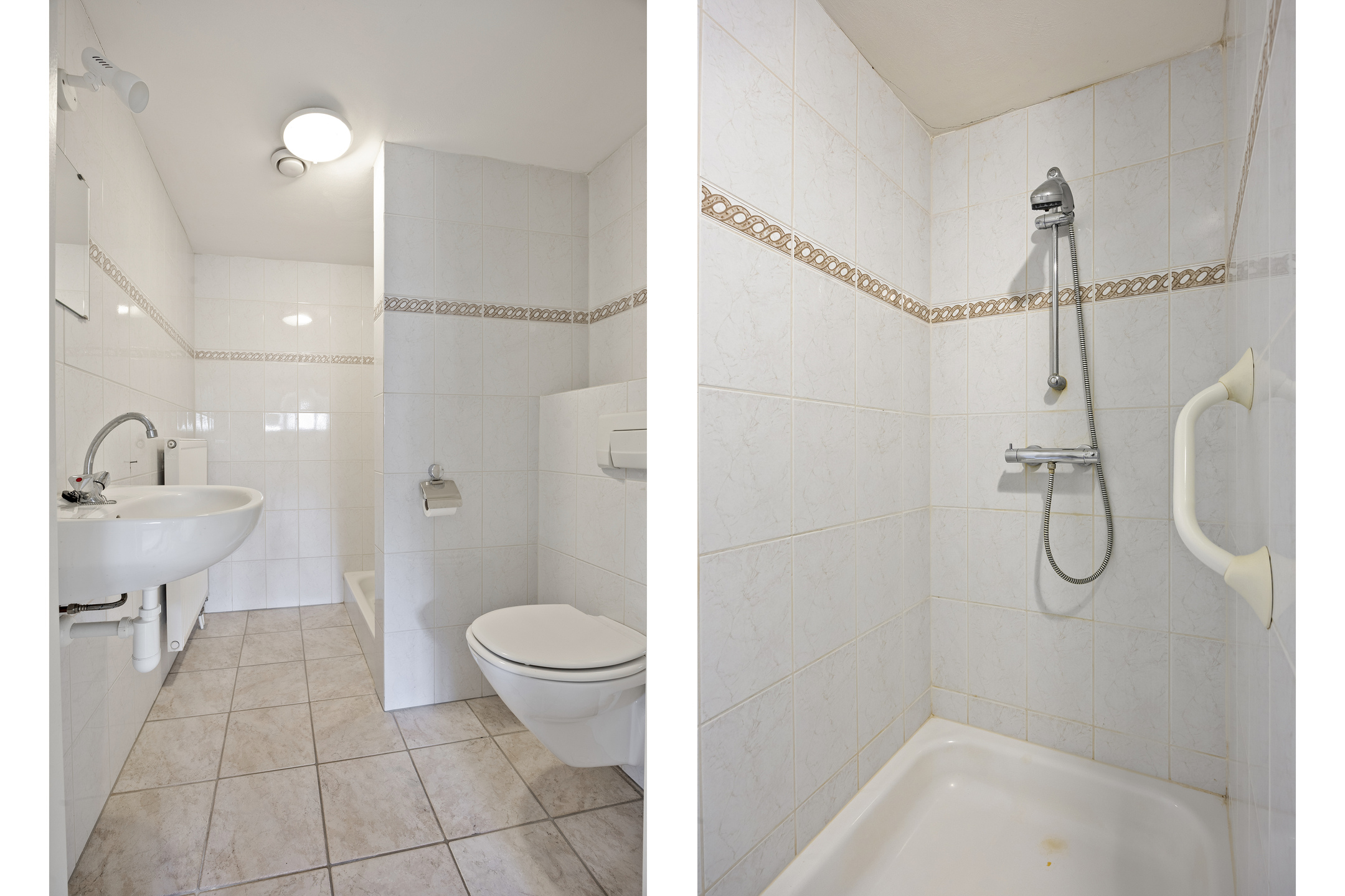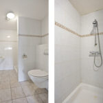 De 2e badkamer op de verdieping is voorzien van een douche toilet en vaste wastafel.